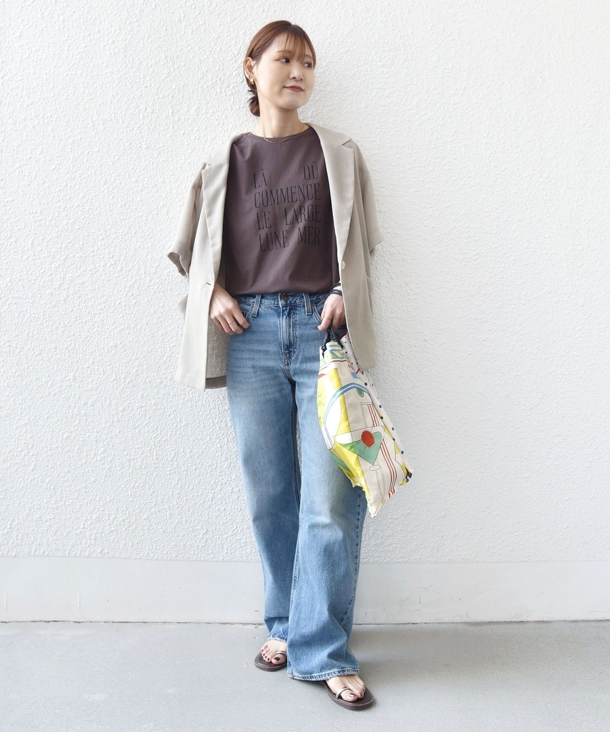 1. 《予約》〈洗濯機可能〉メルティ コットン プリント ロゴ フレンチスリーブ TEE ブラウン