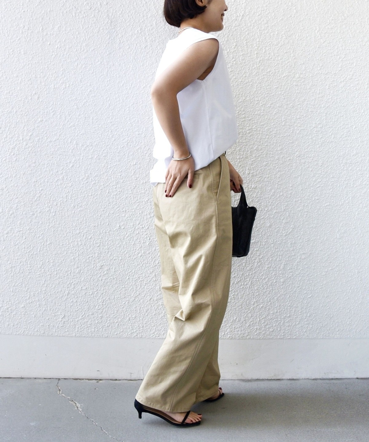 綺麗めなスタイリングでもカジュアルなスタイリングでも使っていただきやすい一枚です。
