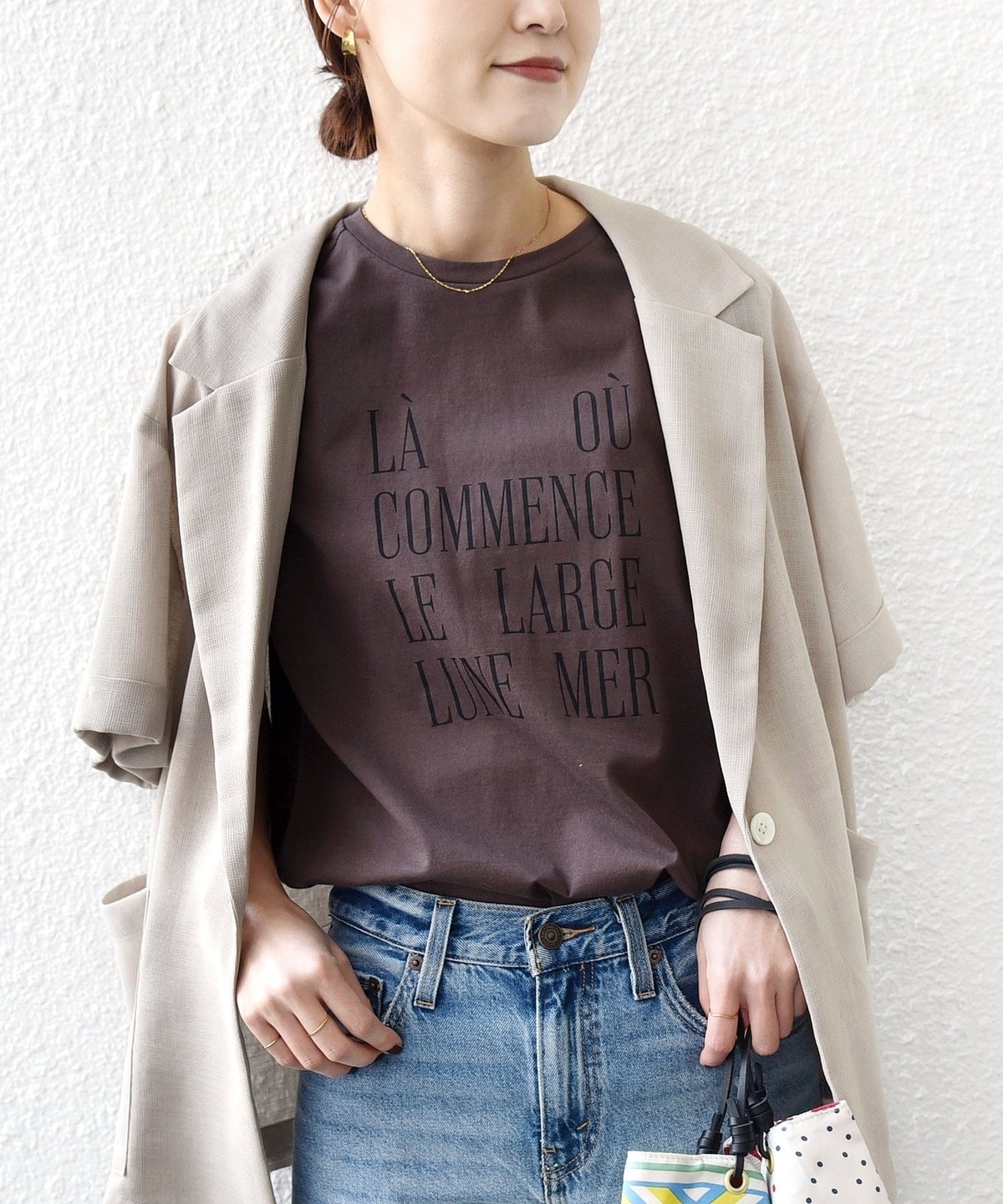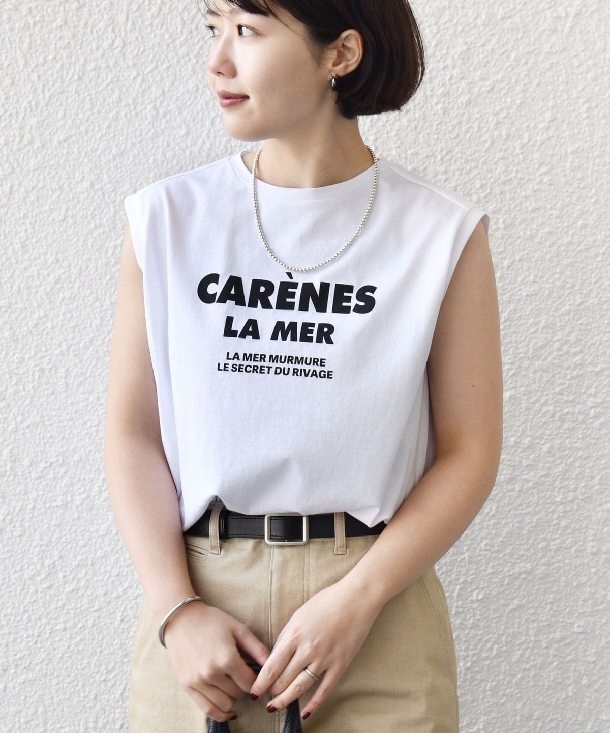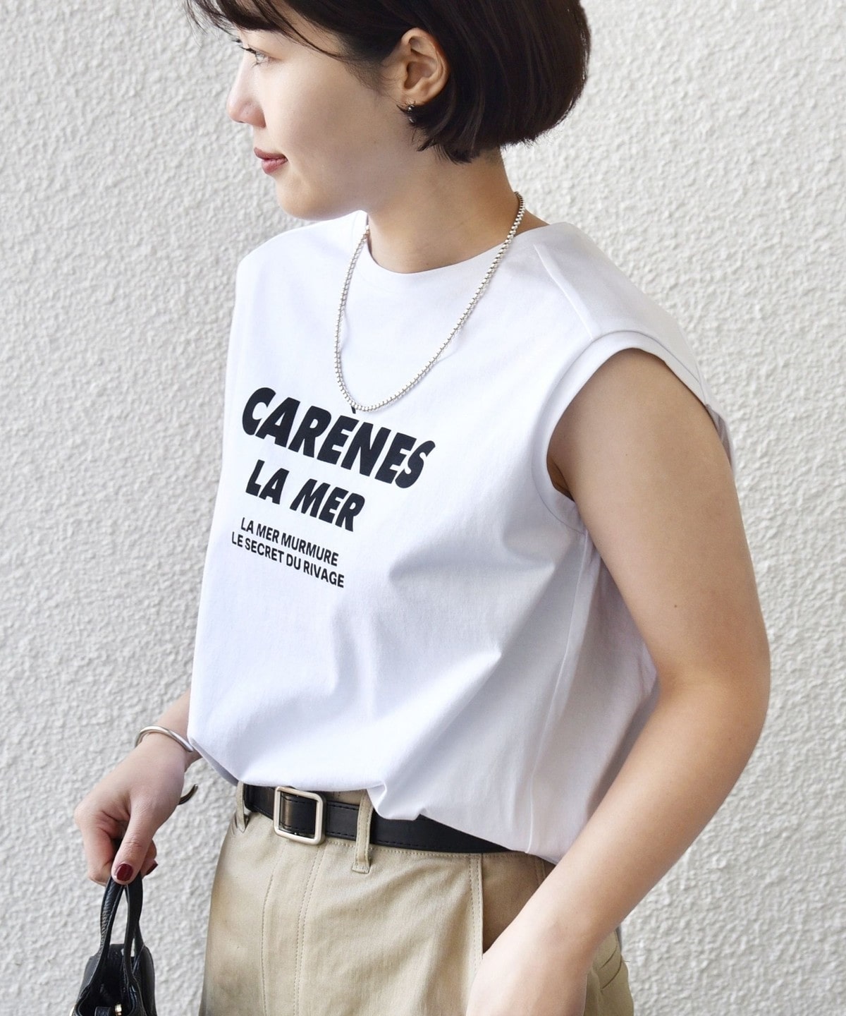 カジュアルに見えがちなロゴTシャツも大人っぽい綺麗めな印象の素材感に仕上げました。