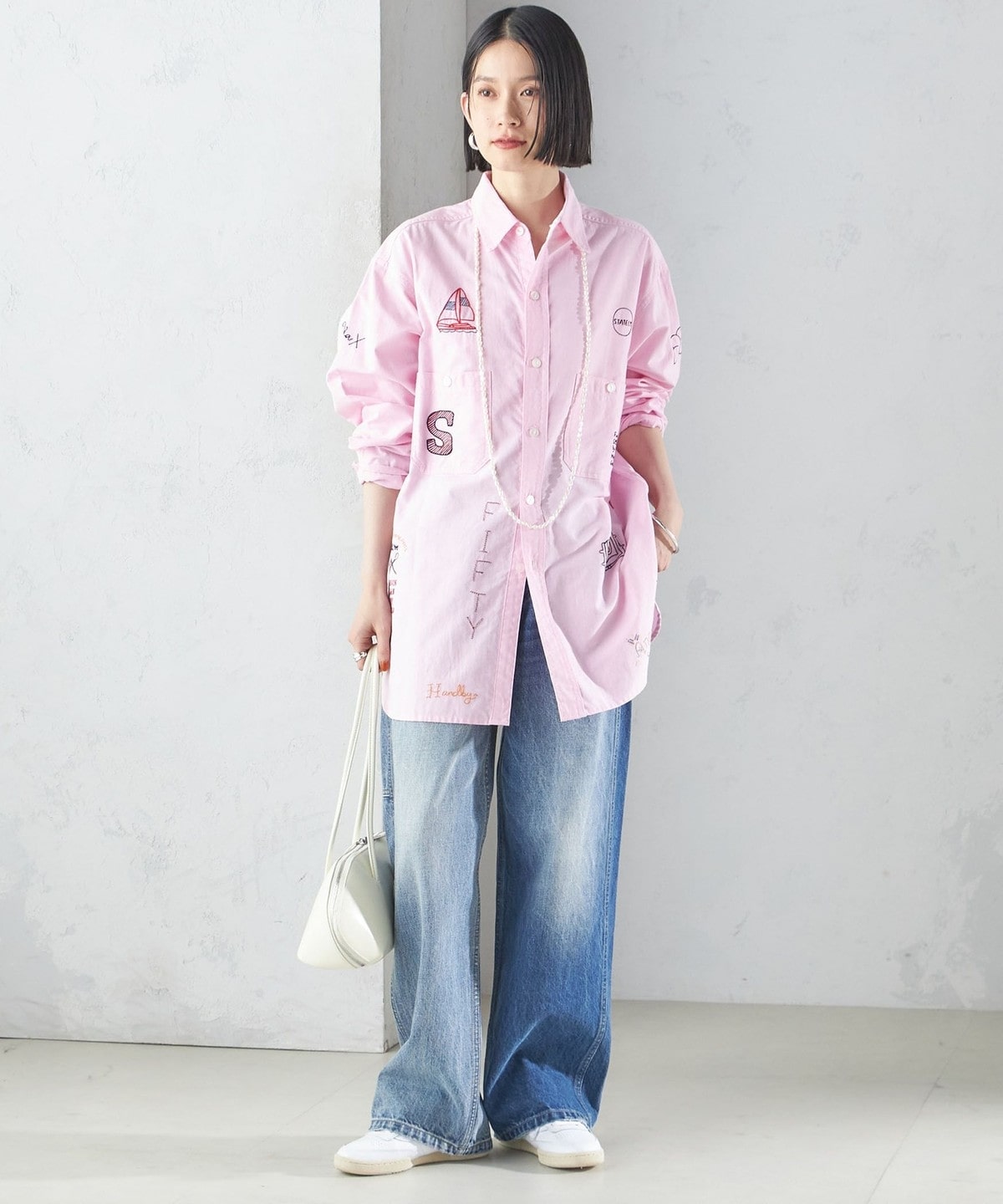 身頃とパッチポケットの加工感を左右で変えており、リメイク風のデザインが着映えします。