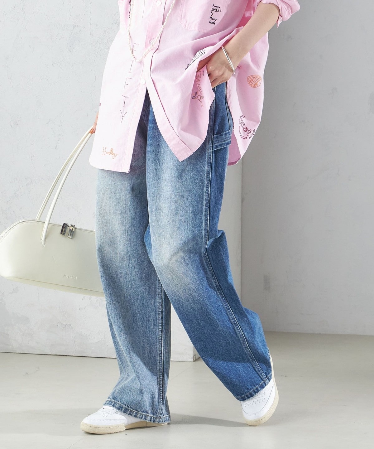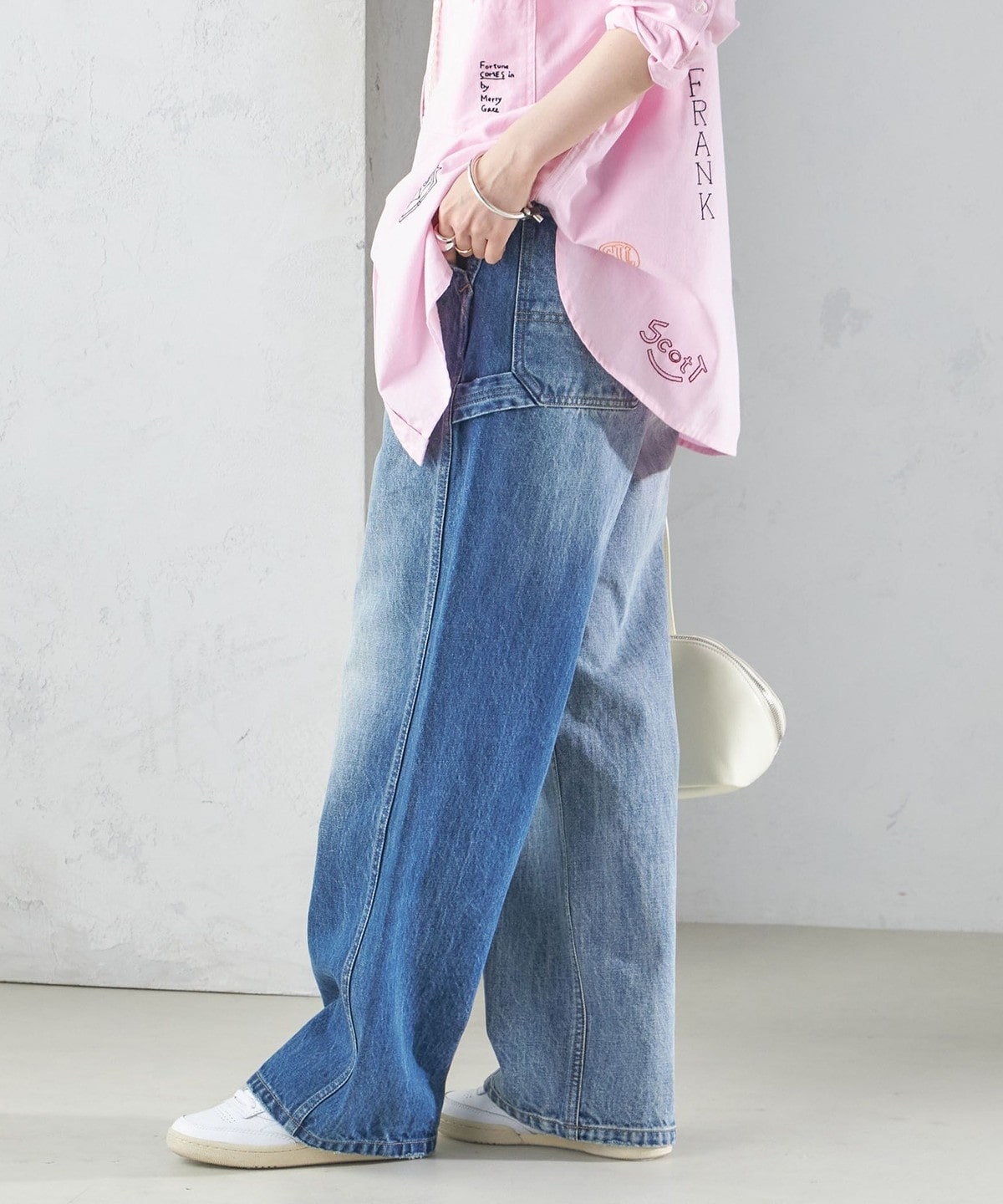 ジャストサイズで履いていただいても良いですし、あえてサイズアップしてサスペンダーをしたり、ベルトで絞ってメンズライクな着こなしもおすすめです。
