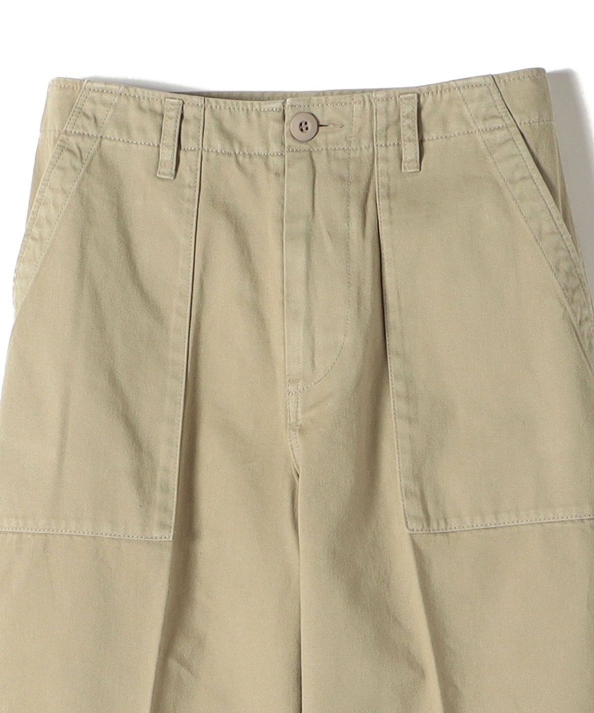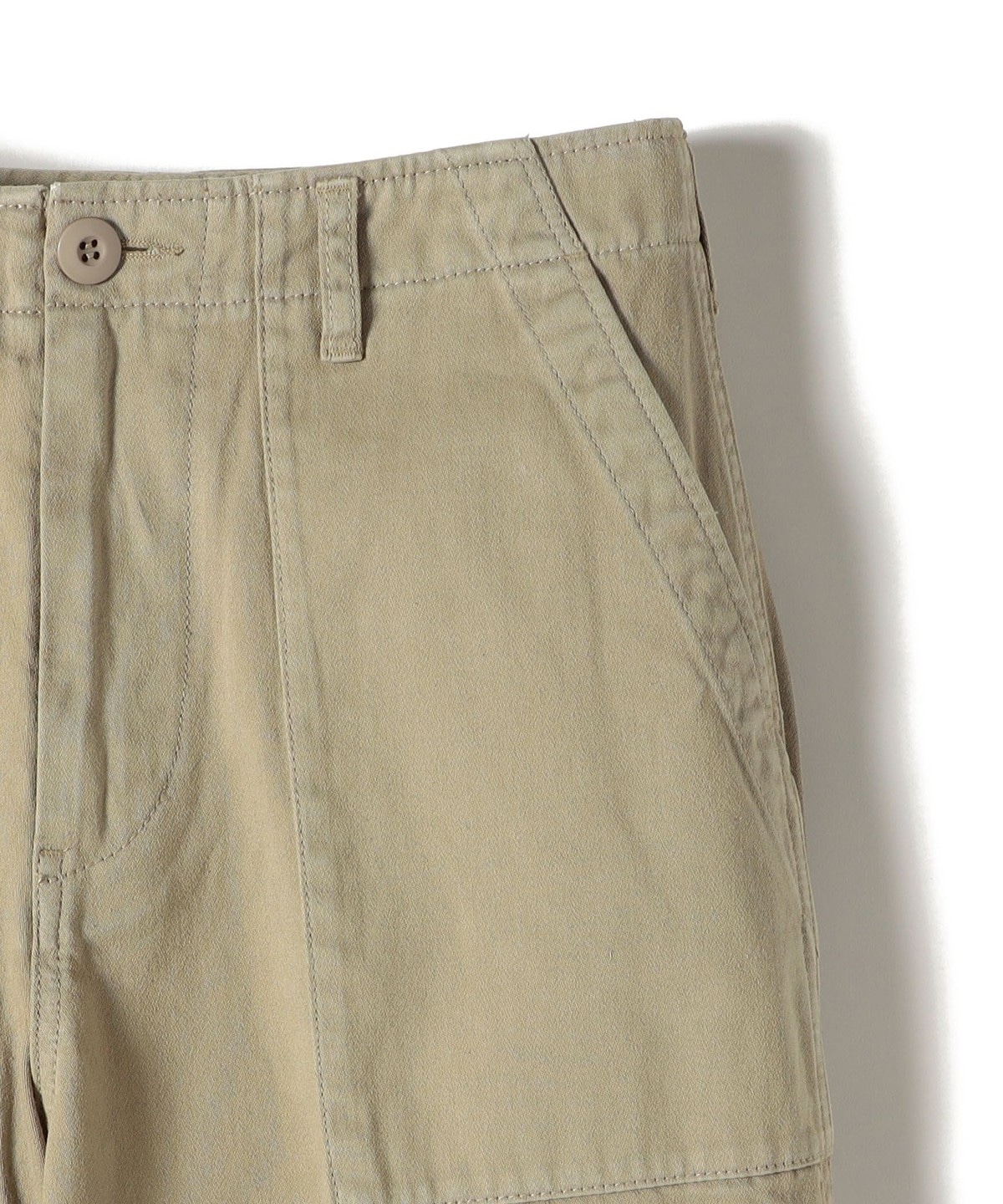 製品染めを施すことで程よいムラ感とパッカリングを出し、ヴィンテージライクな仕上がりにしたワイドシルエットのベイカーパンツ。