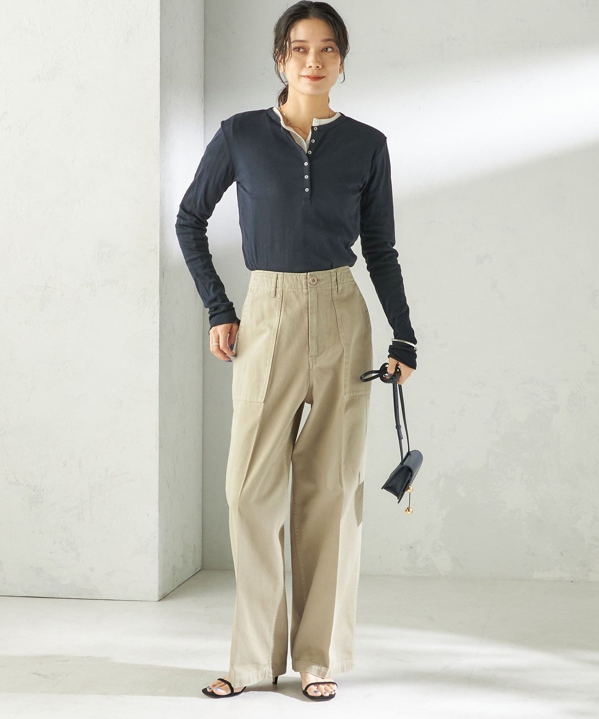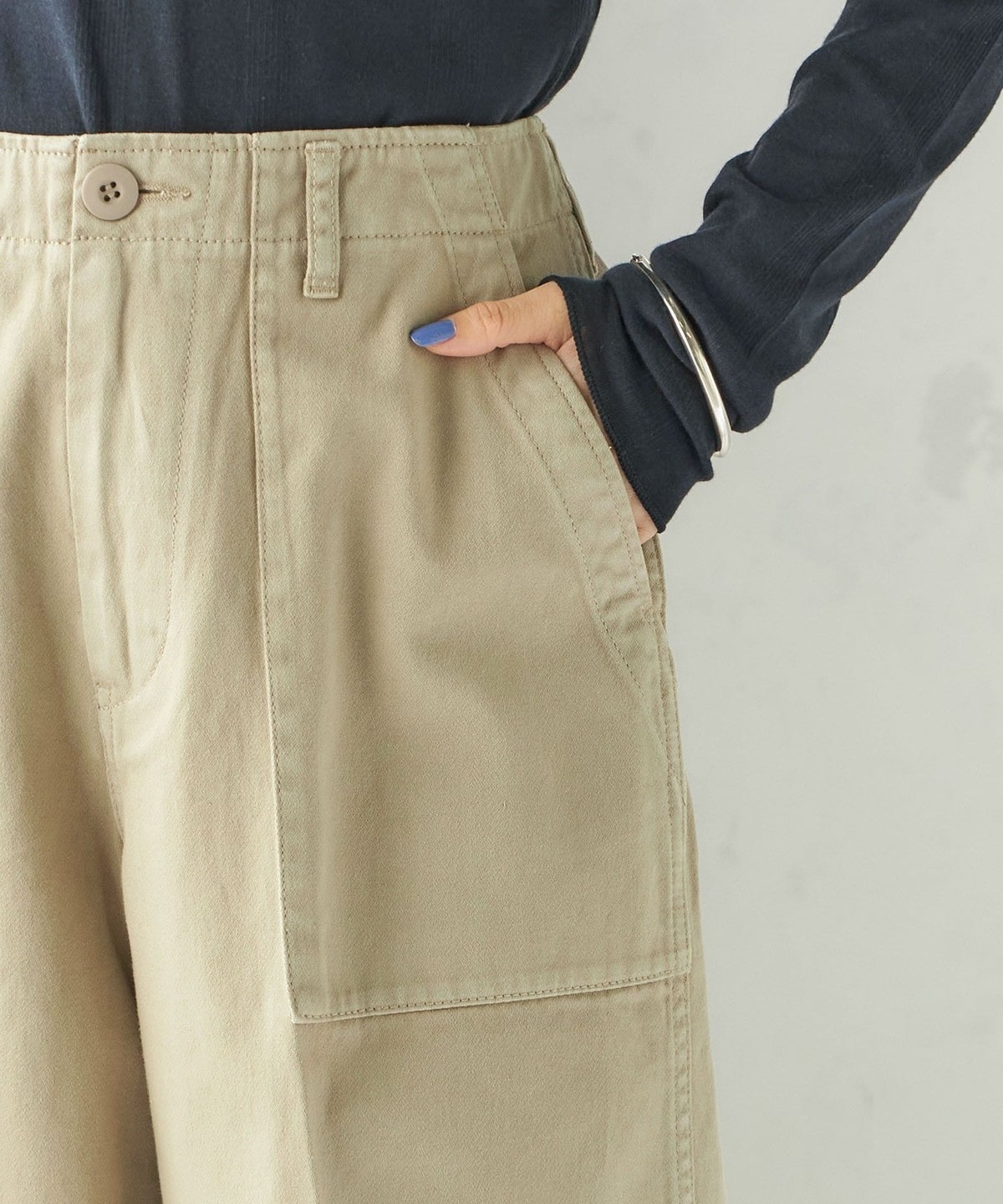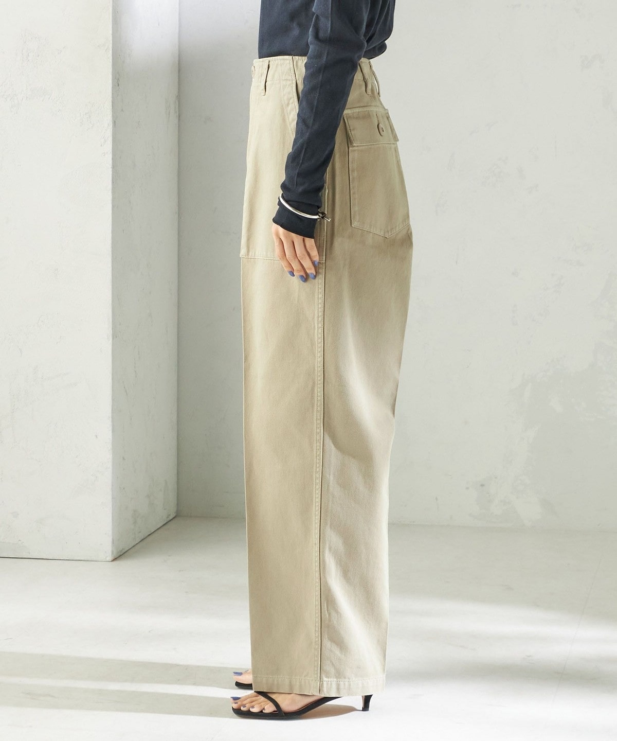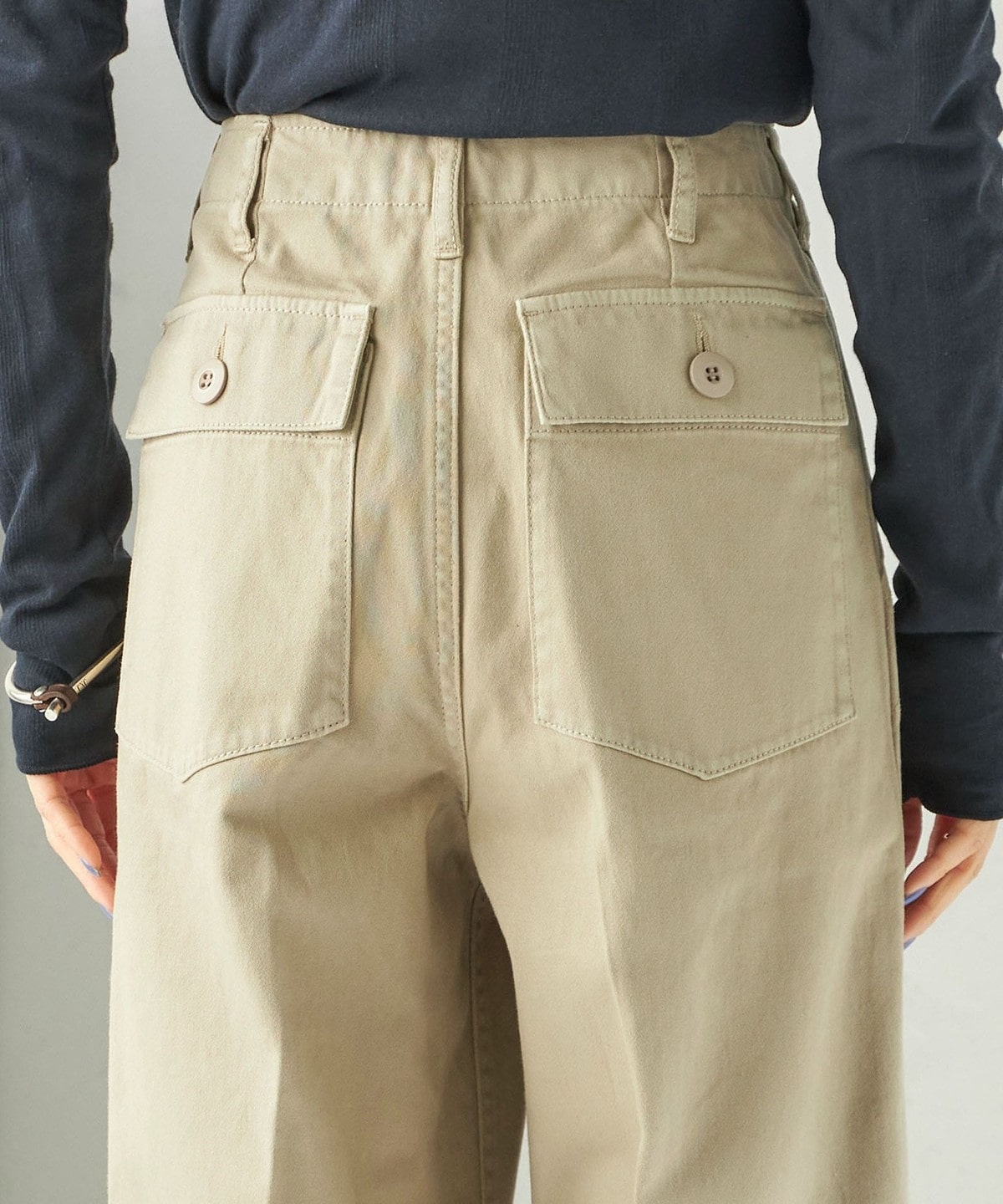ラフに穿くことができ、タックインしても綺麗に見せてくれるシルエットになっています。