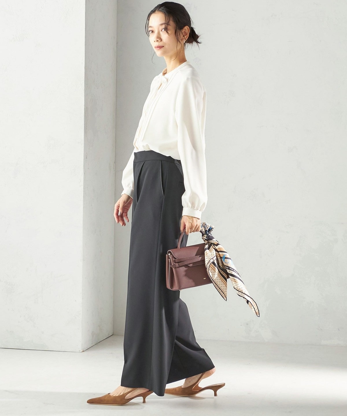 ブラウスと合わせたベーシックな通勤スタイルはもちろん、Tシャツやニットと合わせてカジュアルダウンした着こなしもおすすめです。