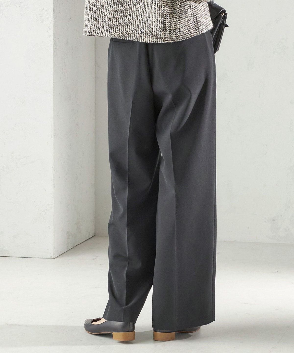 ラインが綺麗に見えるセミワイドパンツ。
