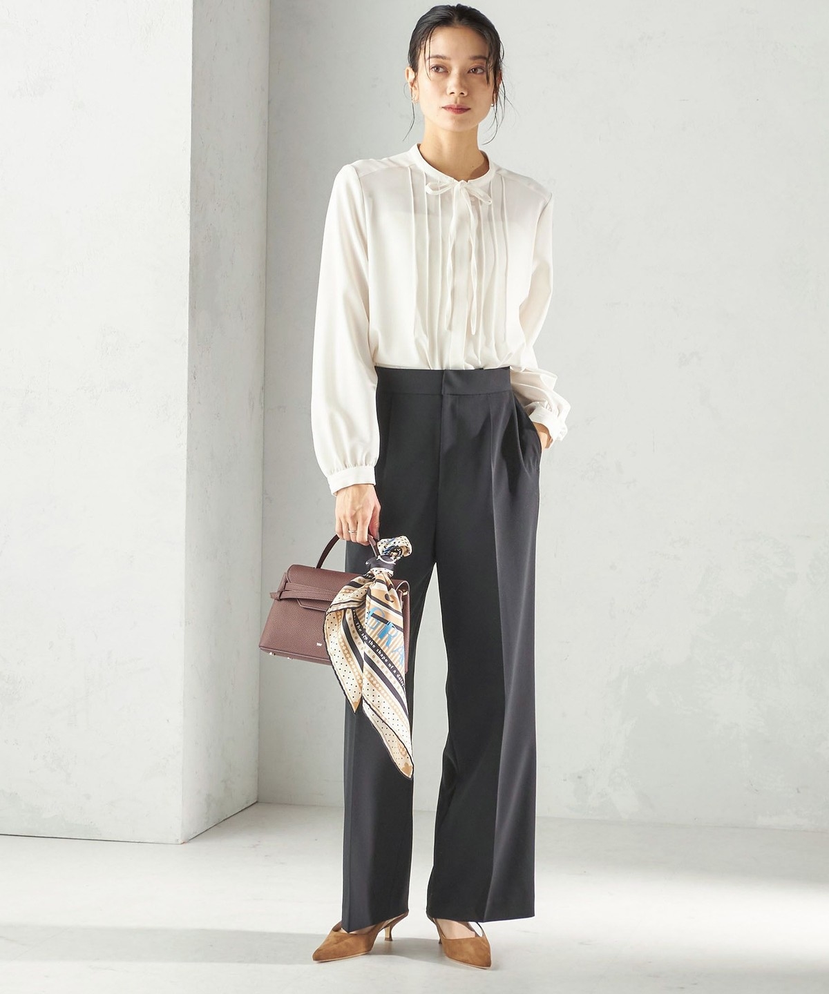 ブラウスと合わせたベーシックな通勤スタイルはもちろん、Tシャツやニットと合わせてカジュアルダウンした着こなしもおすすめです。