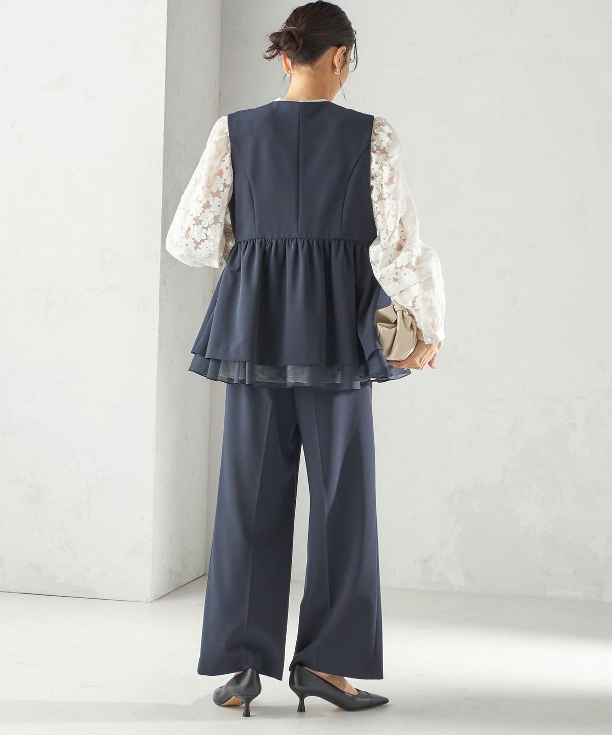 ダブル クロス レイヤード ペプラム ジレ(品番:314-71-0177)