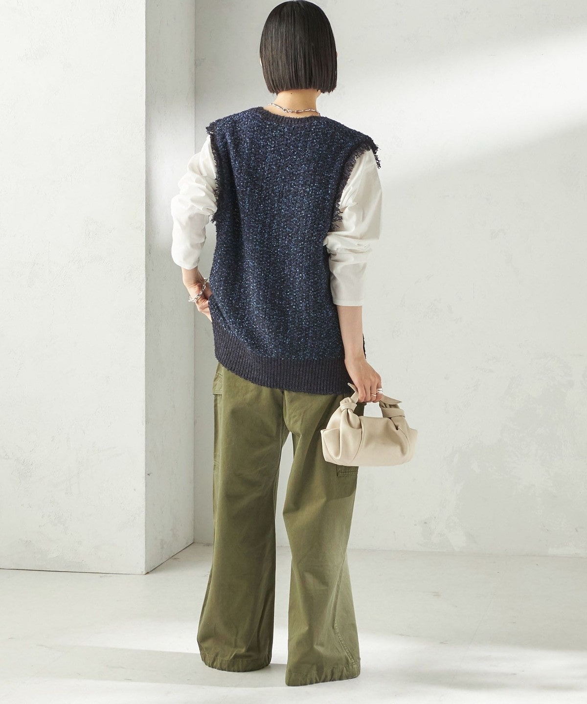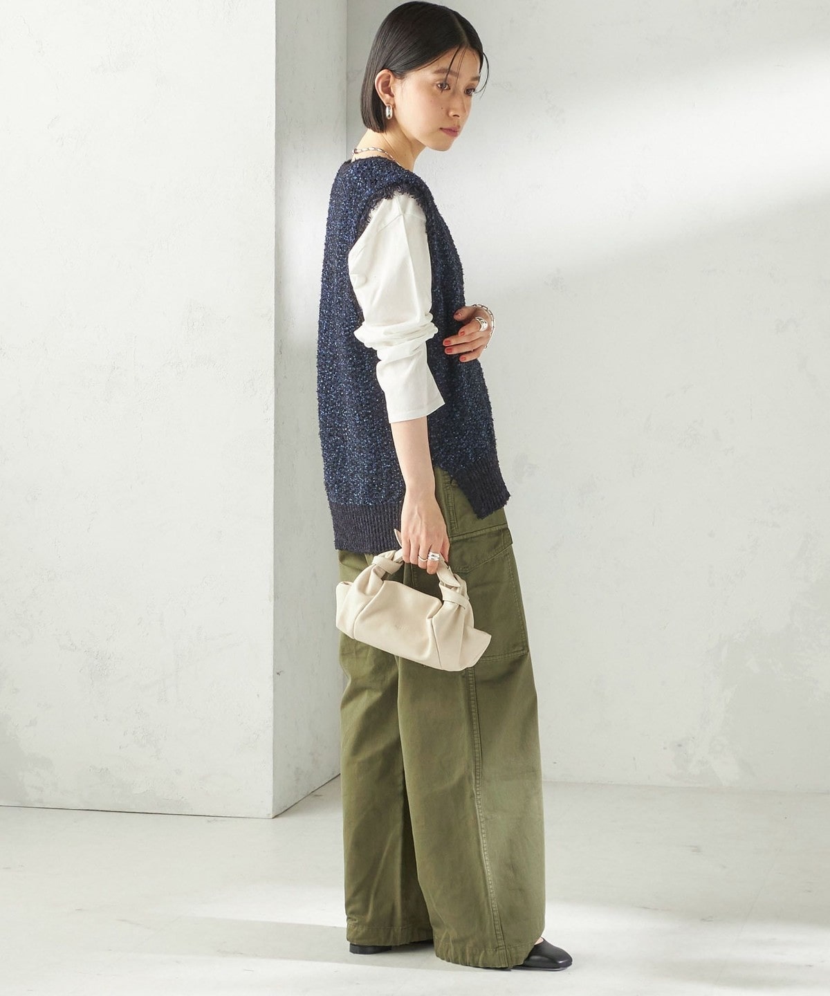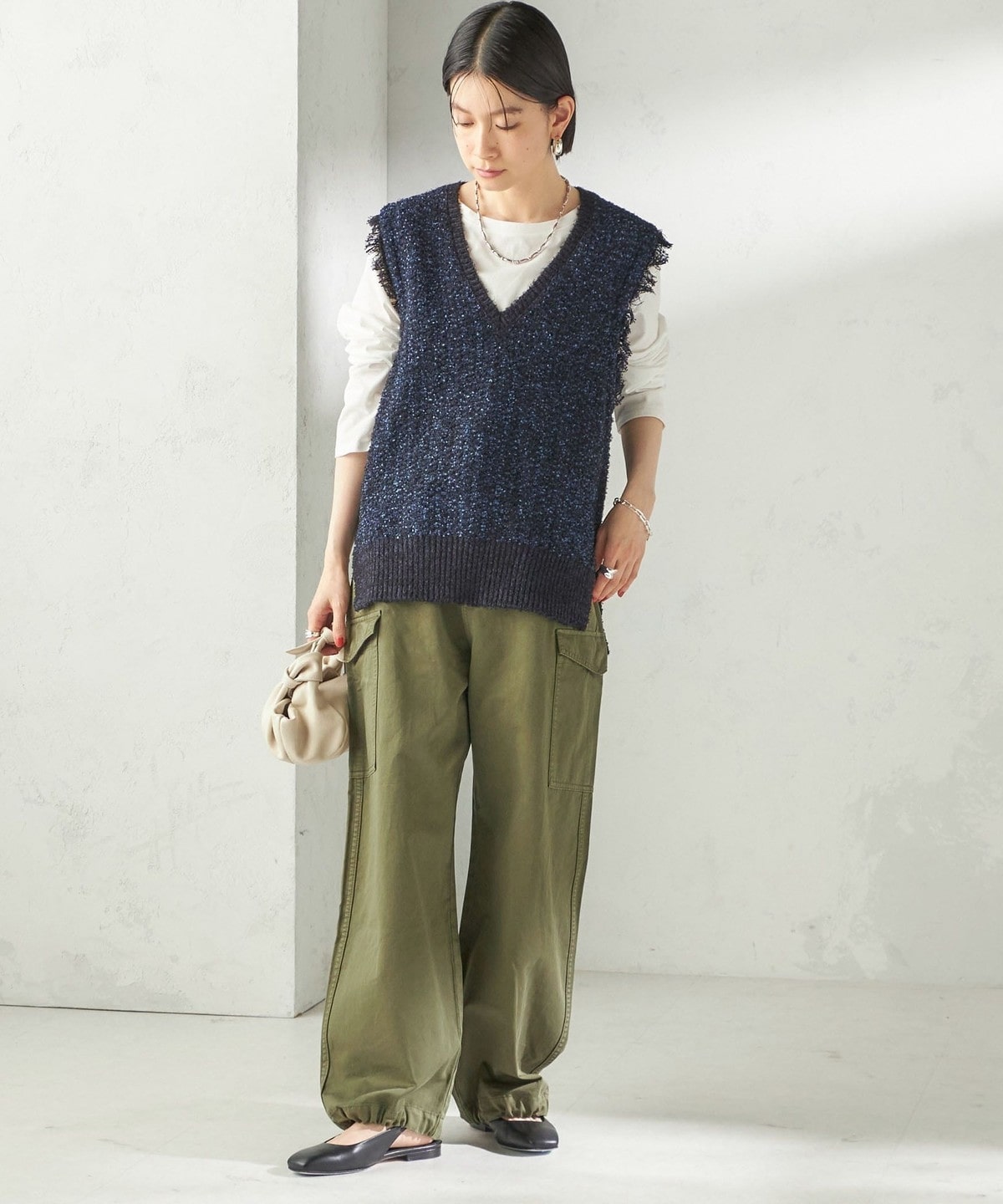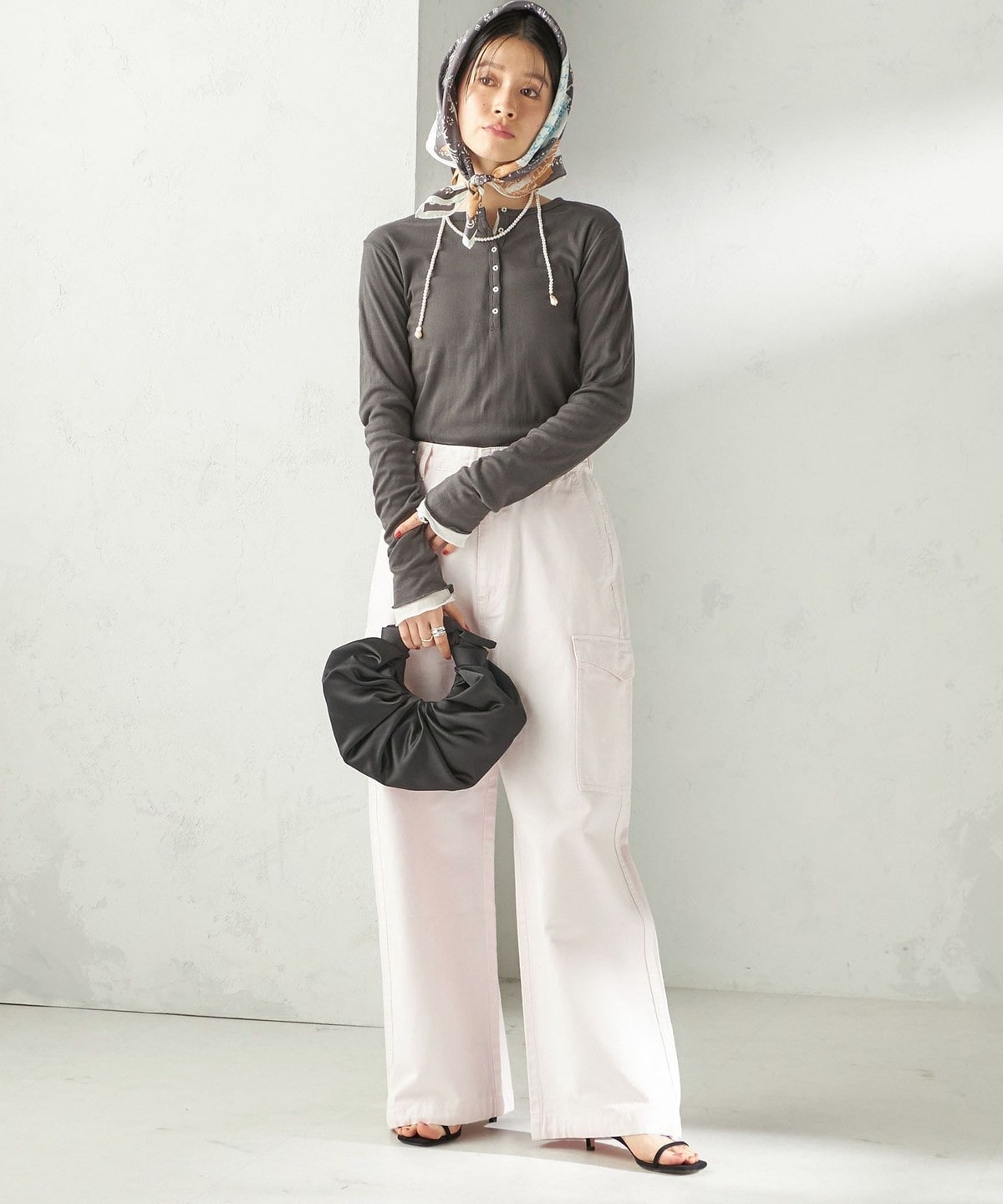 タフさのあるカジュアルなボトムなので、ブラウスやコンパクトなトップスなど女性らしいアイテムとの組み合わせが今季らしくておすすめです。