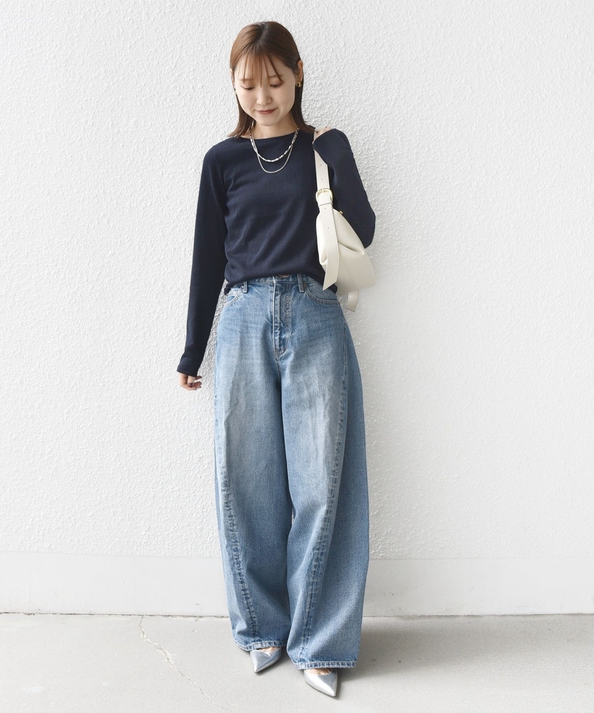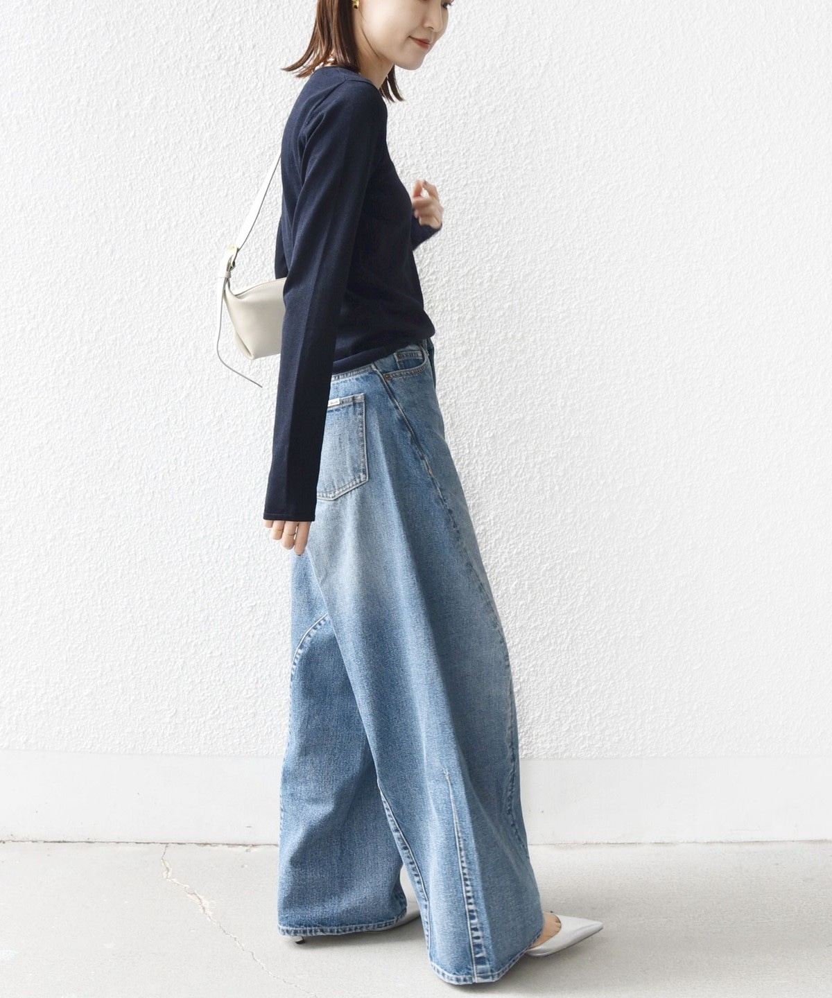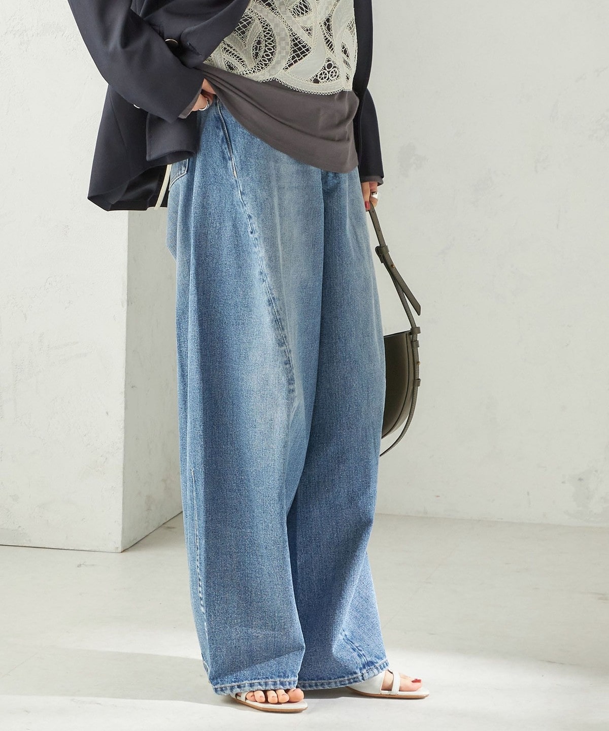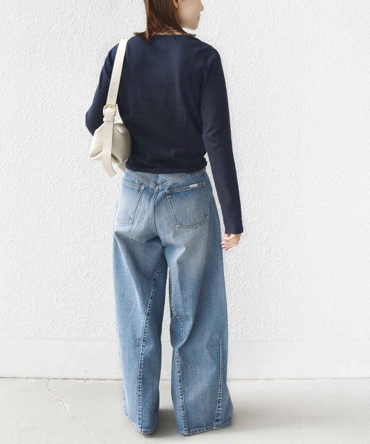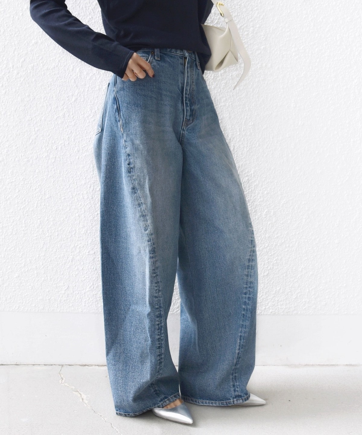 程よい厚さと前後の立体感に加え、バレルレッグデザインによる落ち感のある丸みと程よいボリューム感が特徴です。