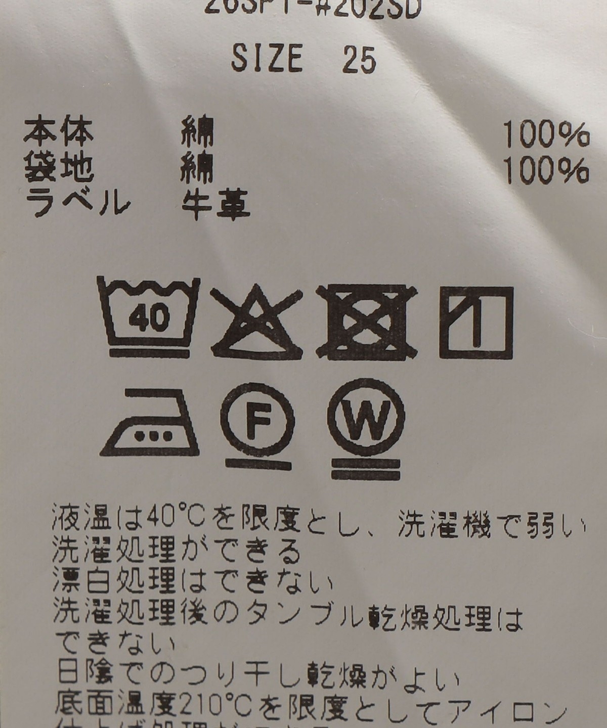 素材:本体: 綿100%, 袋地: 綿100%, ラベル: 牛革