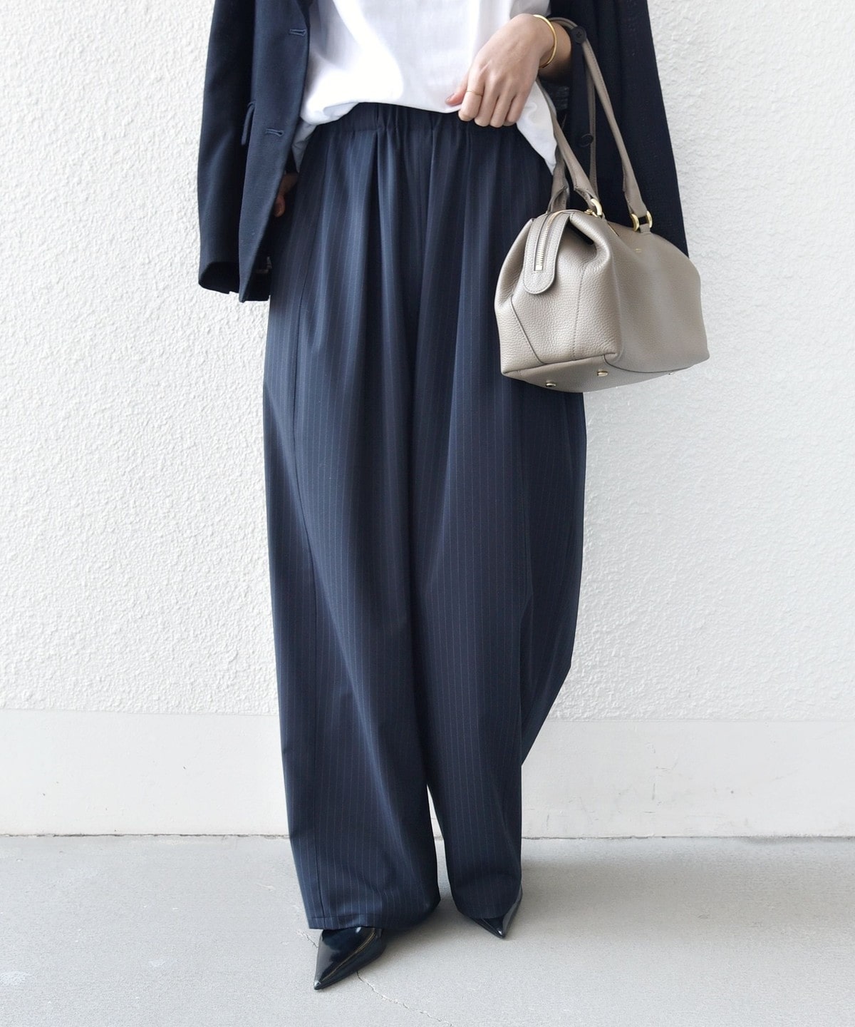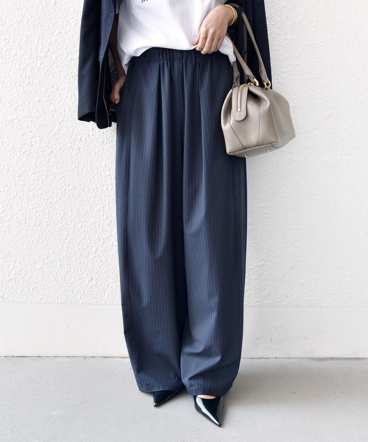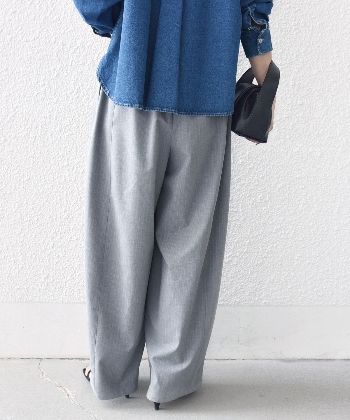 《予約》〈手洗い可能〉トロ ピン ストライプ ウエスト ギャザー パンツ