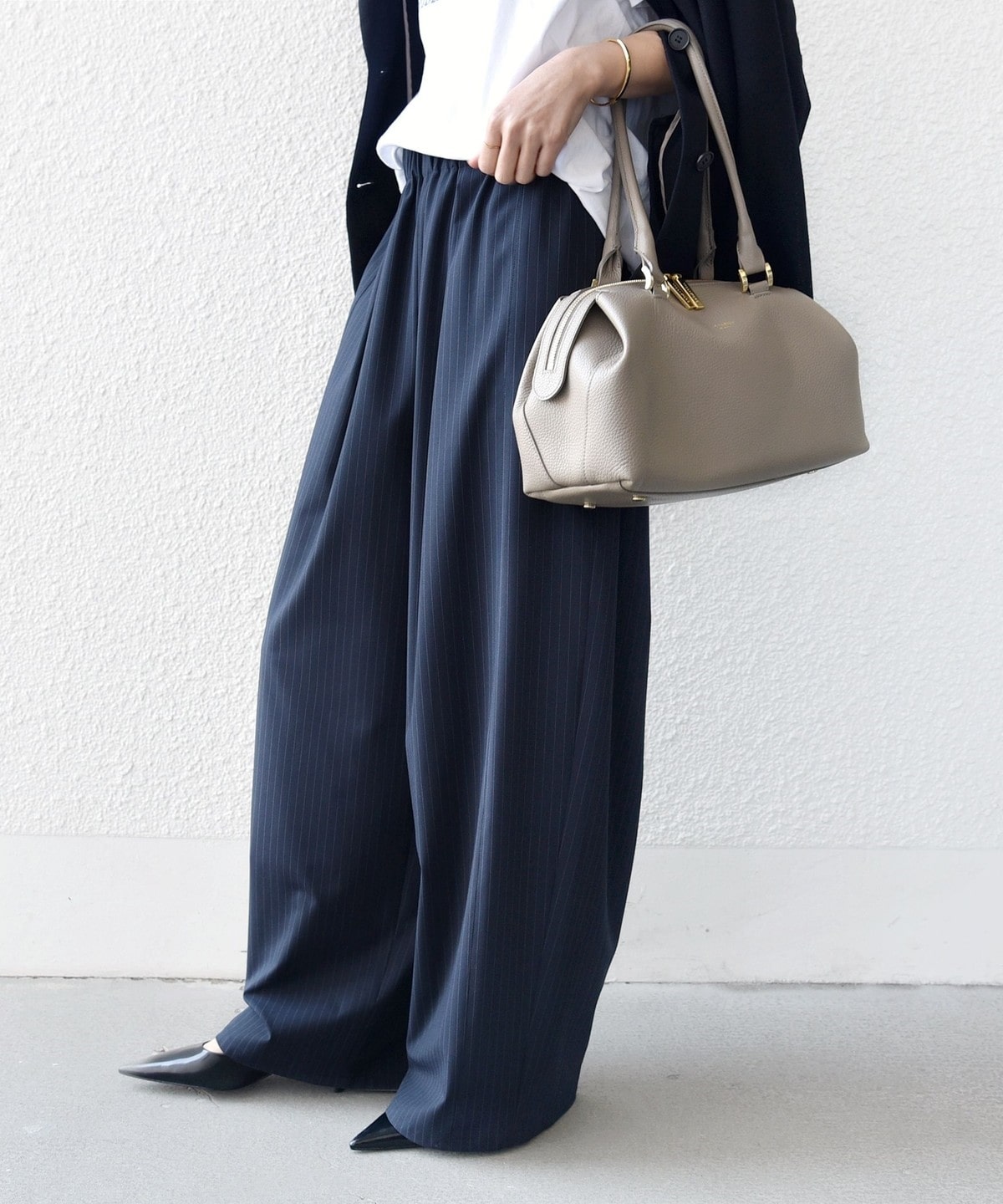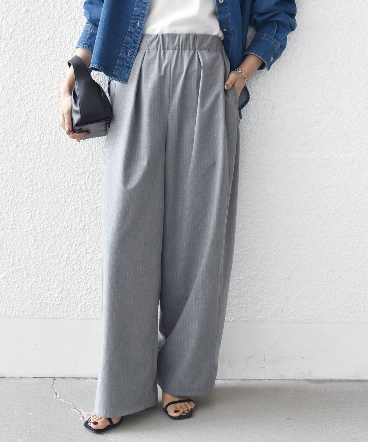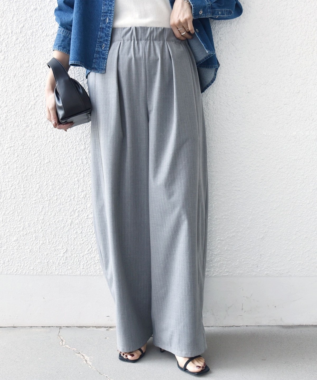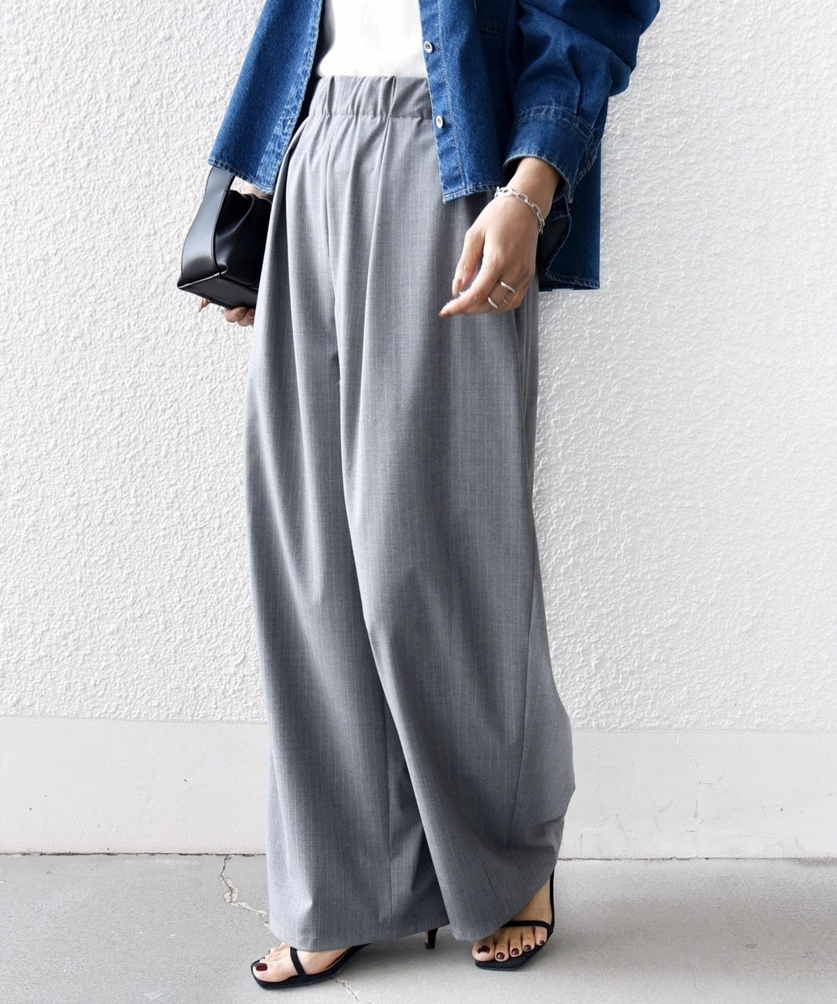 《予約》〈手洗い可能〉トロ ピン ストライプ ウエスト ギャザー パンツ