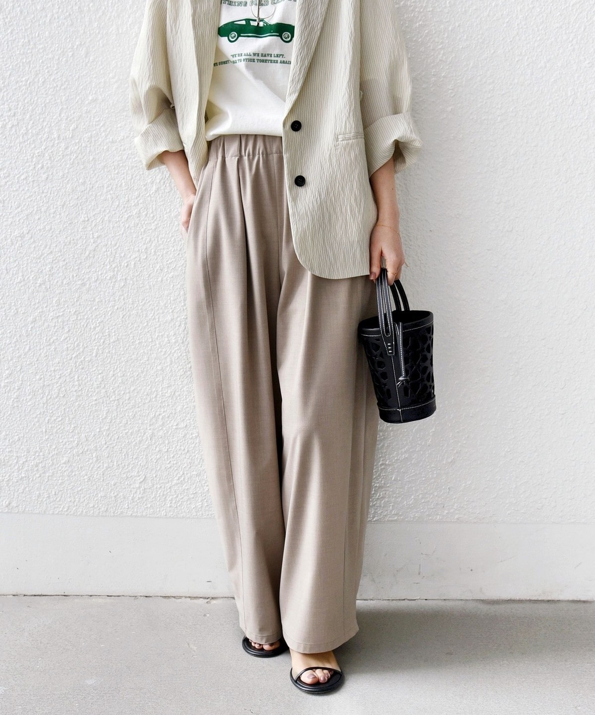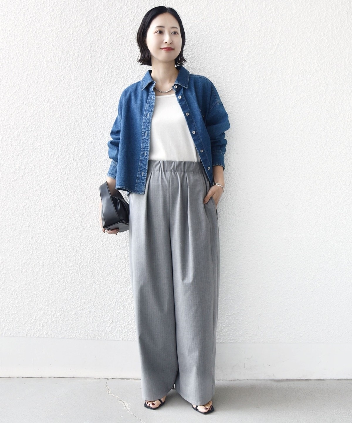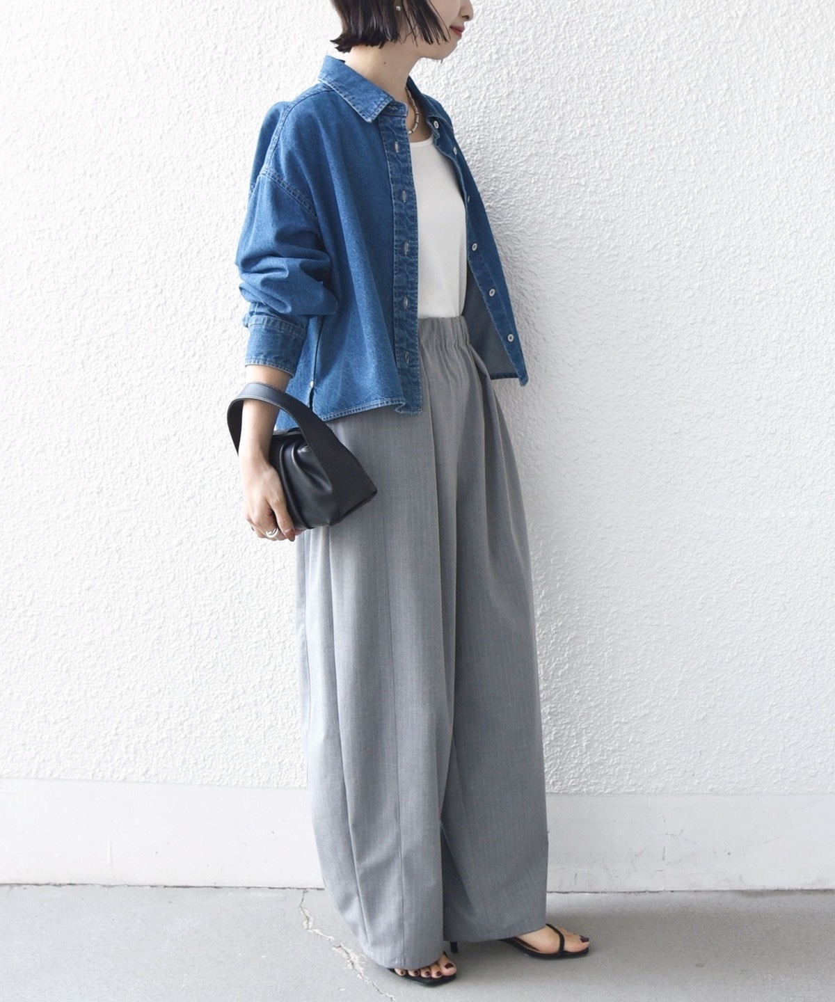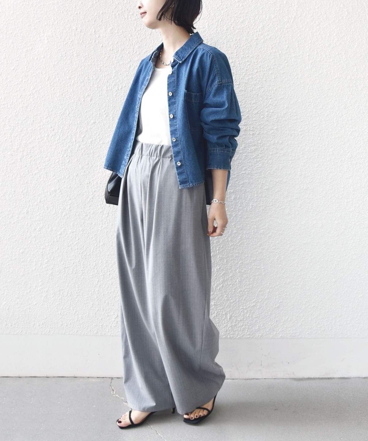 夏はTシャツ合わせで軽やかに、季節が進んだらヘアリーなニットを合わせても表面がクリアなので毛が付きにくく、ストレスなくスタイリングを楽しめます。