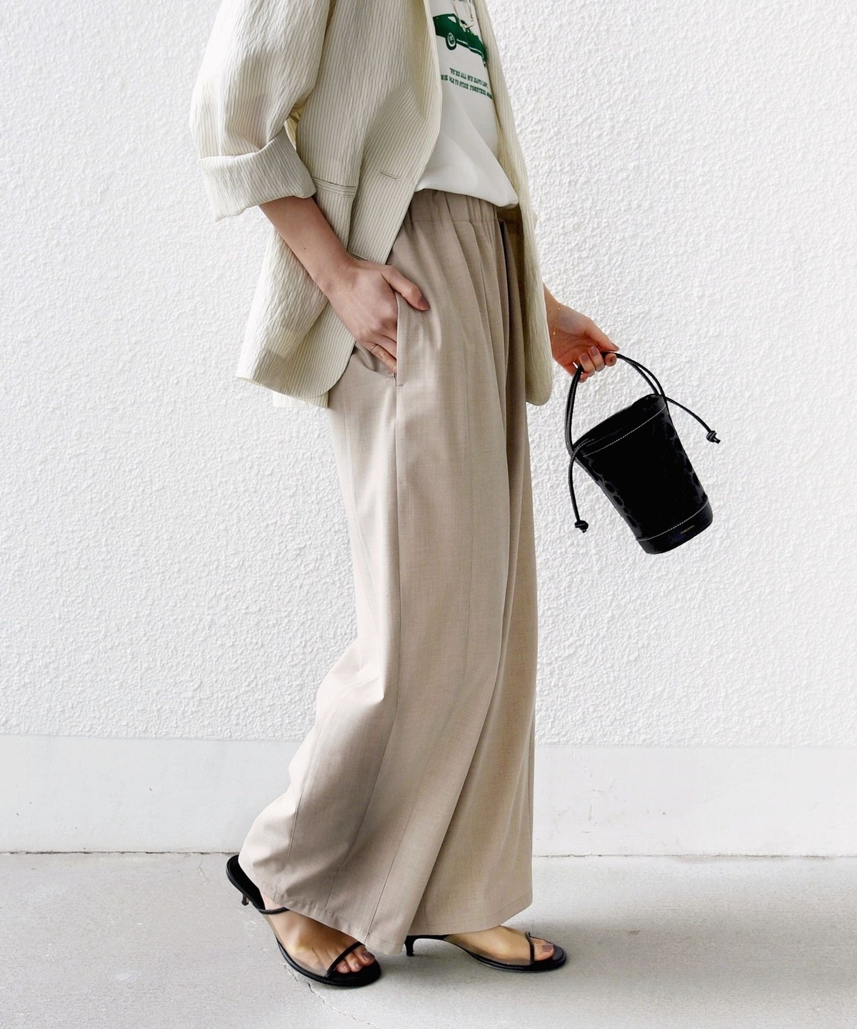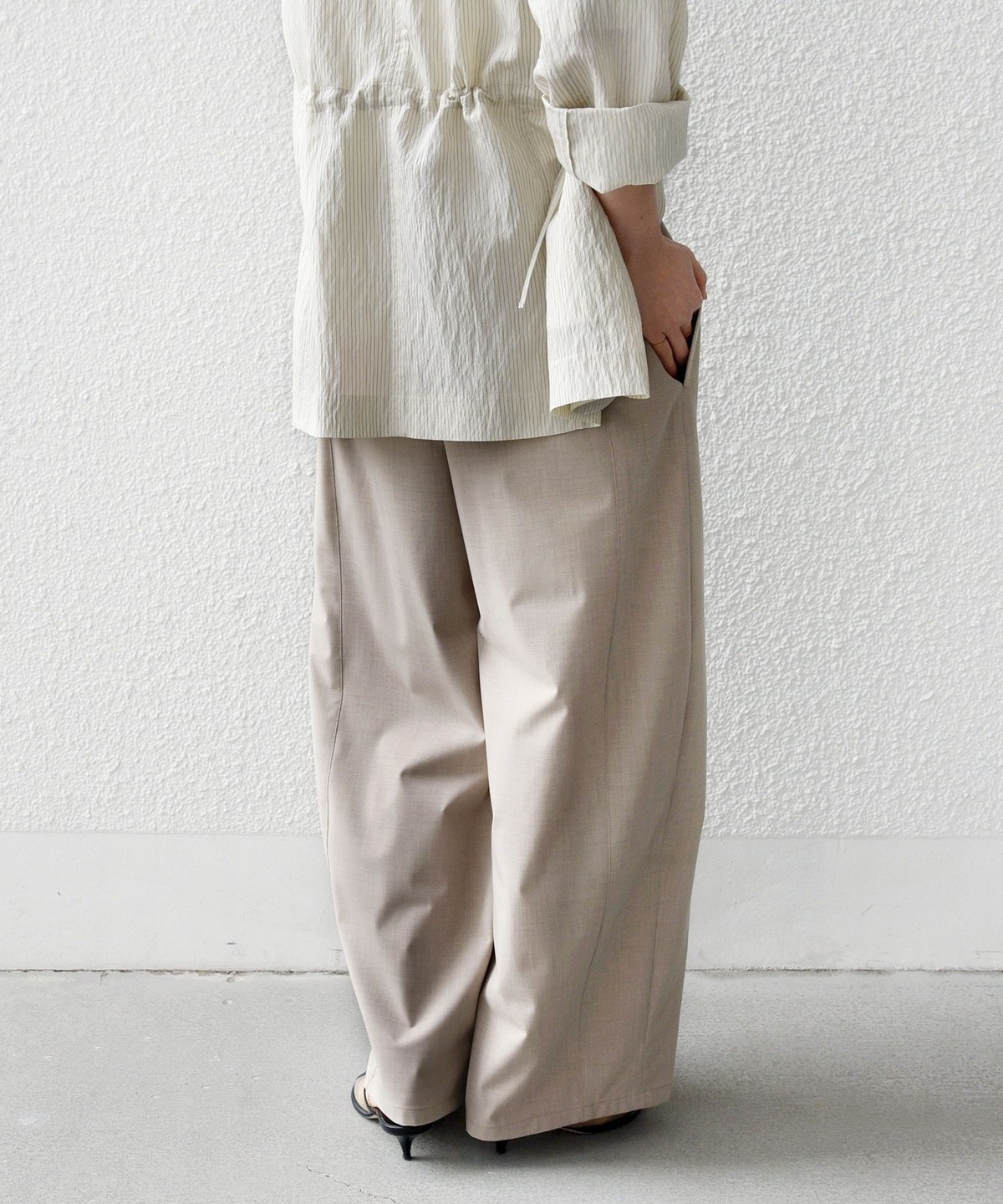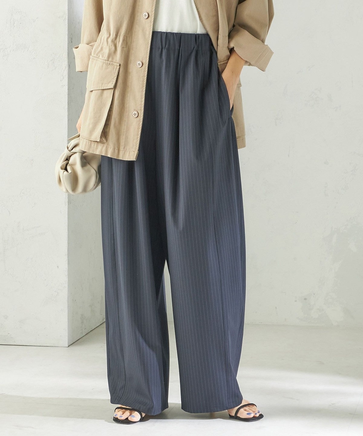 〈手洗い可能〉トロ ピン ストライプ / 無地 ウエスト ギャザー パンツ
