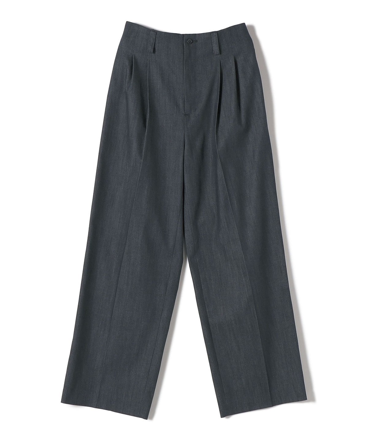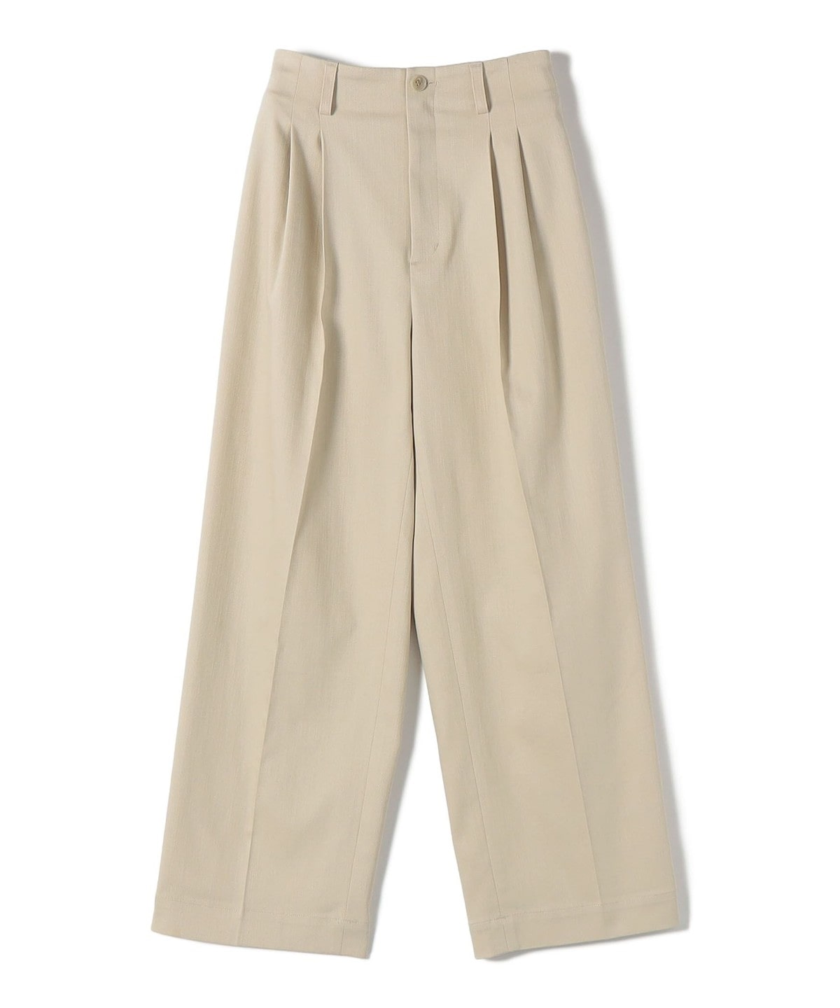 腰位置が高く見えるデザインと2タック仕様で、お腹周りをカバーしながらスタイルアップが叶うワイドパンツ。