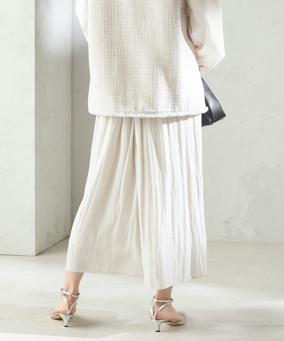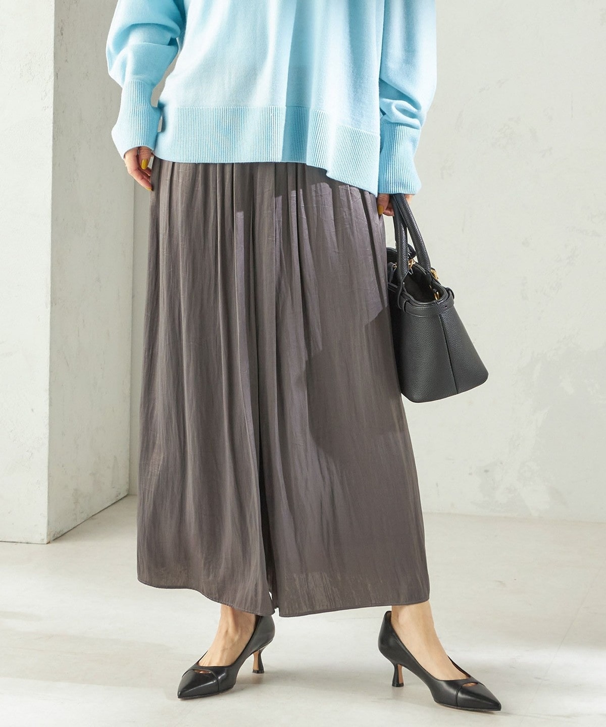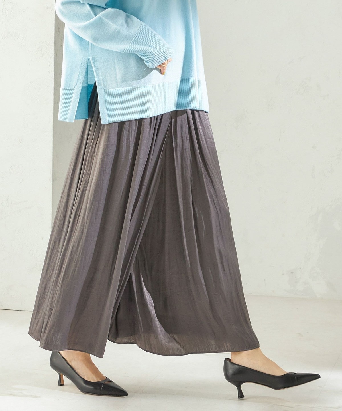 ふんわり揺れる艶感が美しいサテンスカートパンツ