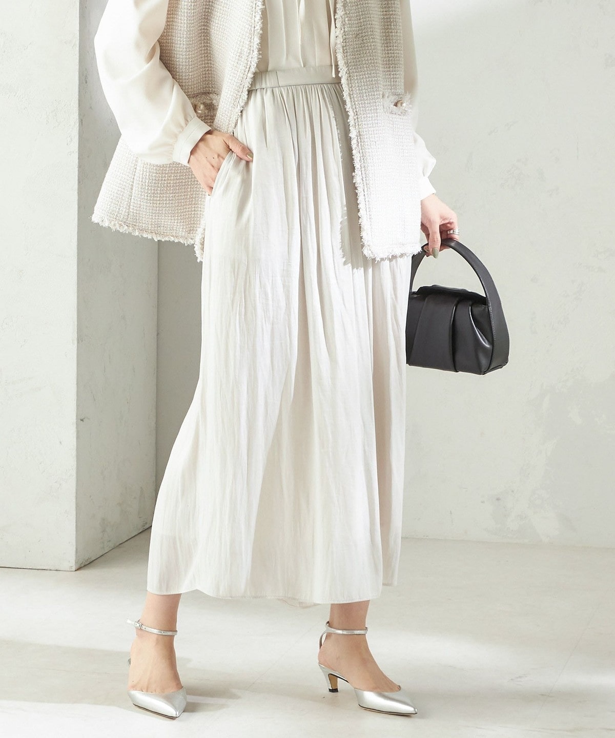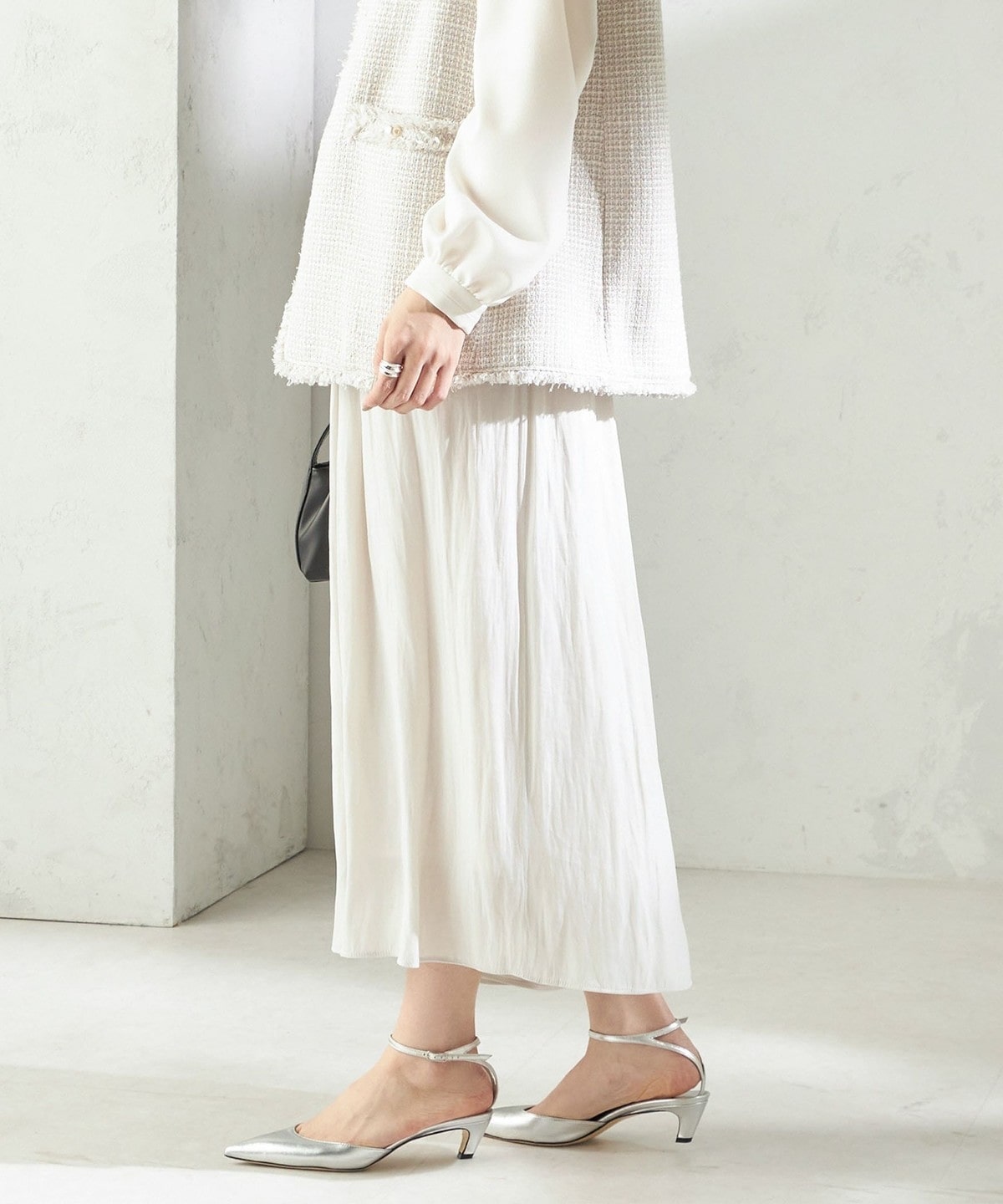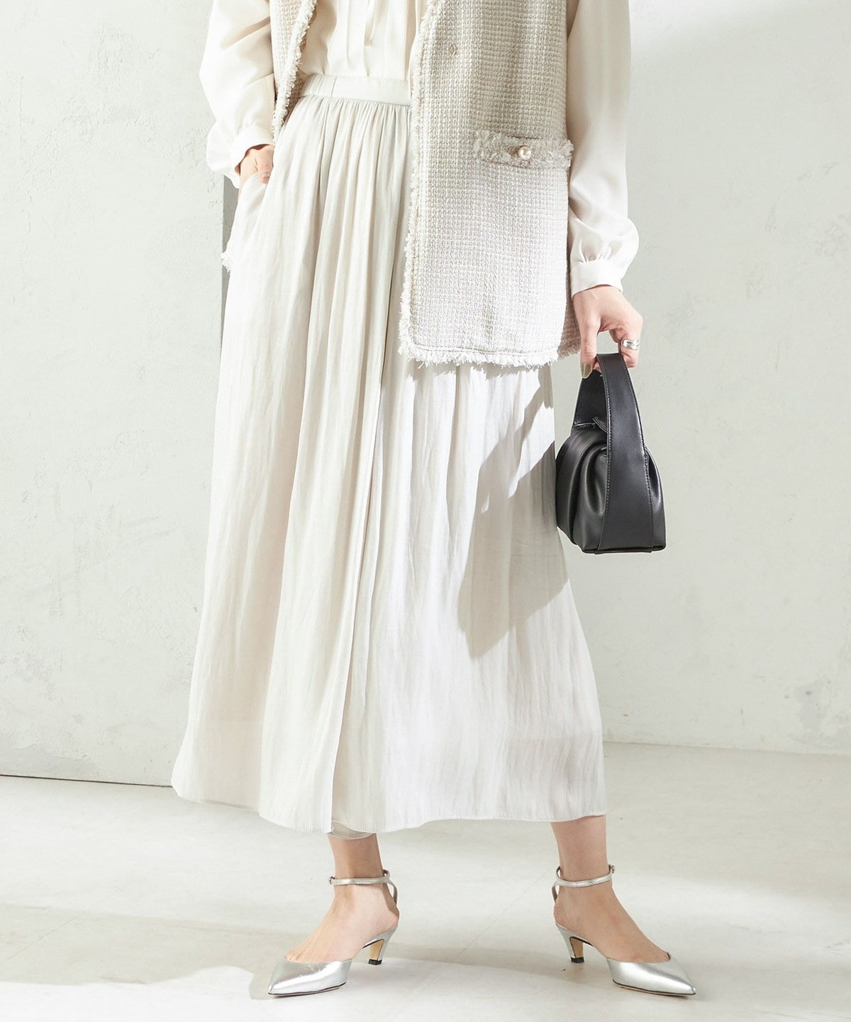 ふんわり揺れる艶感が美しいサテンスカートパンツ
