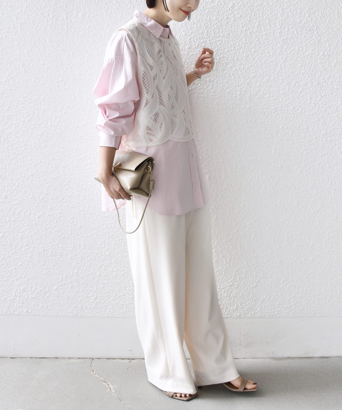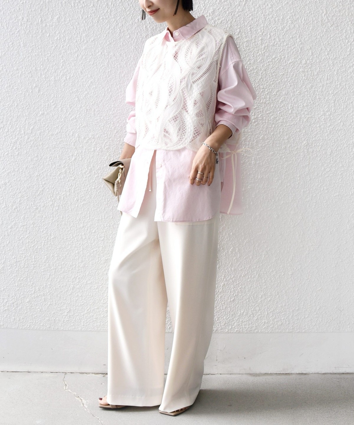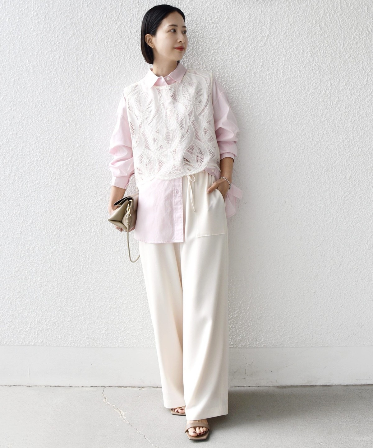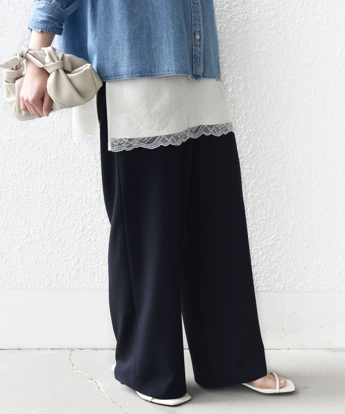 シンプルなドレープがきれいにでるパンツなので、きれいめなコーディネートに取り入れると大人のリラックス感を演出することができます。