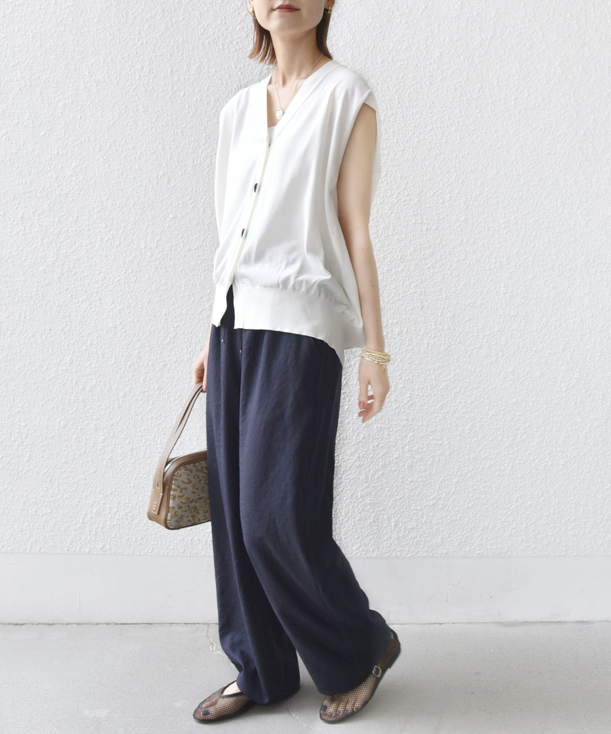 ジャケットやジレと合わせれば、オフィススタイルにもマッチします。