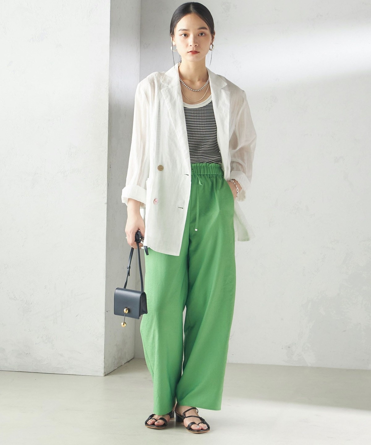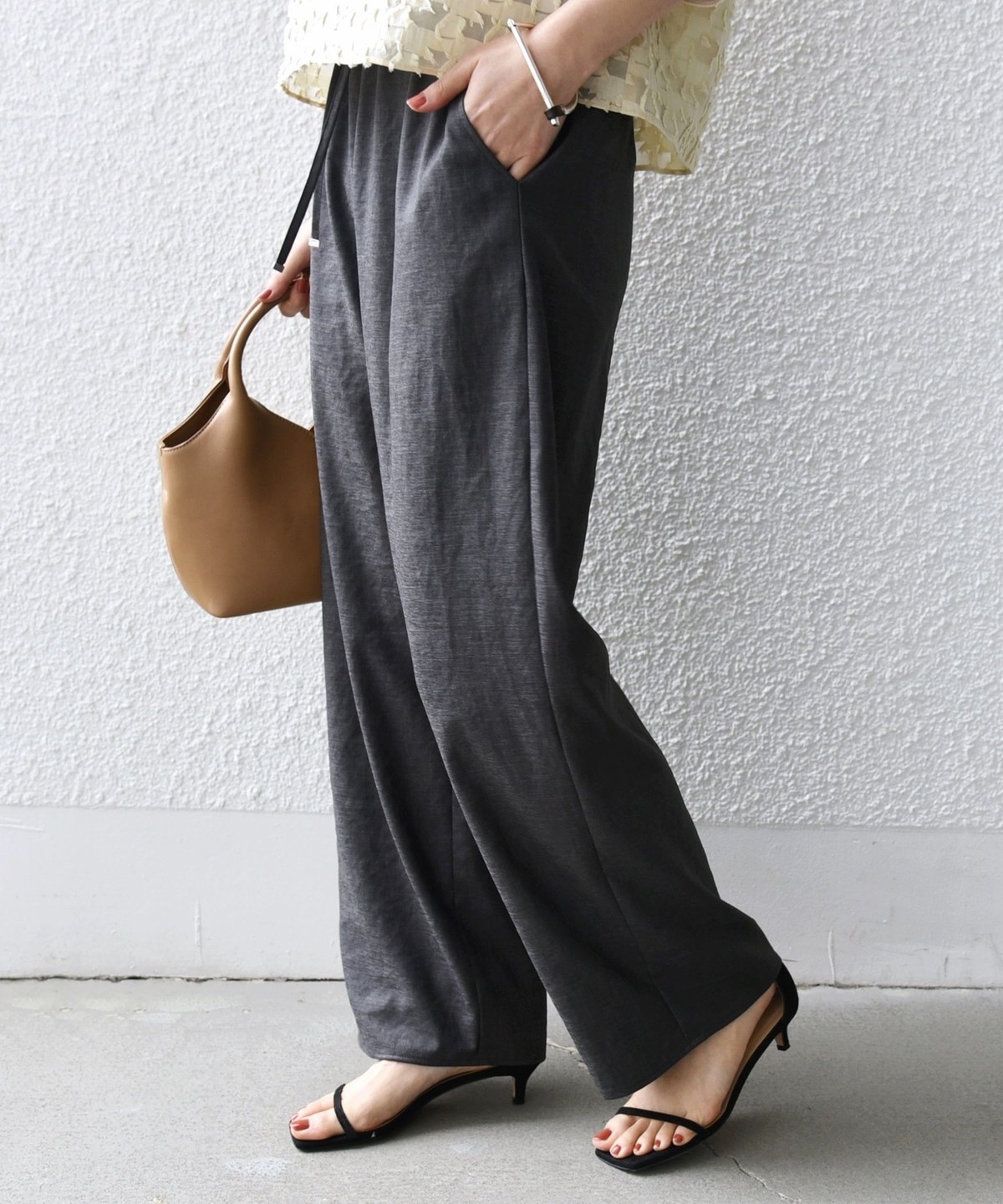足元はチャンキーヒールやキトンヒールなど、ヒールが高すぎないナチュラルなシューズが今年らしいバランスに。