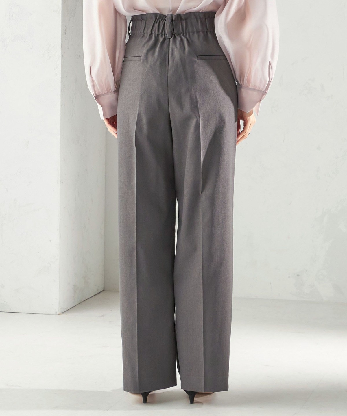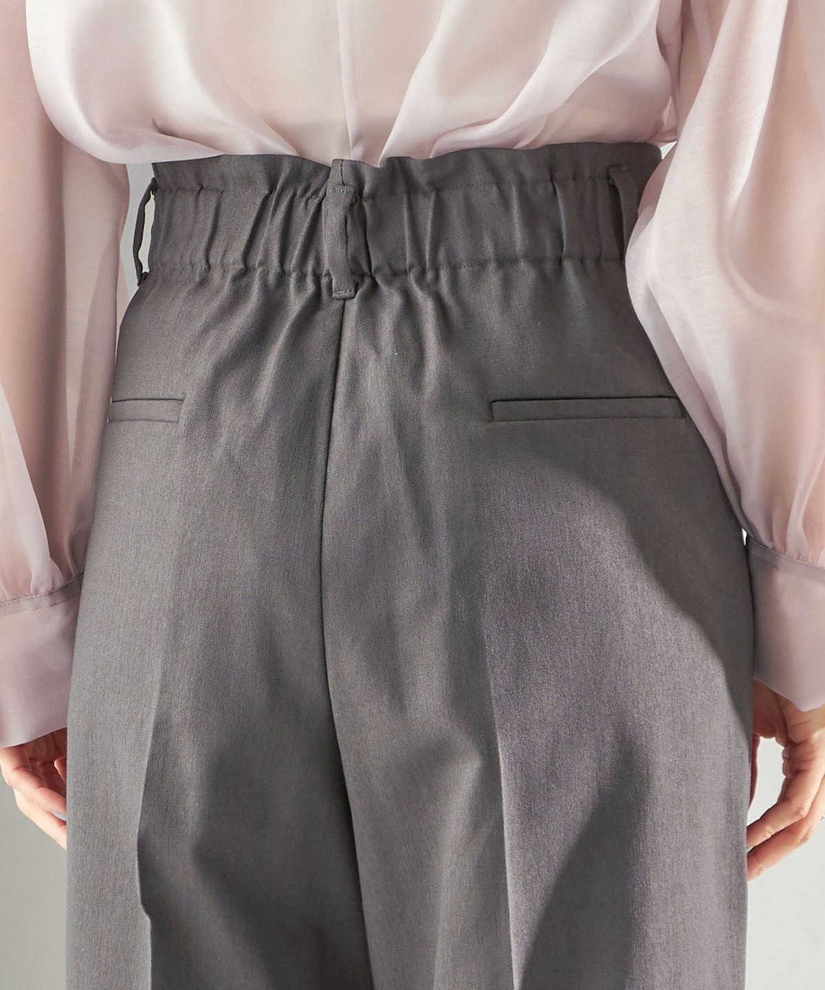 後ろウエスト中心のみゴムデザインを施し、着心地が良くなるように仕上げています。