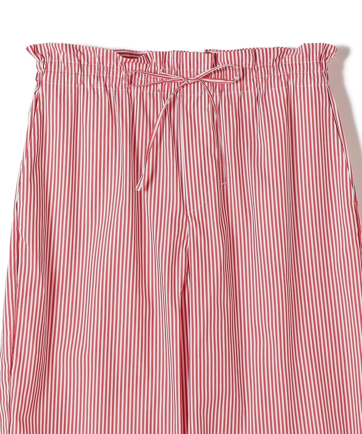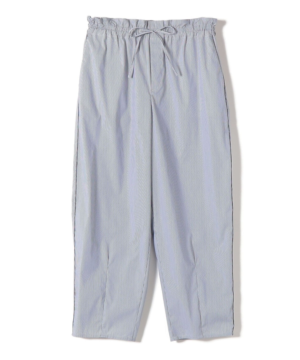 ウエストゴムとドロスト仕様でらくな履き心地。サイドにはメロー始末でさりげないアクセントを入れたデザイン。