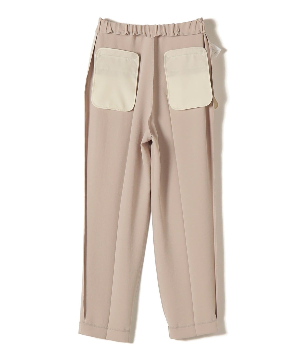 内側にゴムを施したウエストデザインで、リラックス感がありながら表からはすっきりと見えるテーパードパンツ。