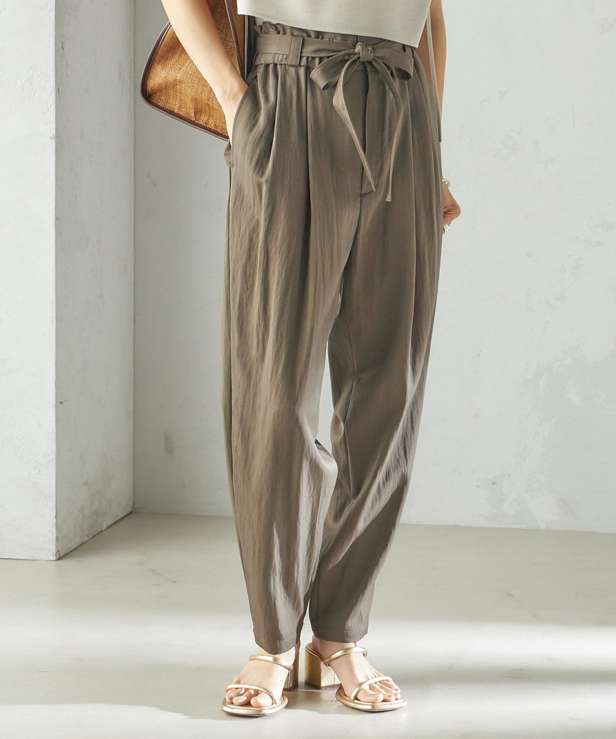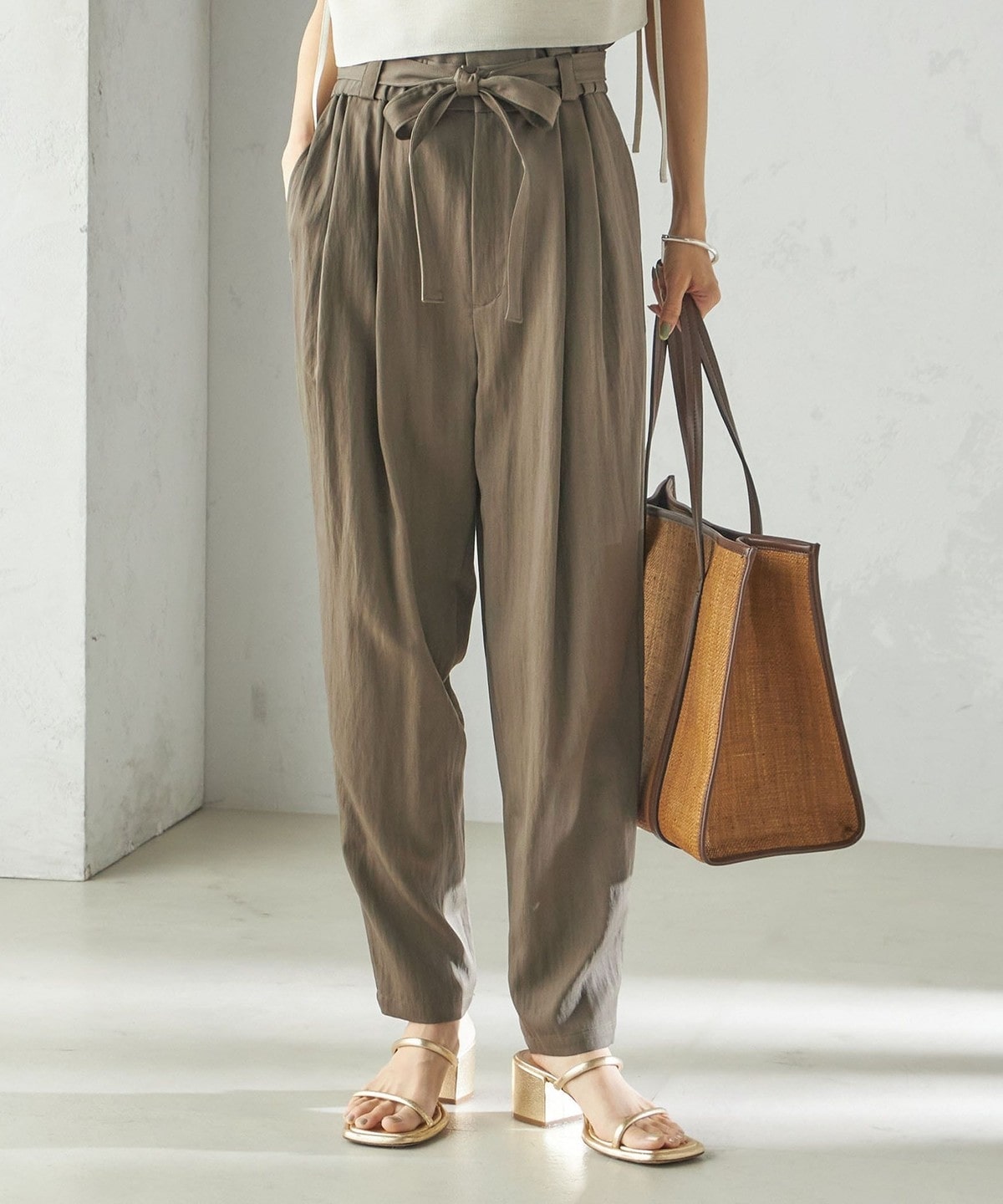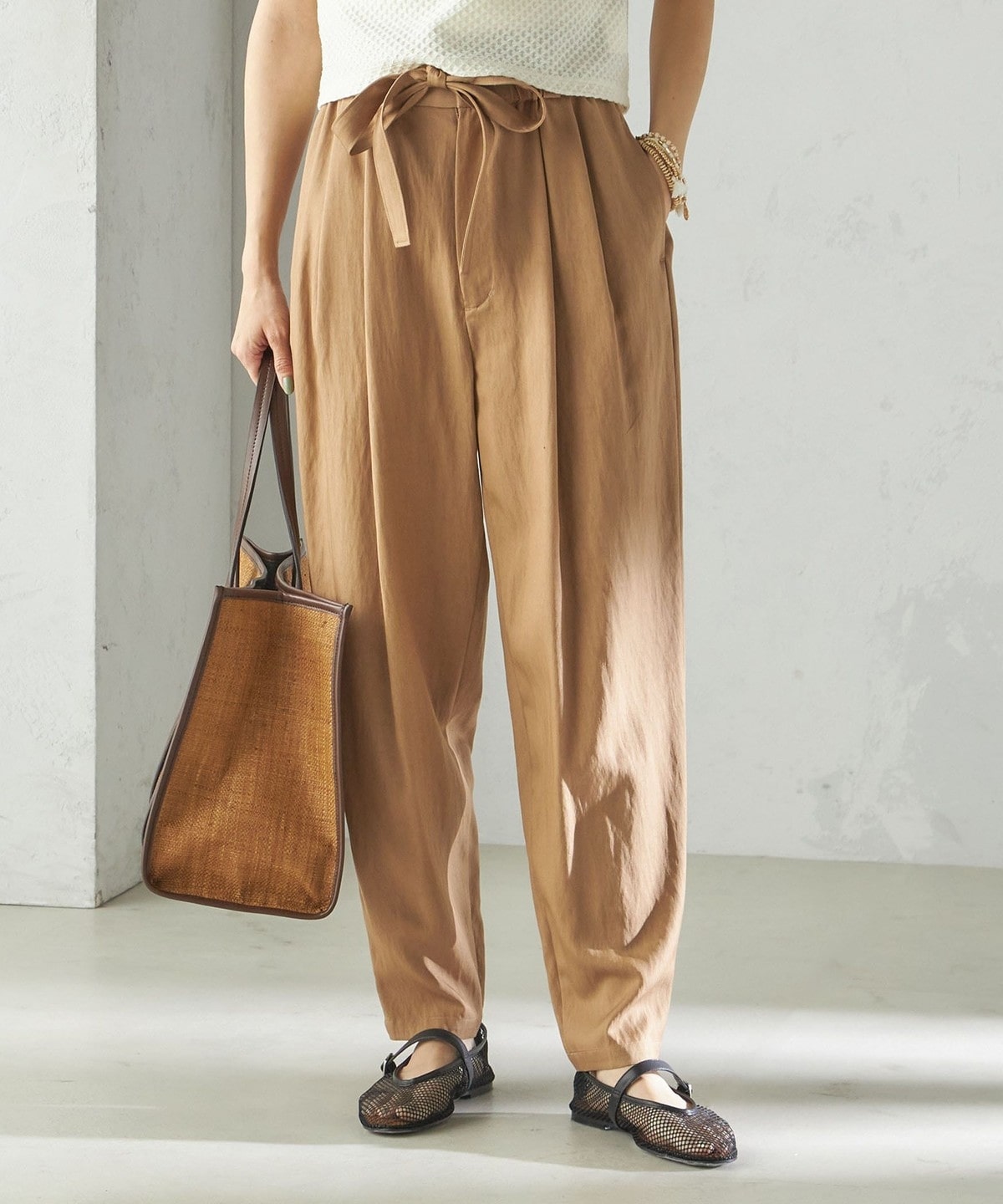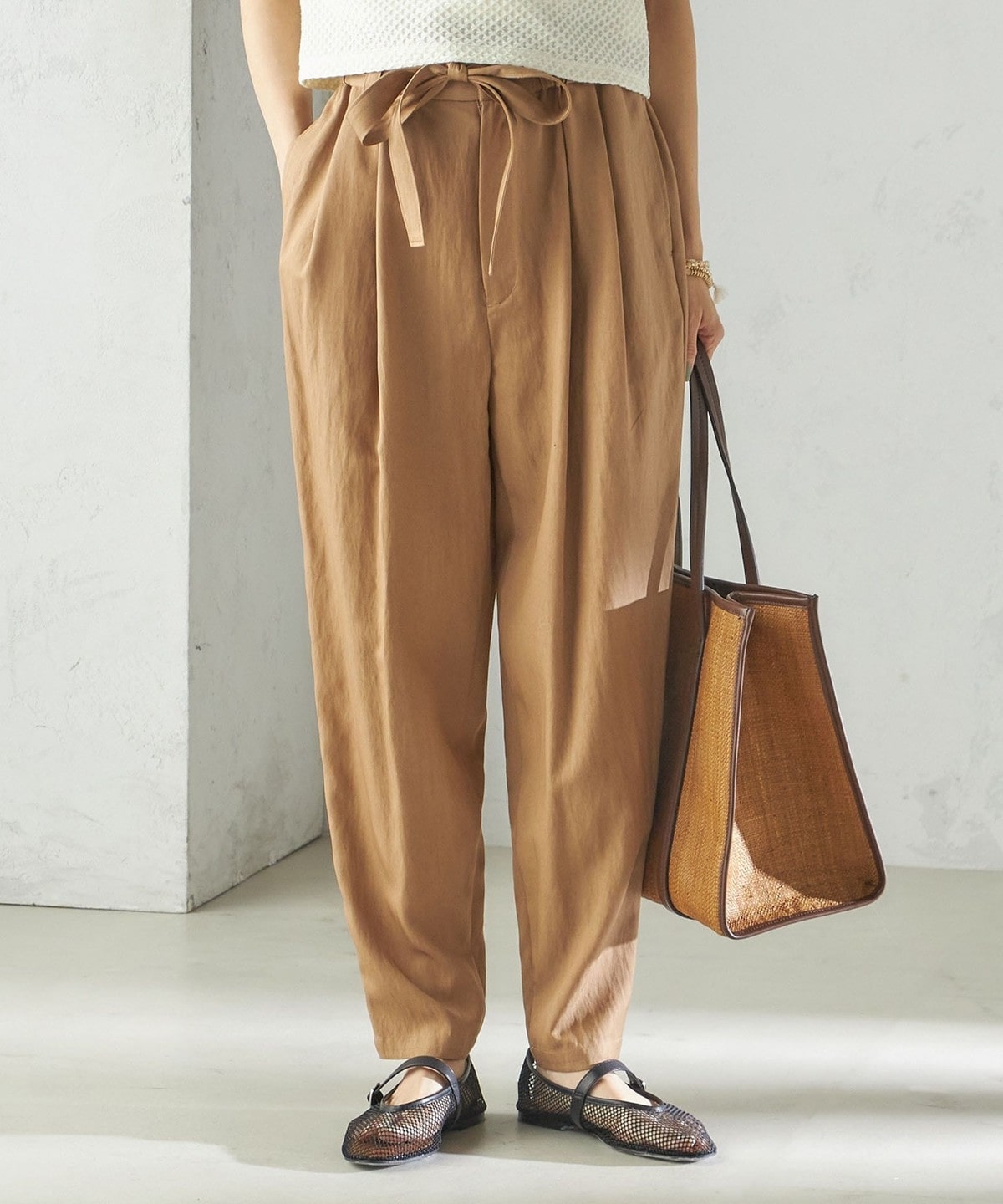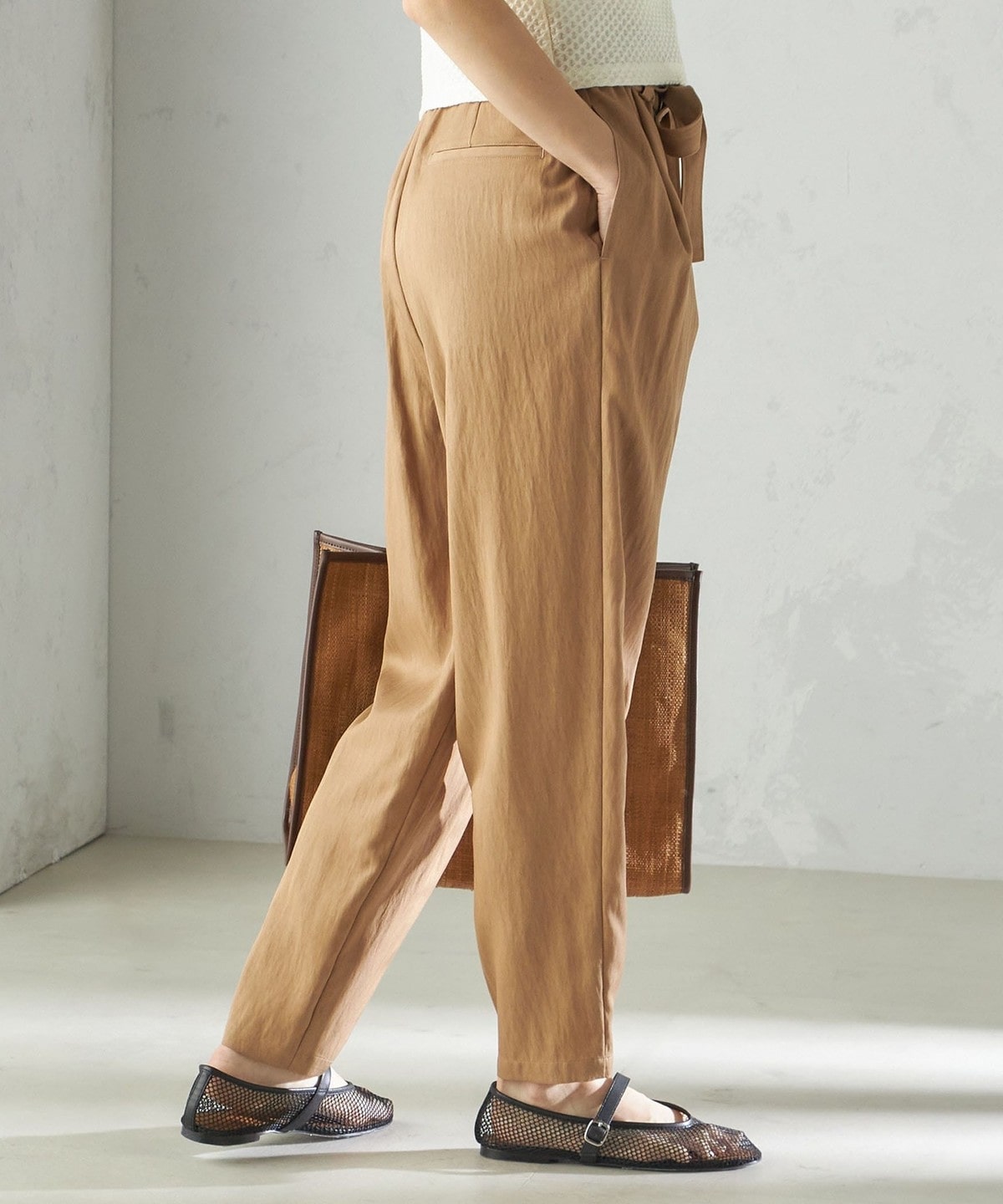 小泉里子コラボ:〈手洗い可能〉ツイル ウエスト テーパード パンツ
