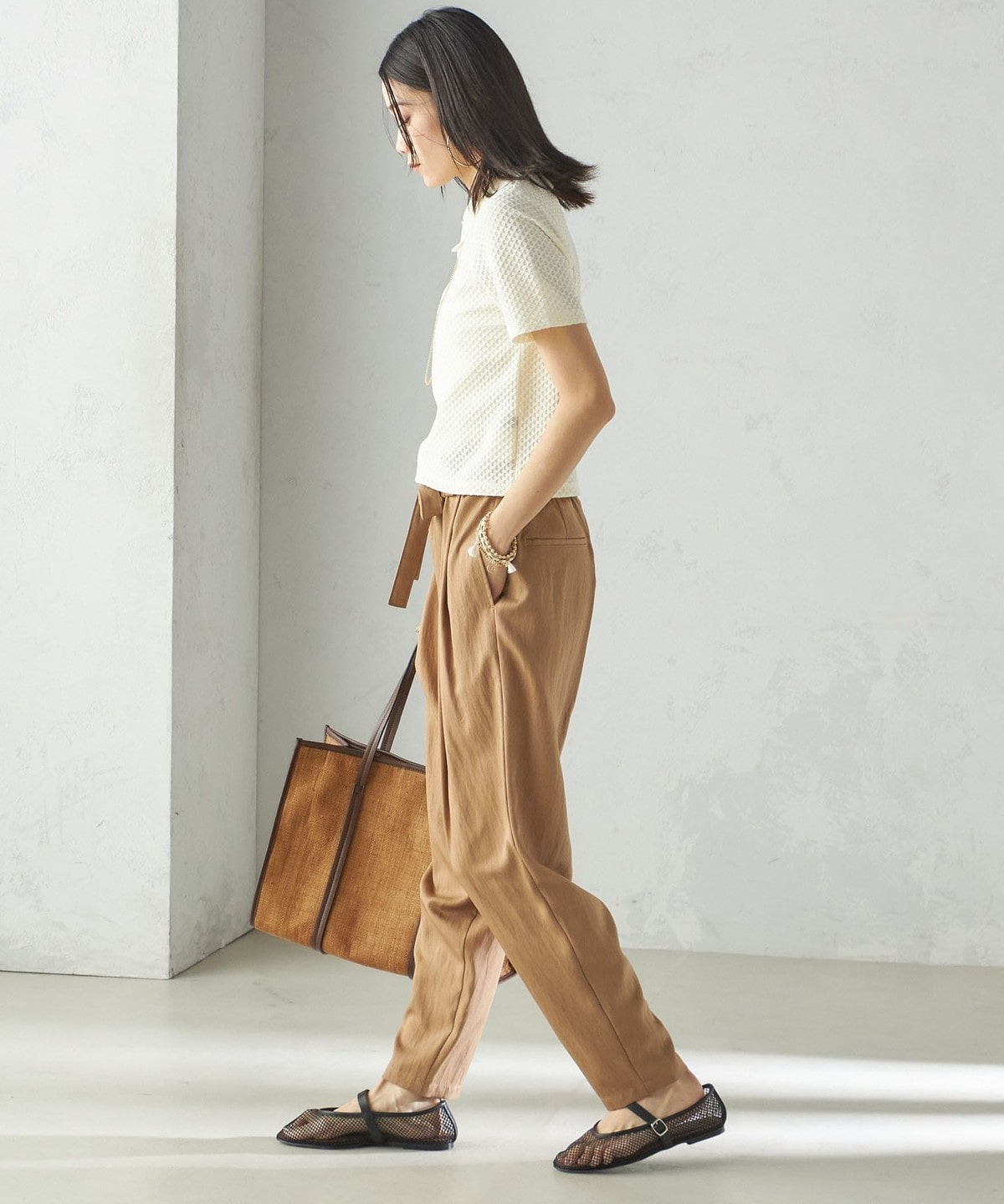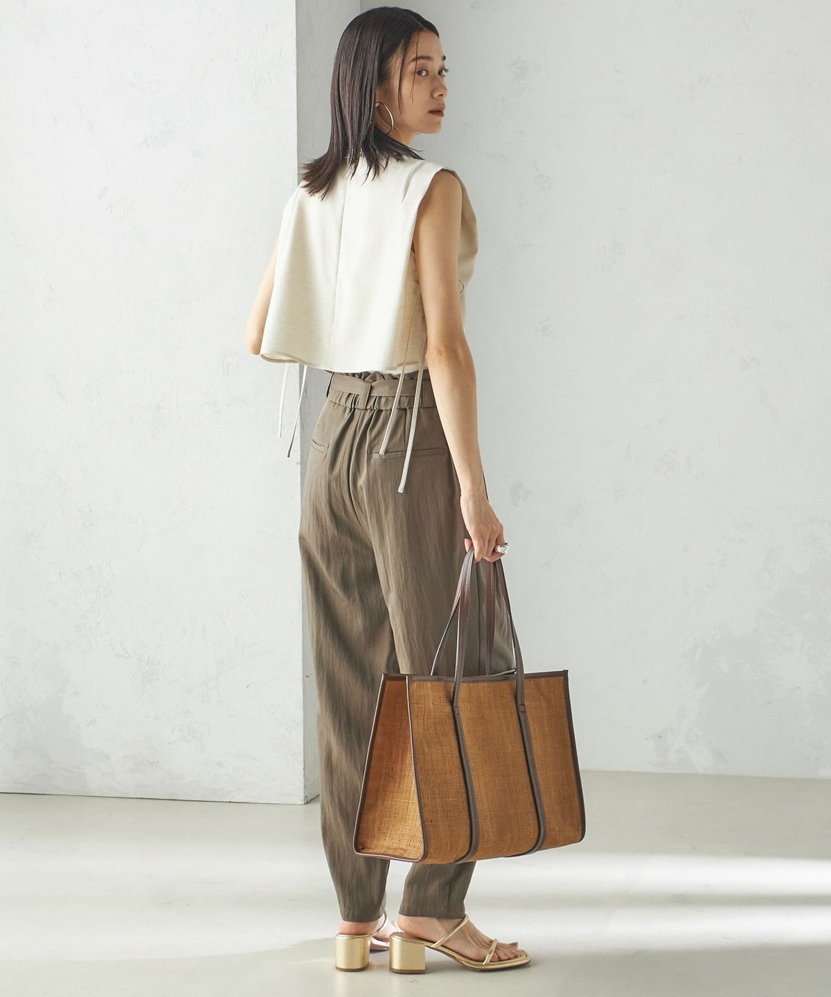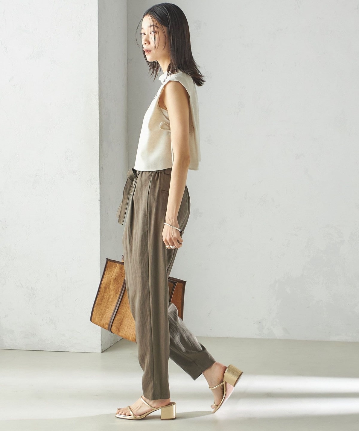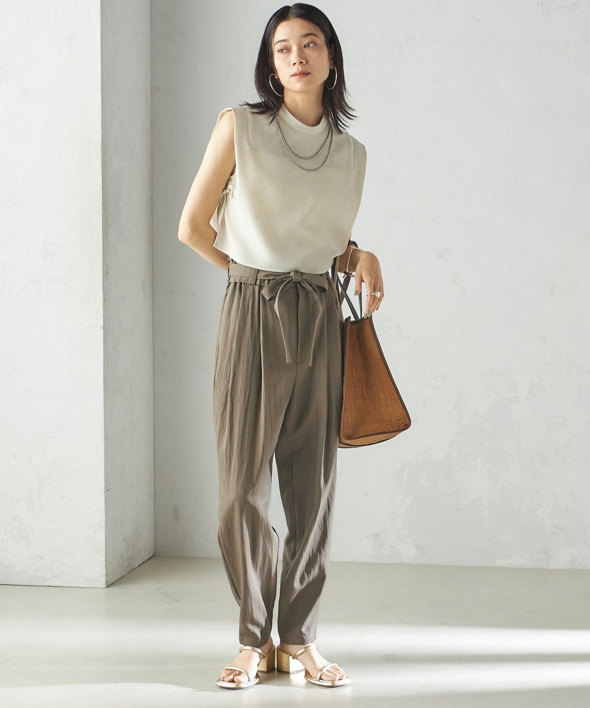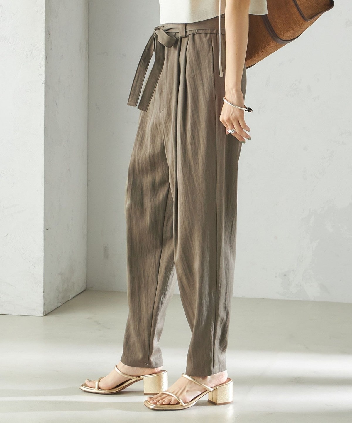 小泉里子コラボ:〈手洗い可能〉ツイル ウエスト テーパード パンツ