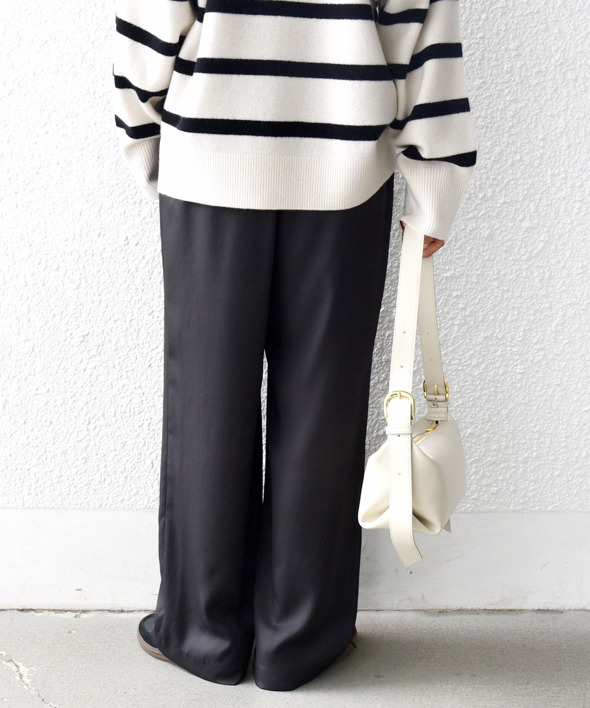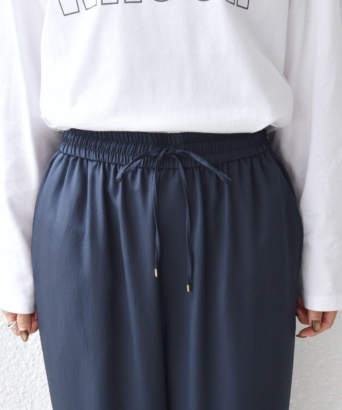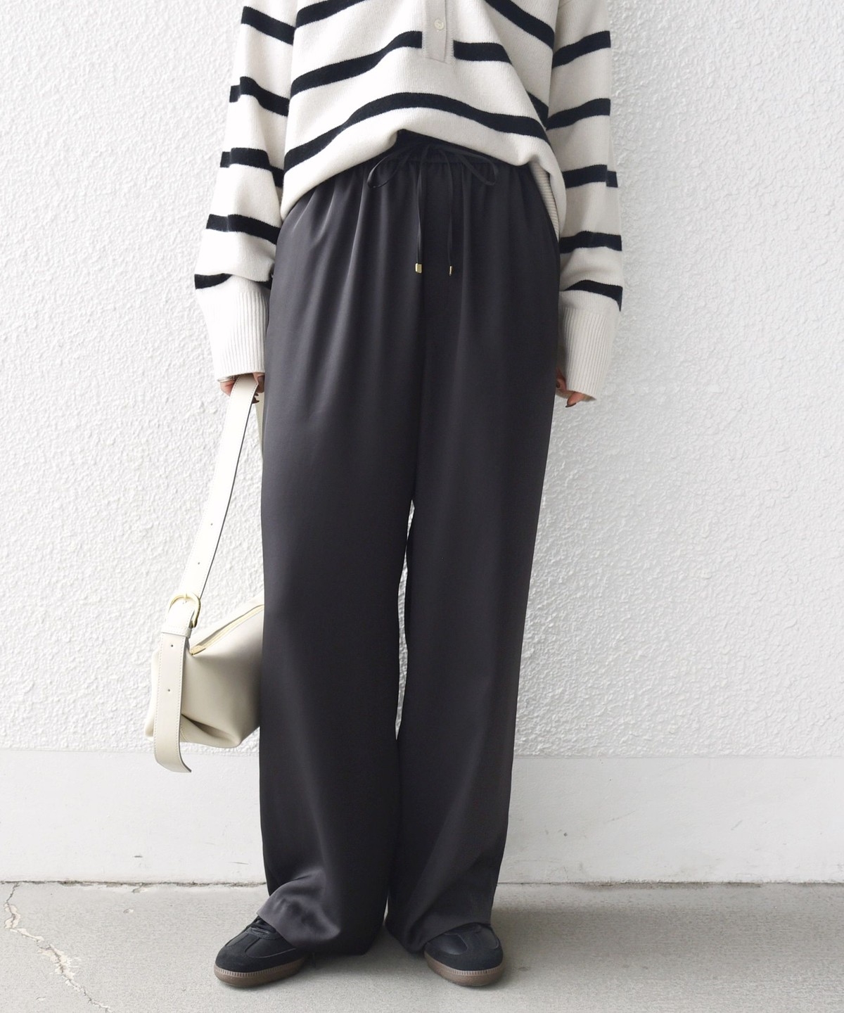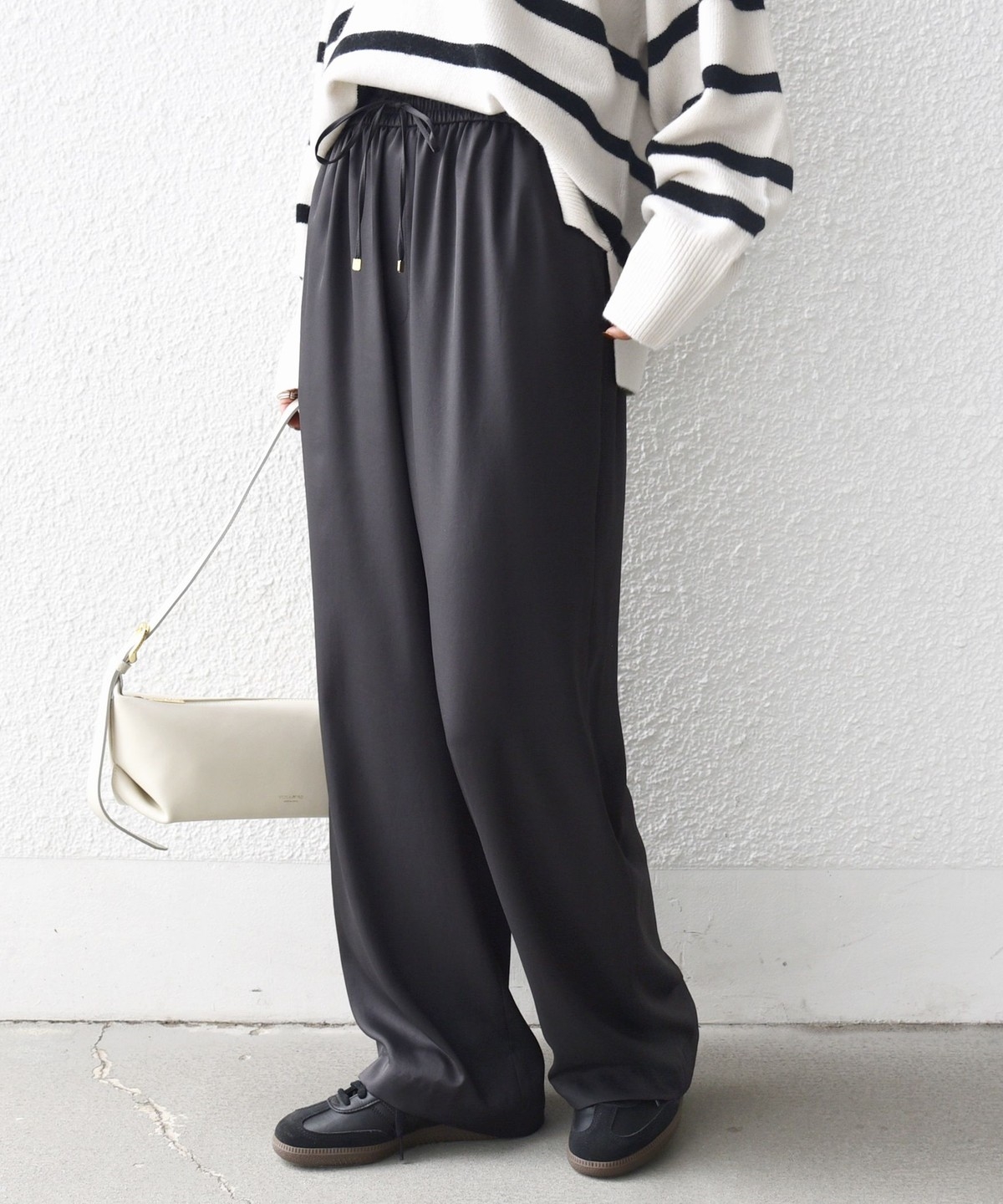 ストレッチの効いたサテン地が程よい光沢感と落ち感を生み、リラックスしながらもキレイ見えする1本です。