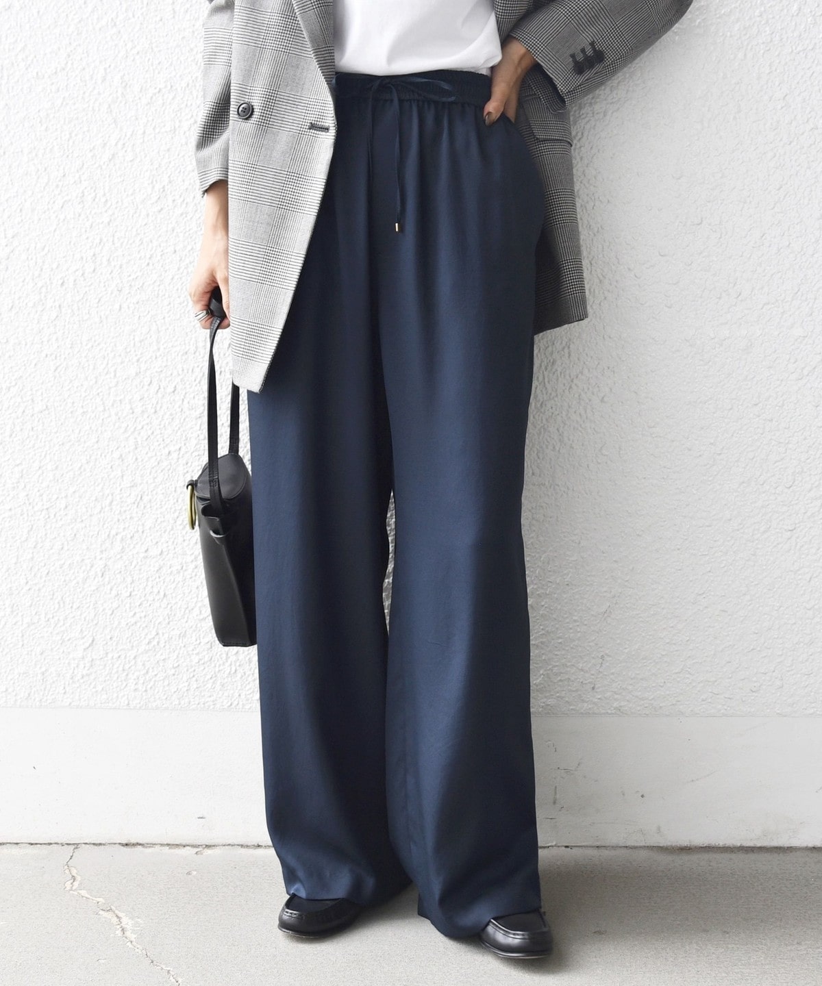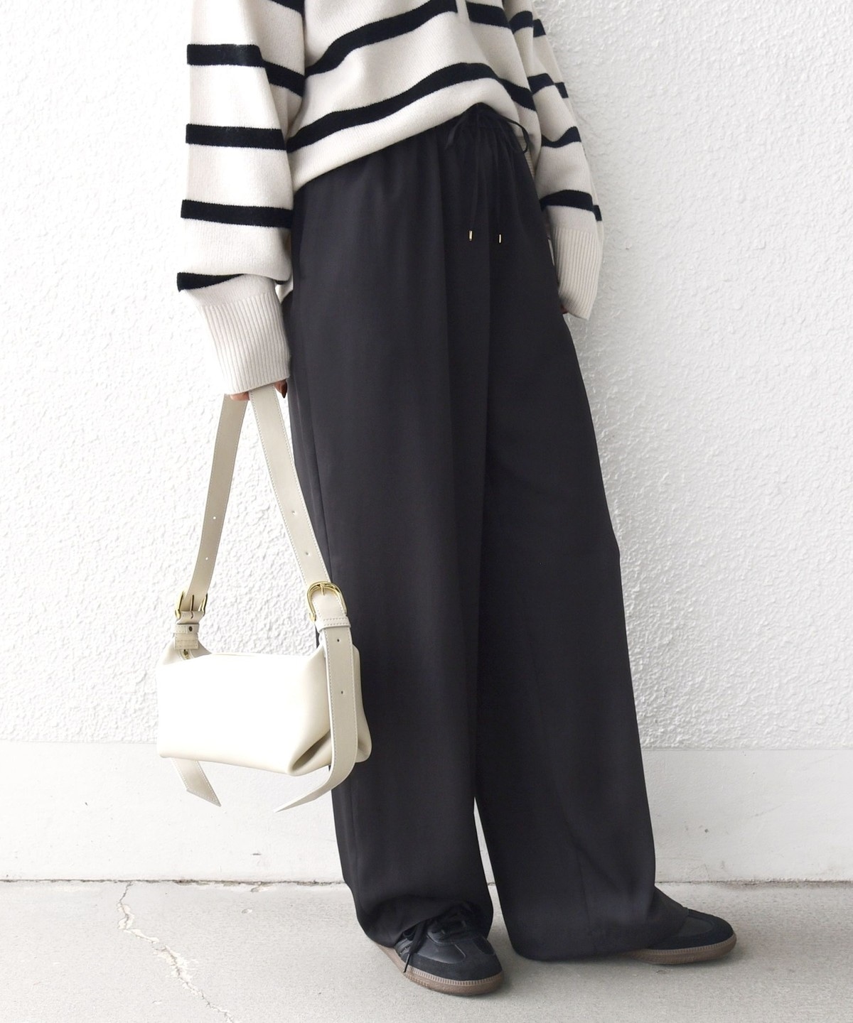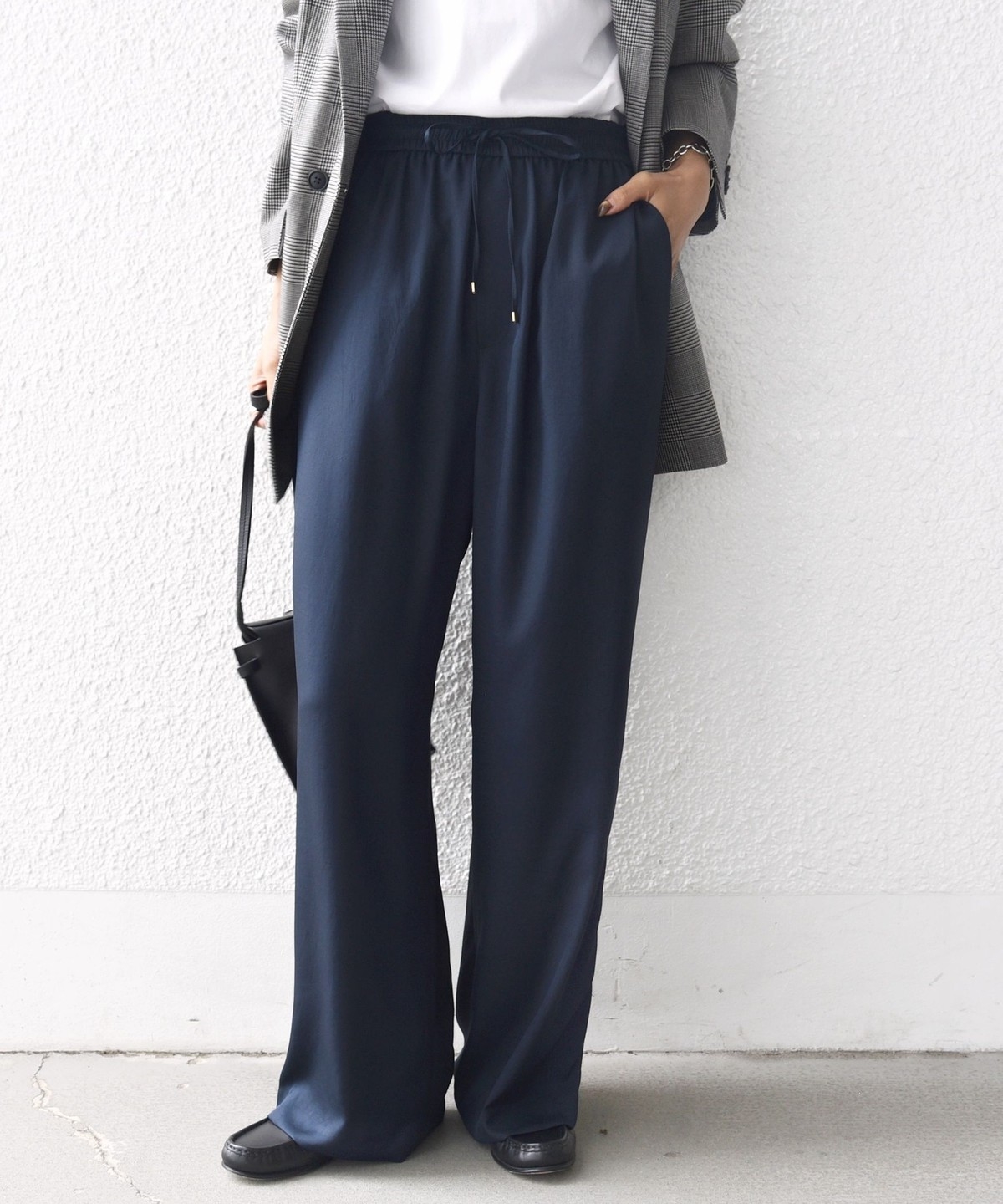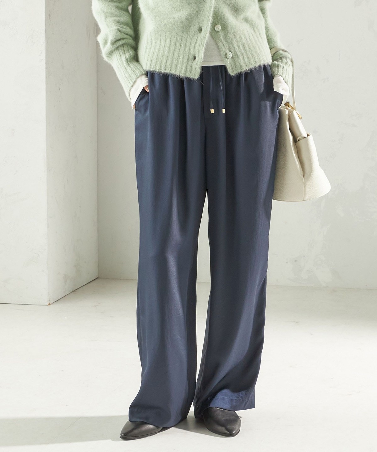 ストレッチの効いたサテン地が程よい光沢感と落ち感を生み、リラックスしながらもキレイ見えする1本です。