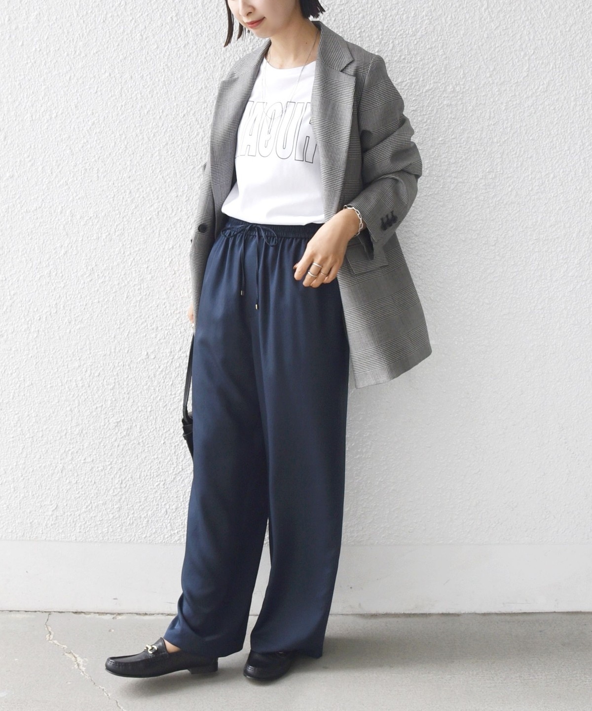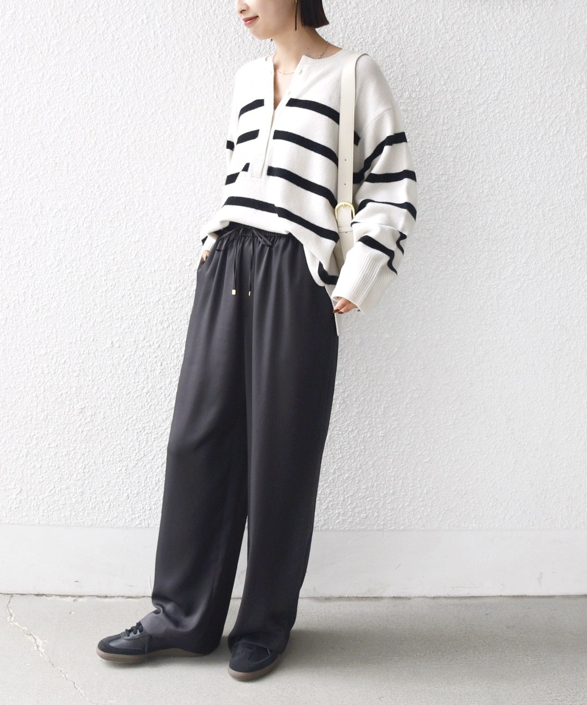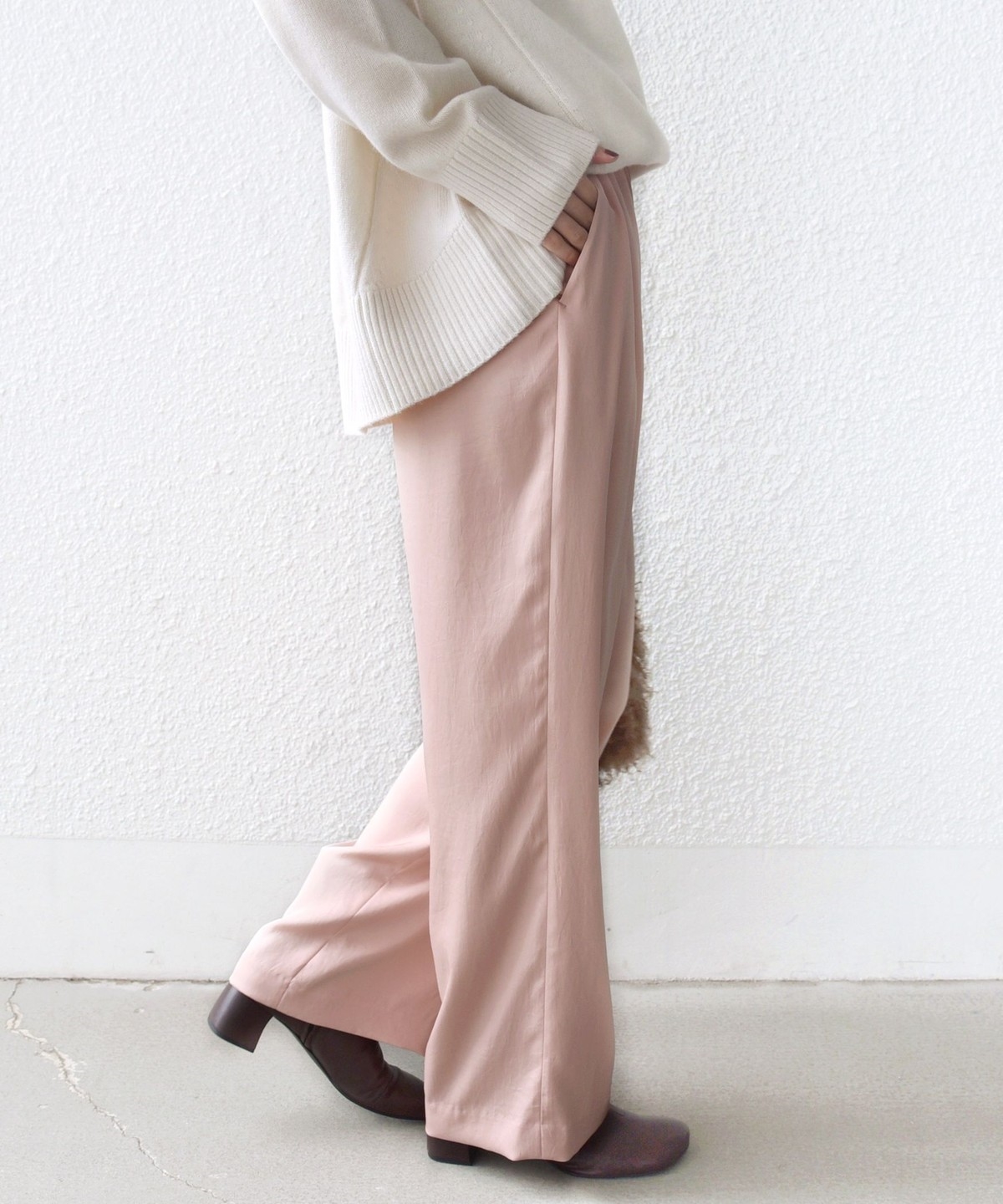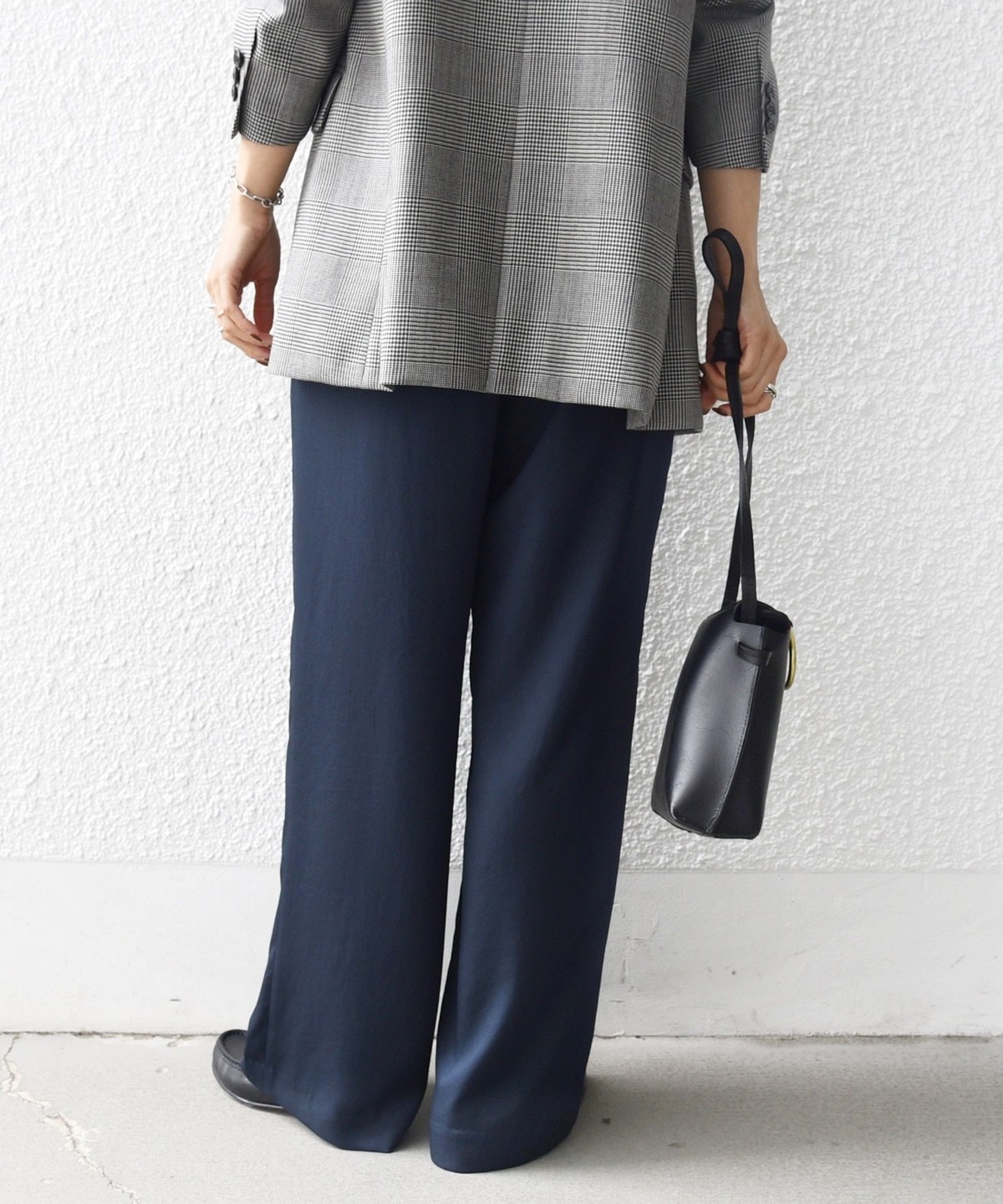 ストレッチの効いたサテン地が程よい光沢感と落ち感を生み、リラックスしながらもキレイ見えする1本です。