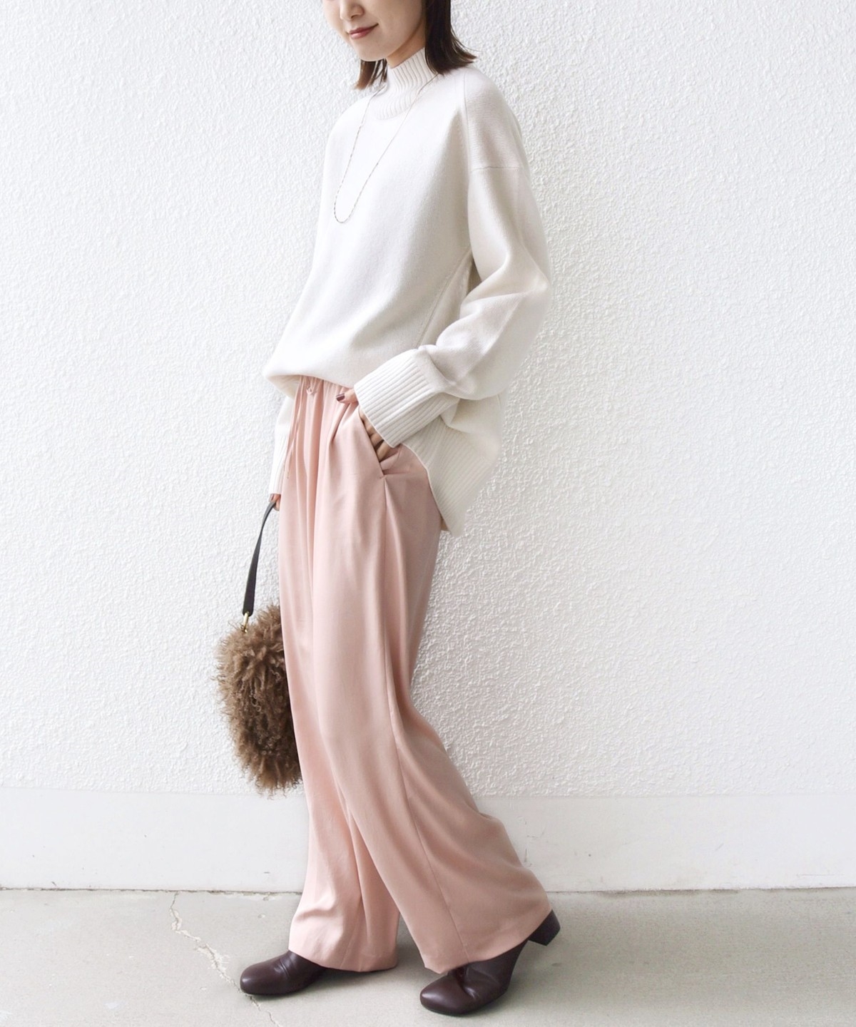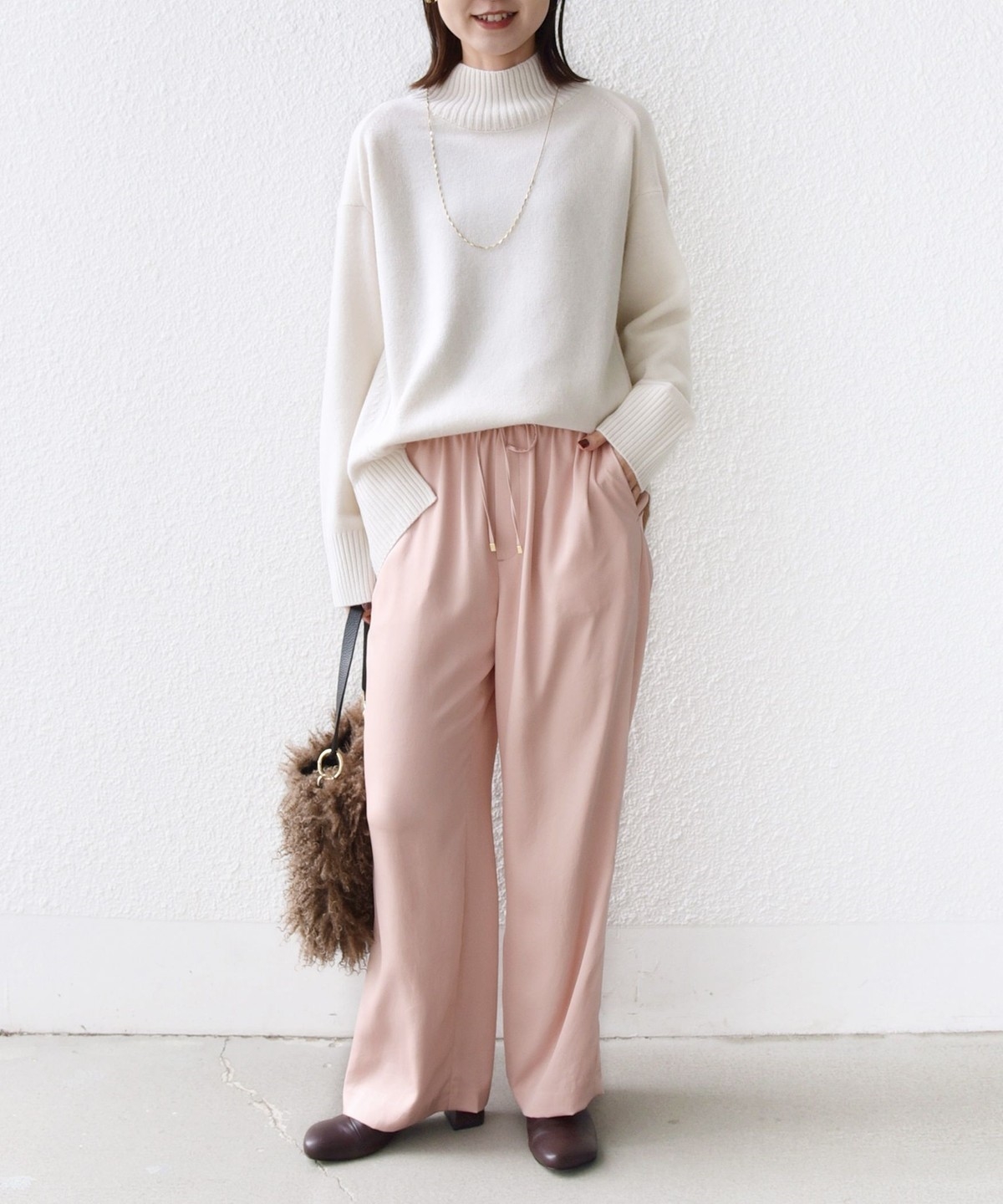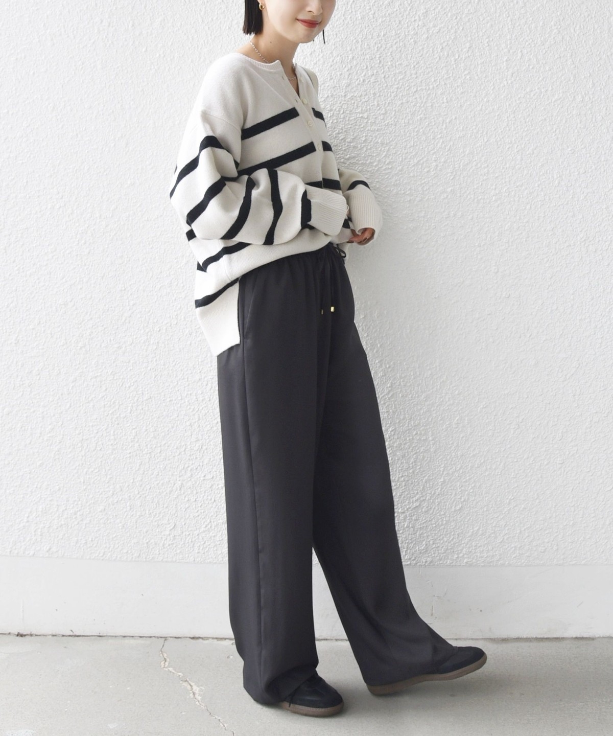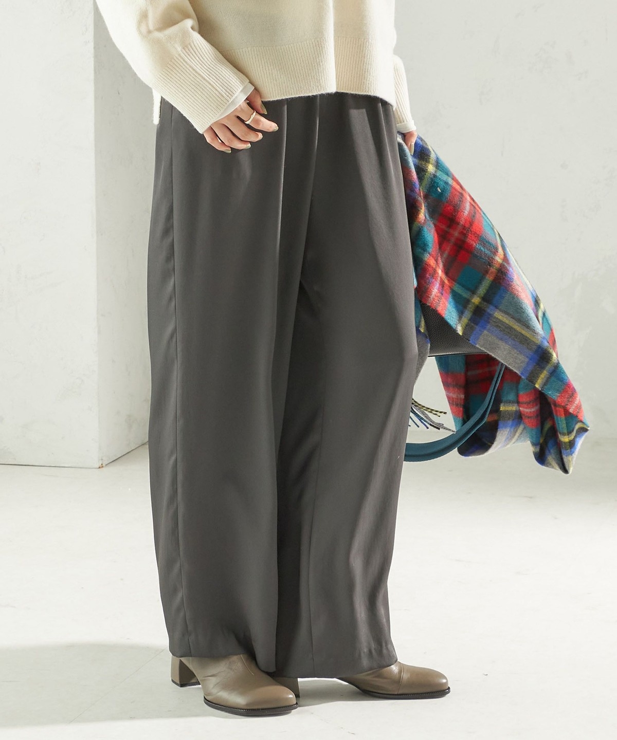 ストレッチの効いたサテン地が程よい光沢感と落ち感を生み、リラックスしながらもキレイ見えする1本です。