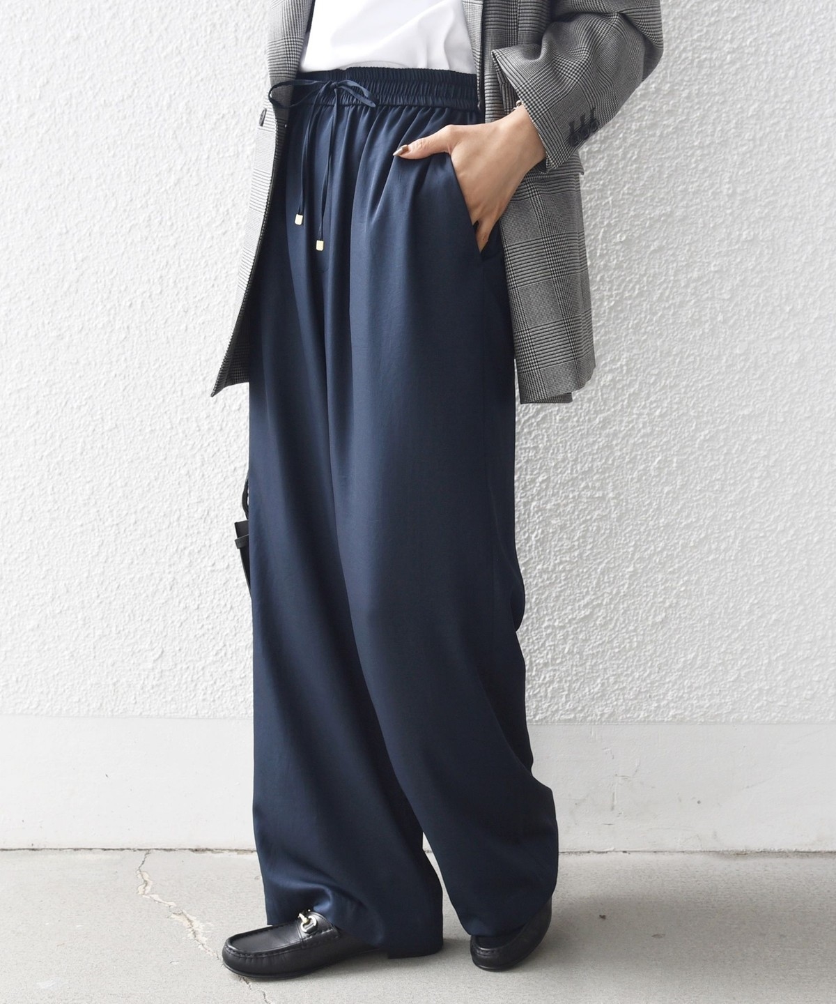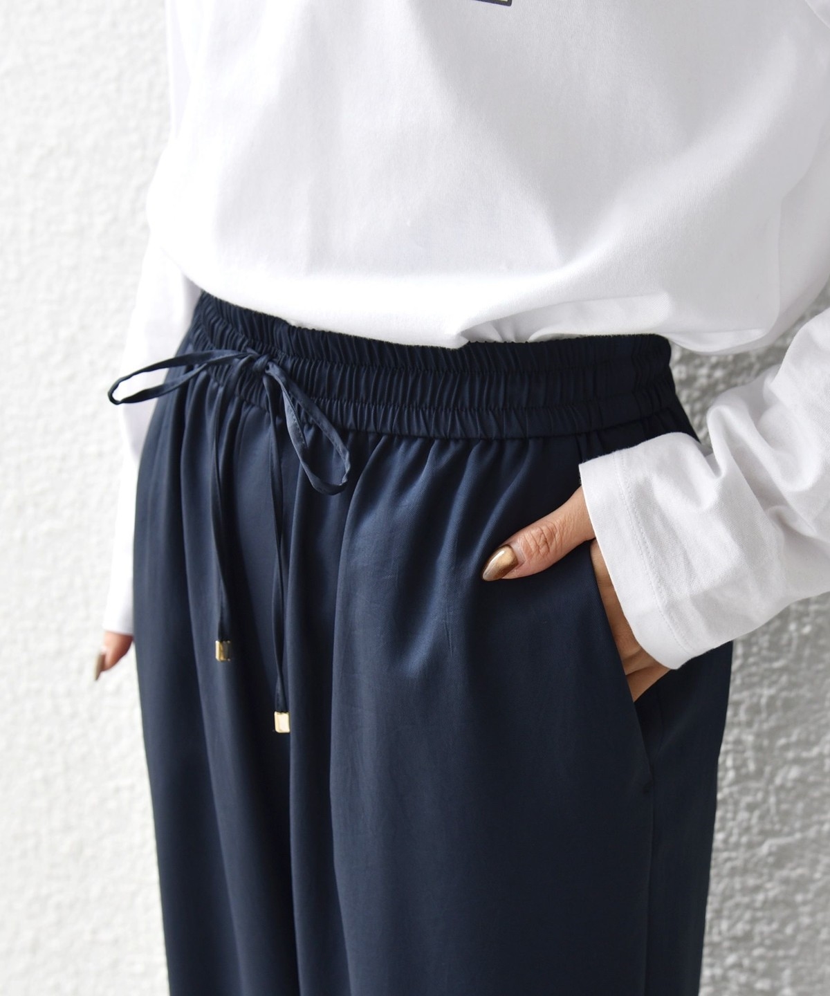 3. 《一部追加予約》〈手洗い可能〉サテン ドロスト パンツ ネイビー