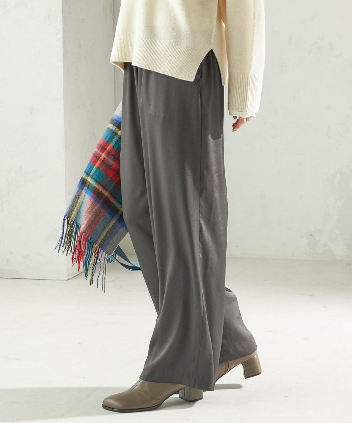 1. 《一部追加予約》〈手洗い可能〉サテン ドロスト パンツ ダークグレー