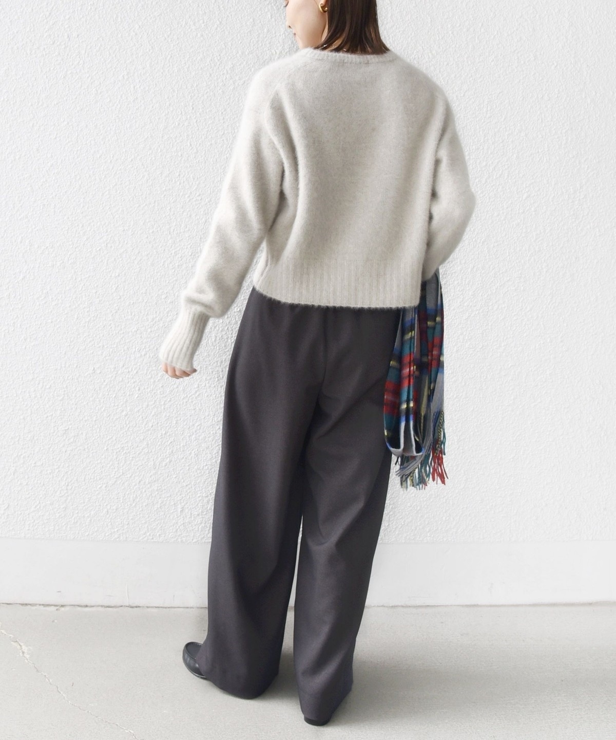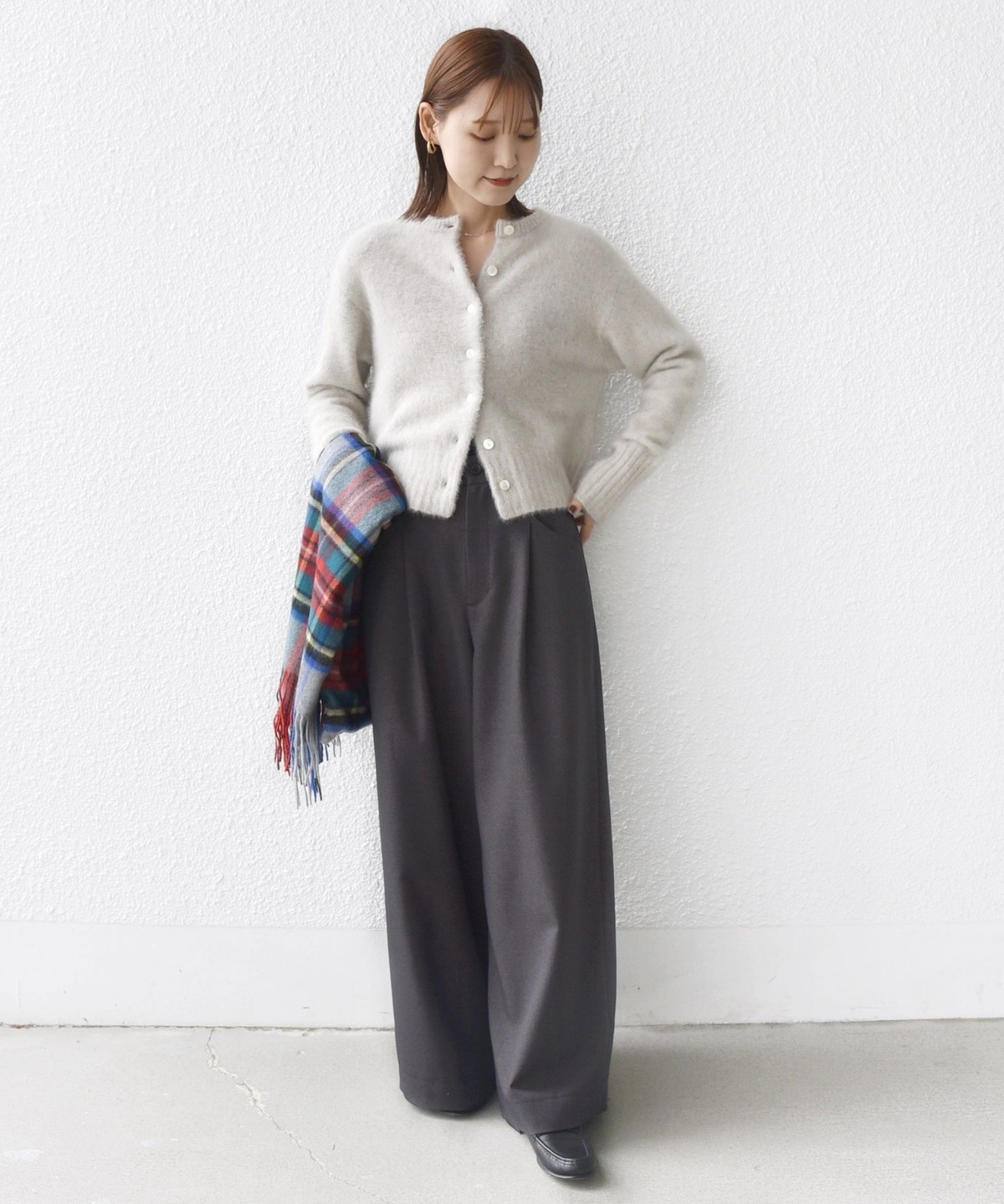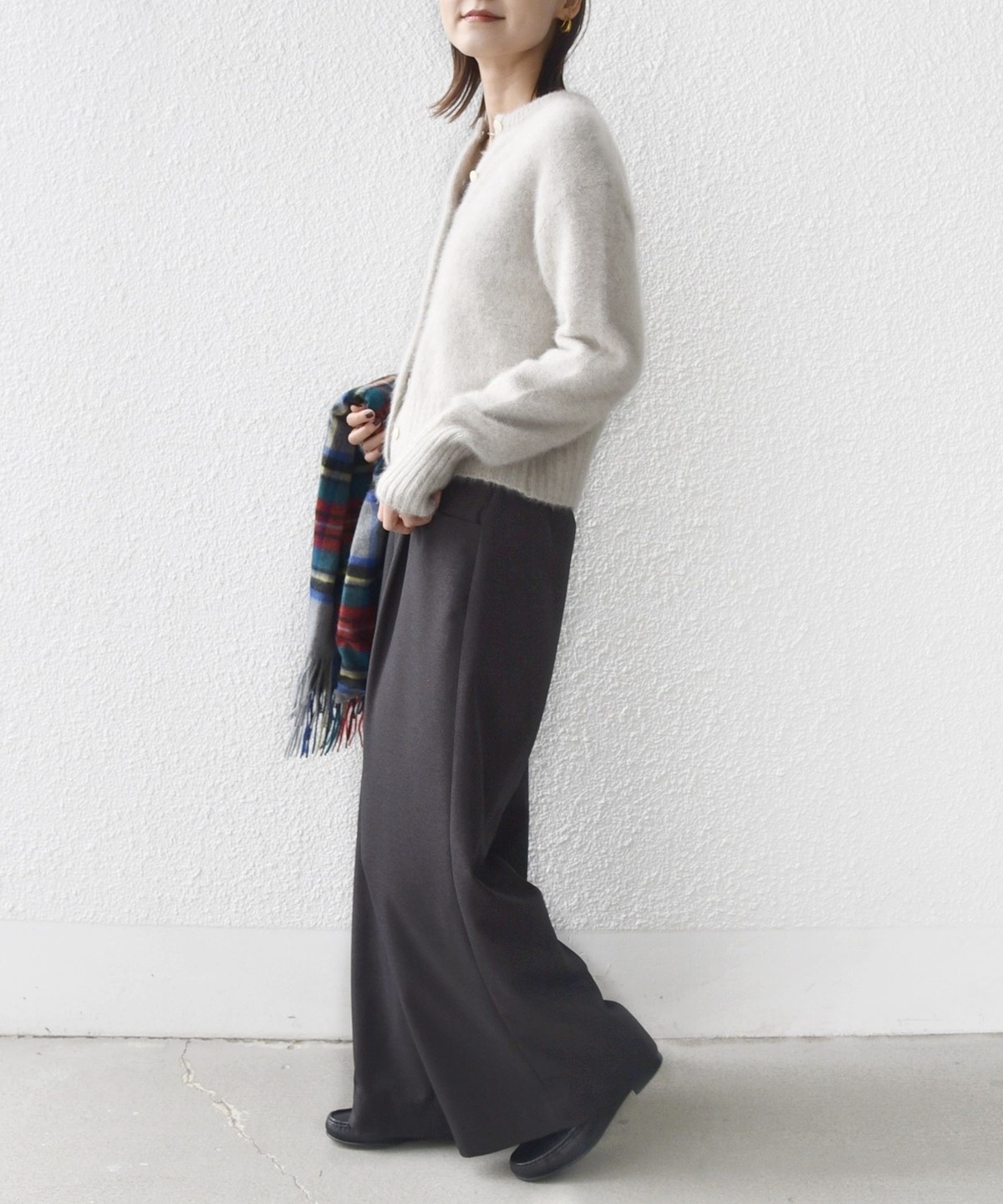 形はワイドですが落ち感のある素材ですので程よいワイド感ですっきりとした印象で着ていただけます。
