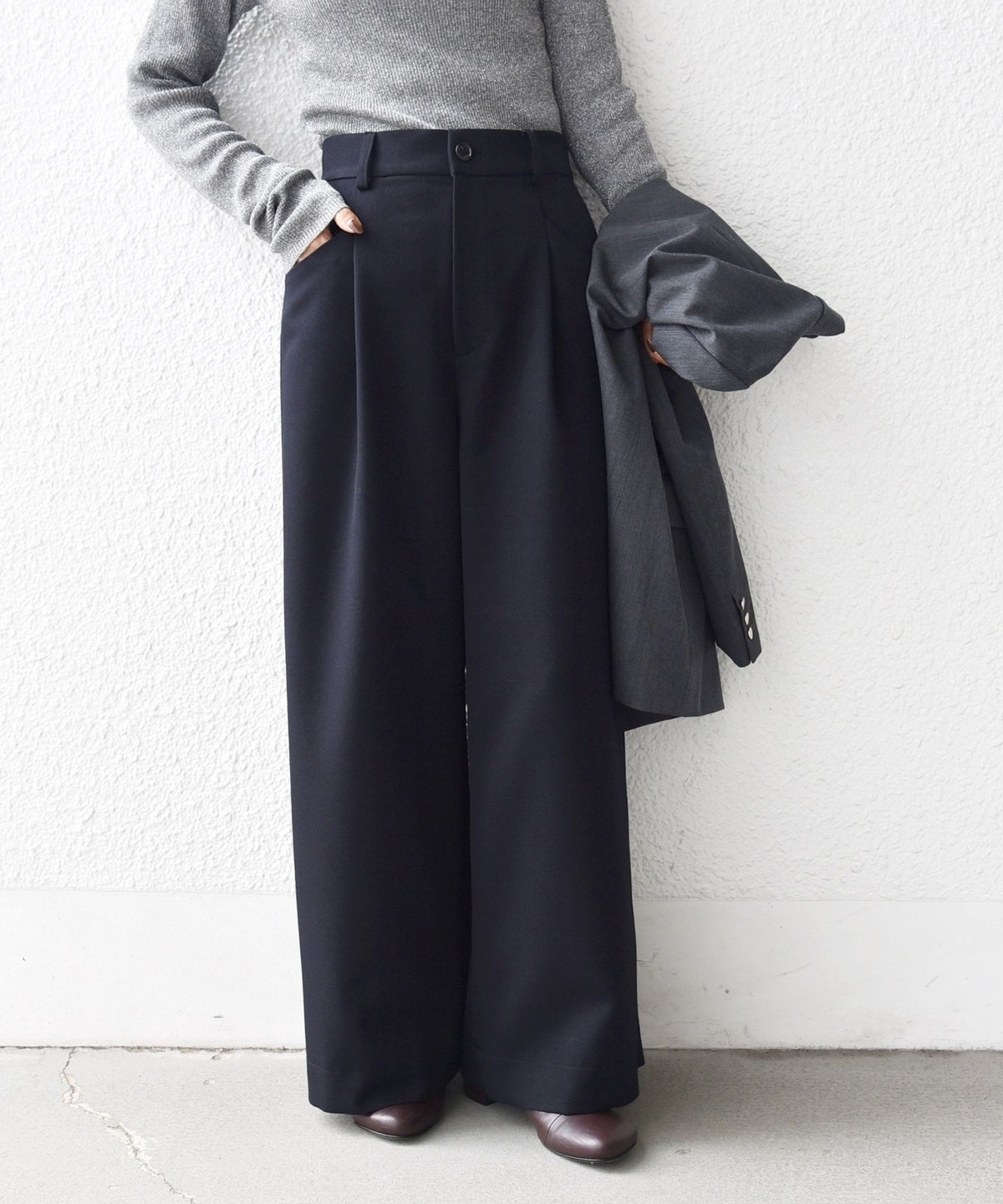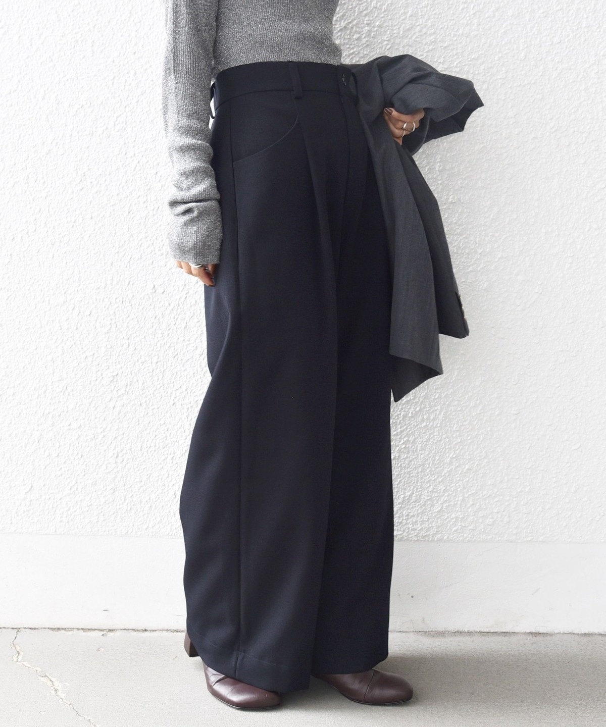 〈洗濯機可能〉ウールライク ポケット デザイン ワイド パンツ