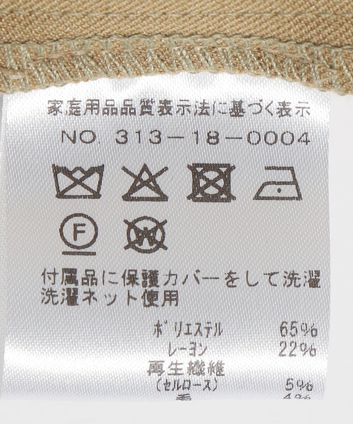 素材:ポリエステル65%、レーヨン22%、再生繊維(セルロース)5%、毛4%、ポリウレタン4%