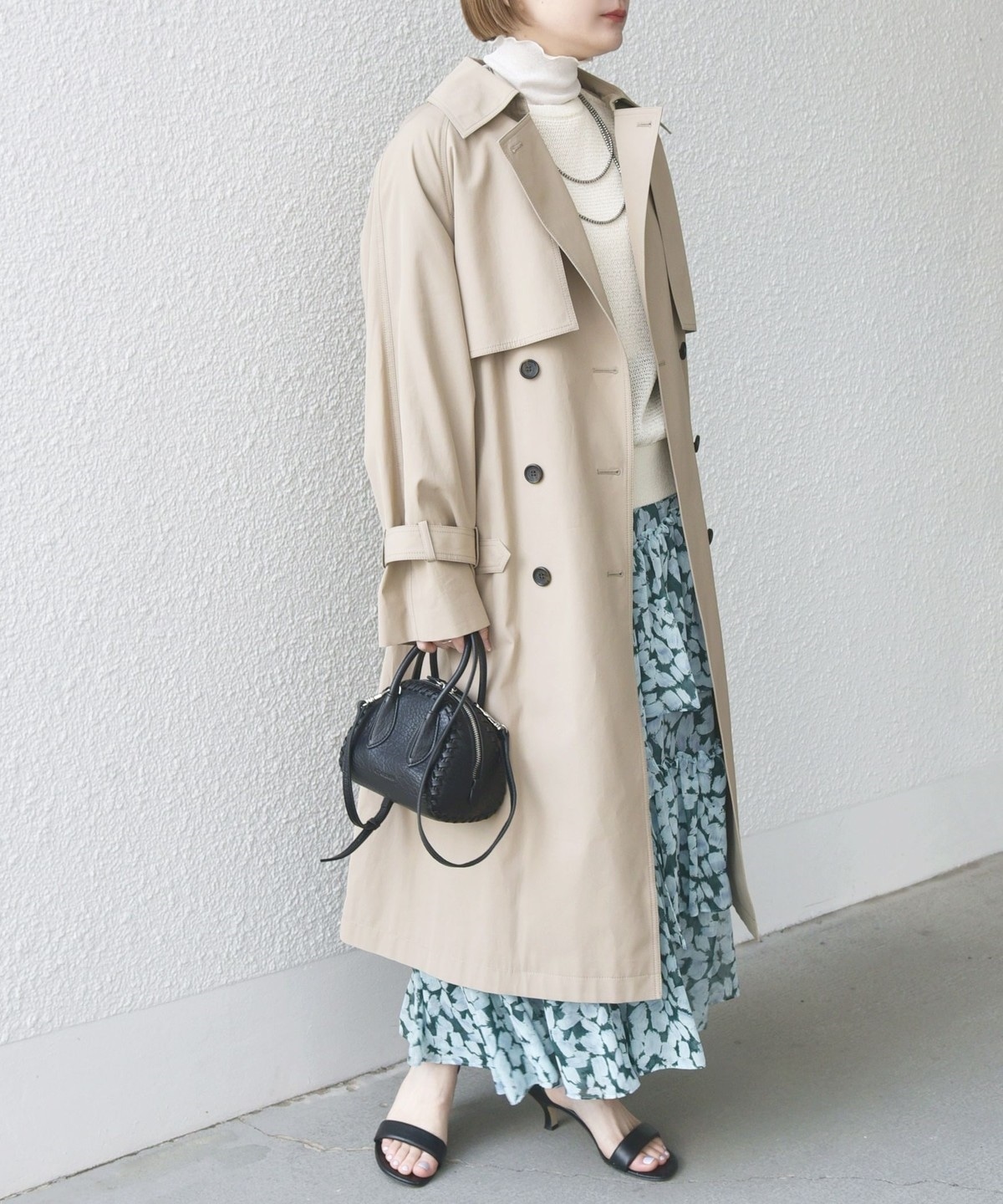 ジャケットやニットでエレガントに、スウェットやカットソーでカジュアルなど、幅広いスタイルに対応できる一着です。