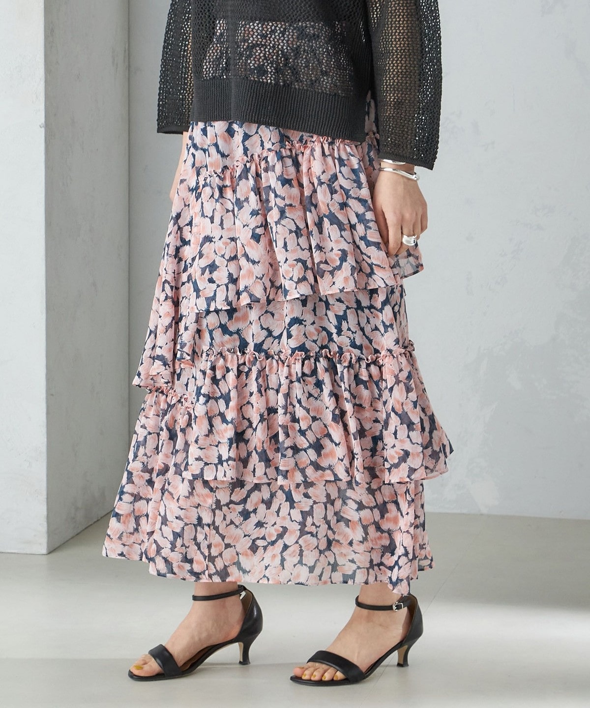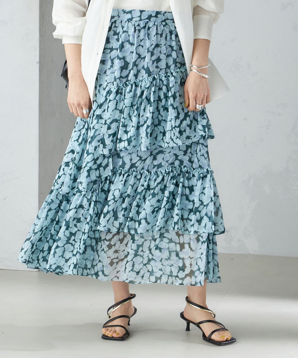 軽やかに揺れるティアードシルエットで、華やかさをプラスしてくれるデザインスカート