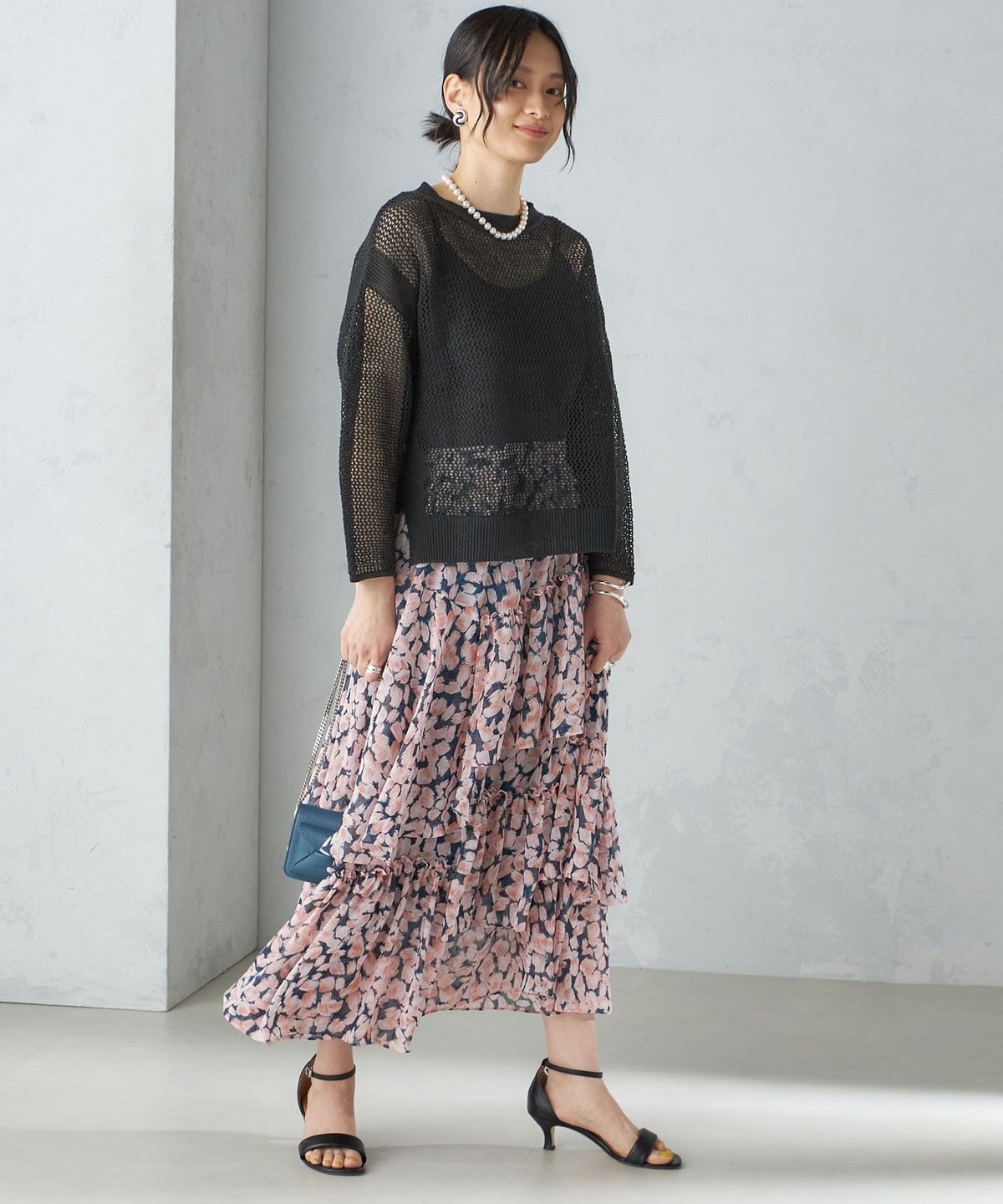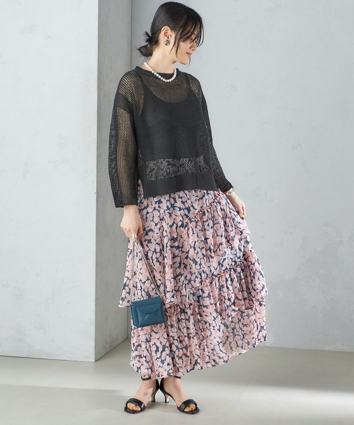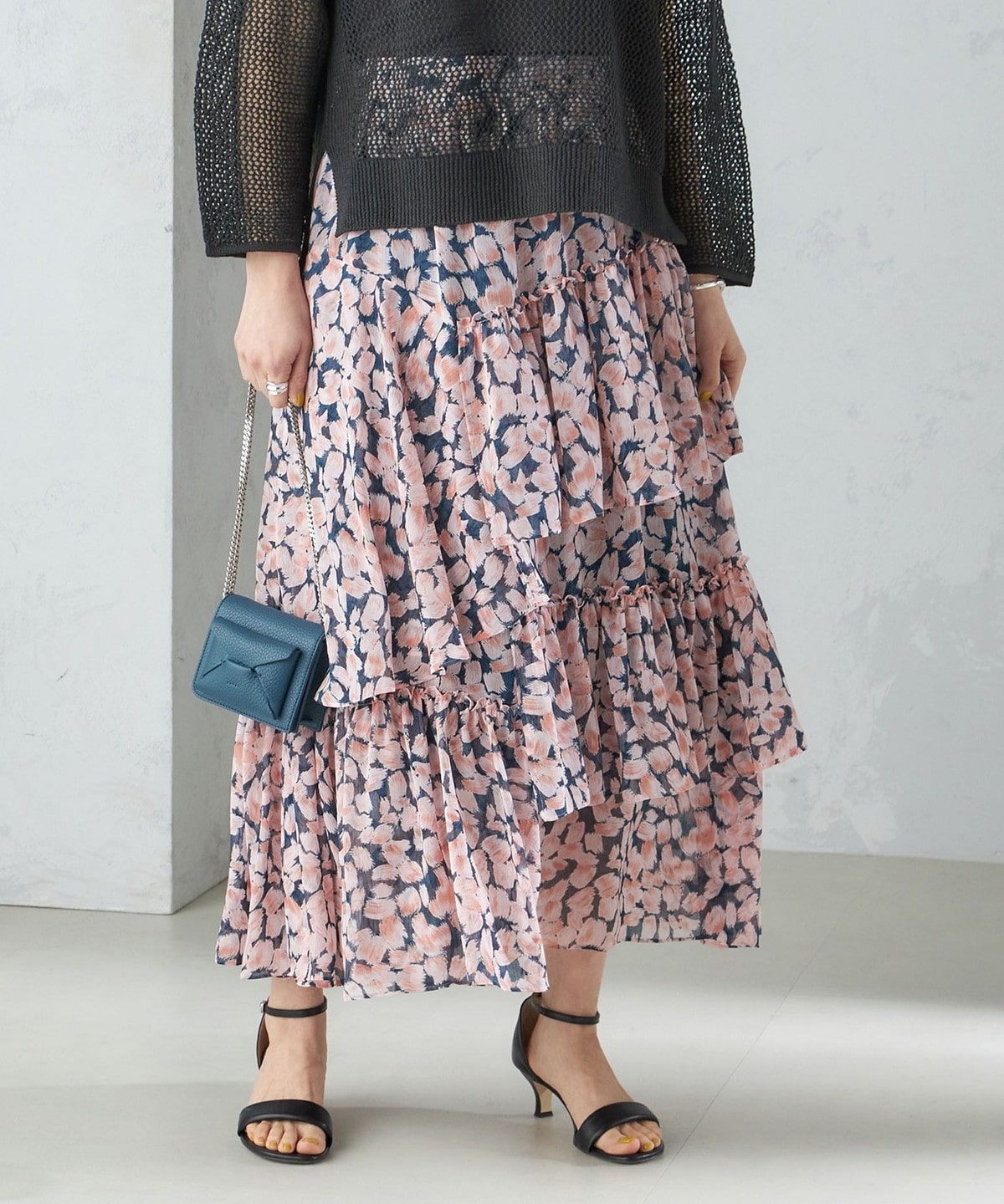 透け感と落ち感のある生地をたっぷりと使用したフラワープリントスカート。