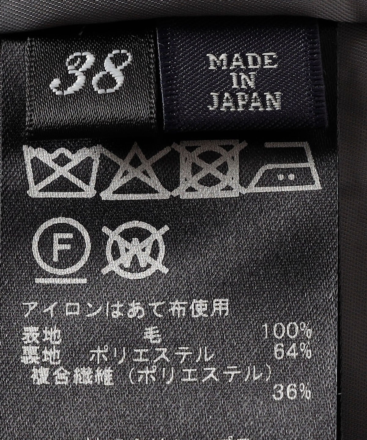 素材:表地(毛100%)裏地(ポリエステル64%、複合繊維(ポリエステル)36%)