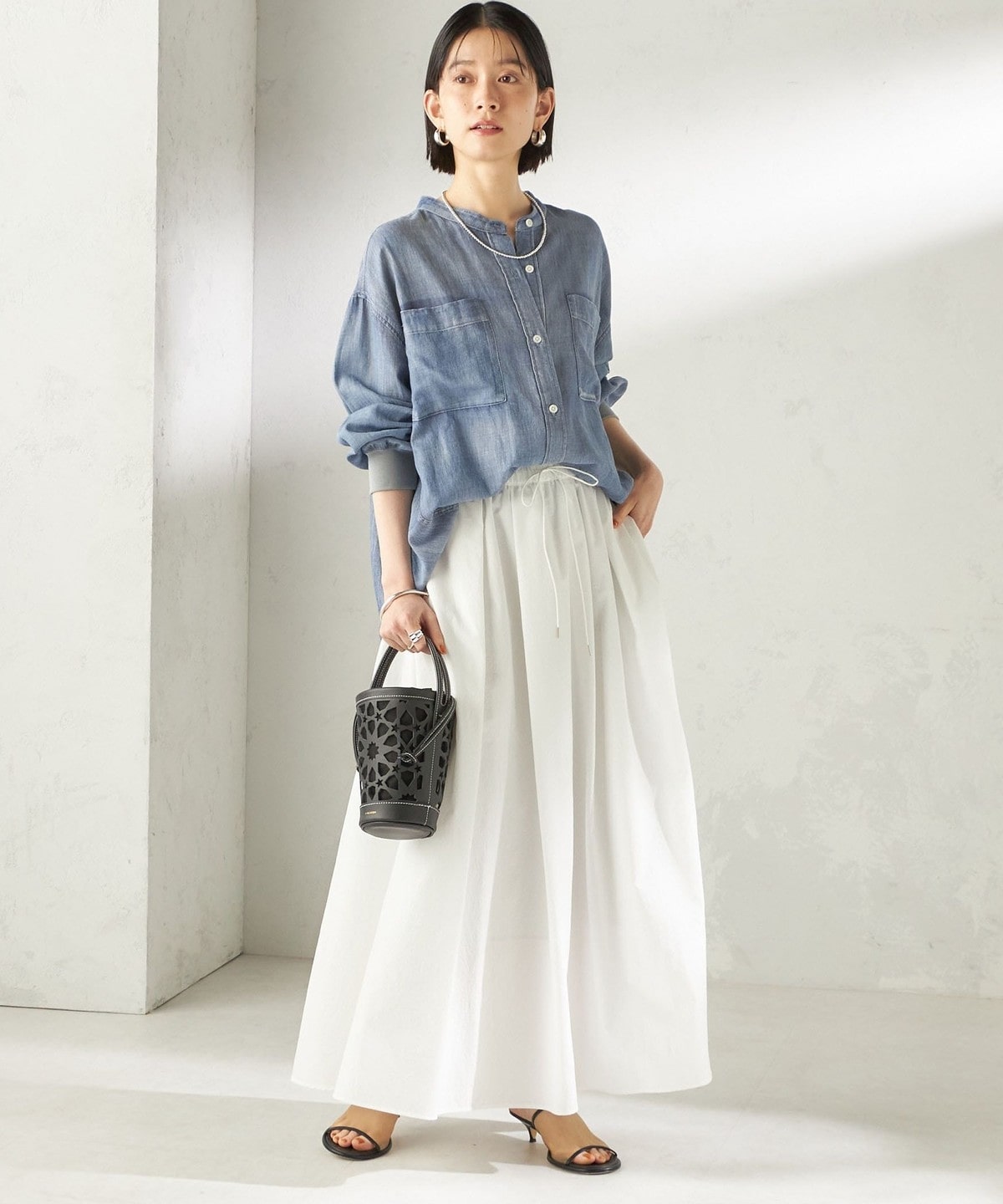 Tシャツやカットソーを合わせたカジュアルスタイルはもちろん、ブラウスやシャツを合わせたきれいめコーデにも◎