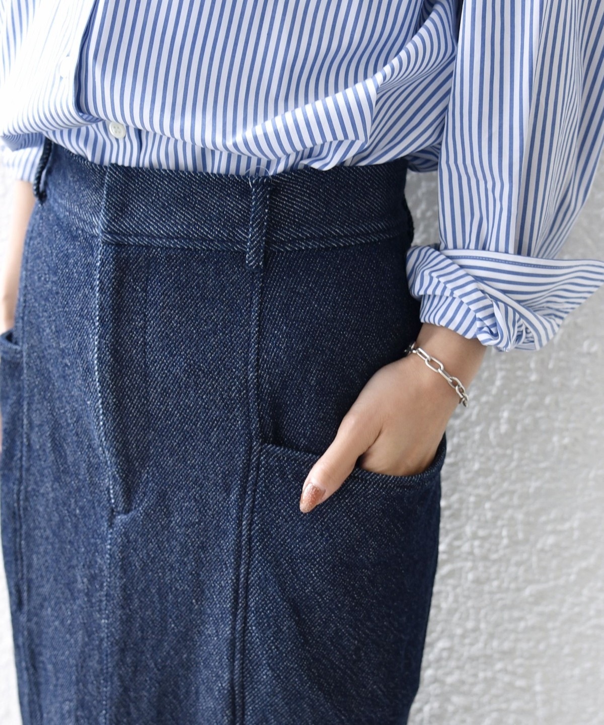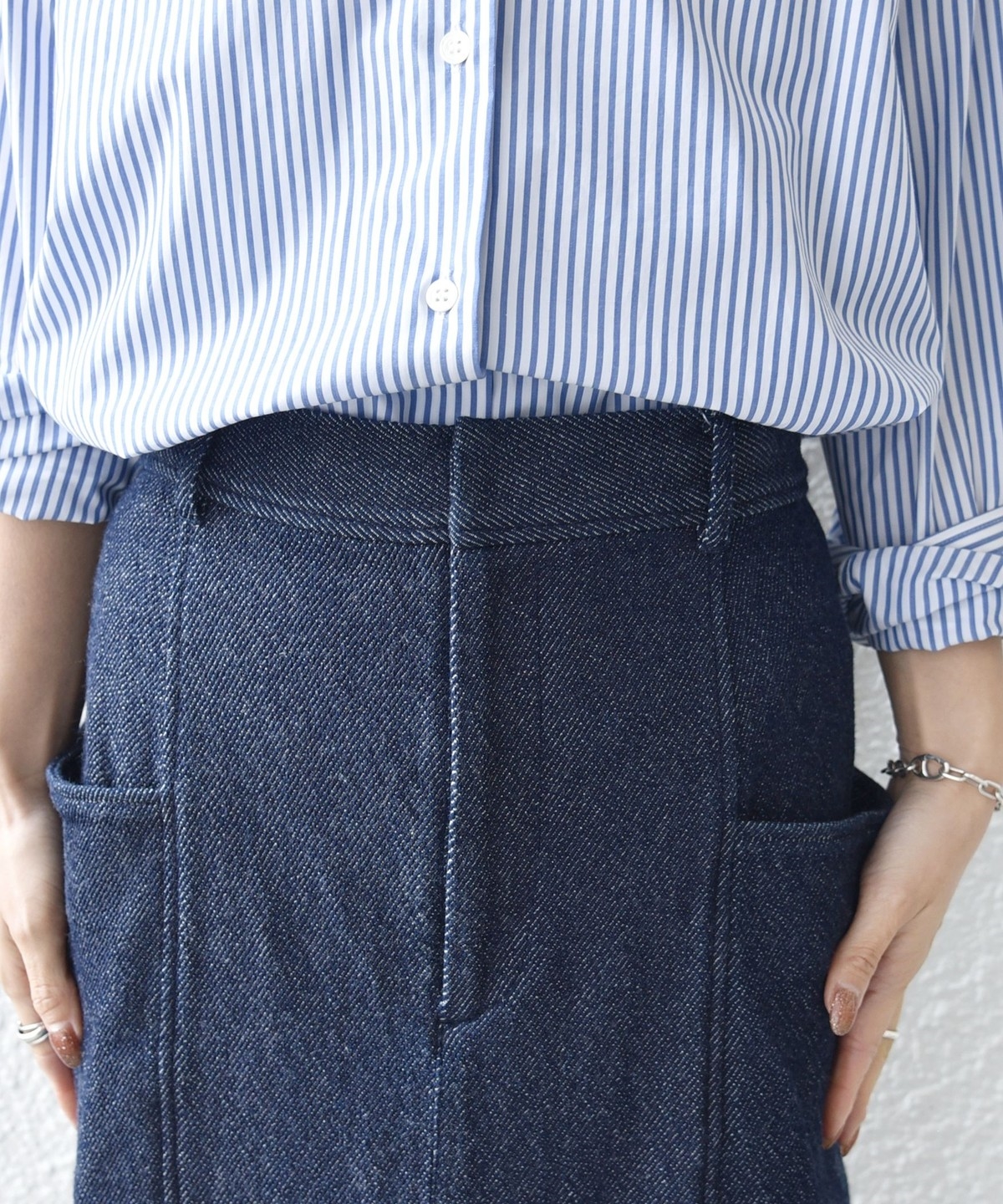 サイドポケットのデザインが可愛いデニムスカート。