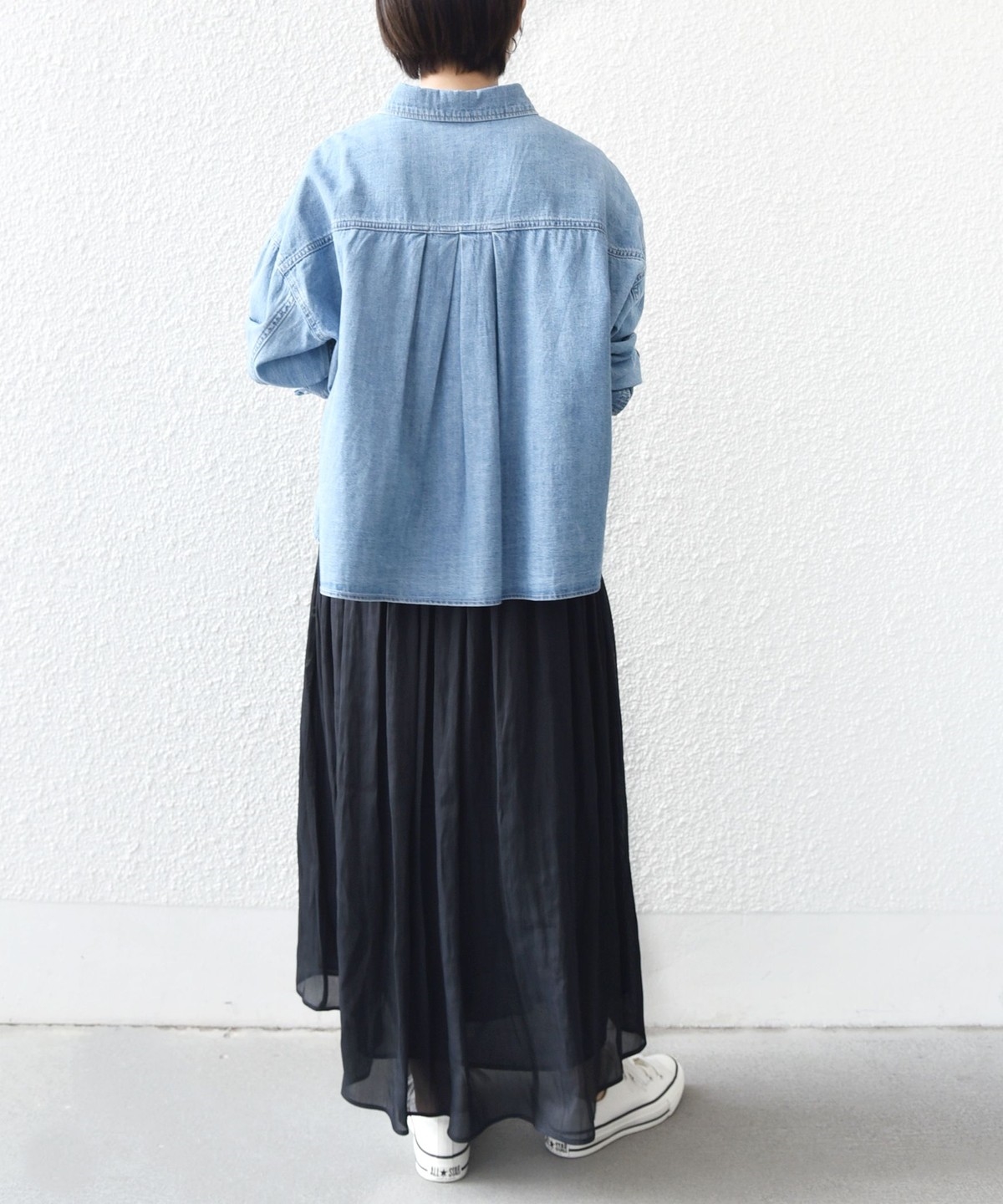 ドレープ性があり、自然な揺れ感と女性らしいシルエットを生み出します。
