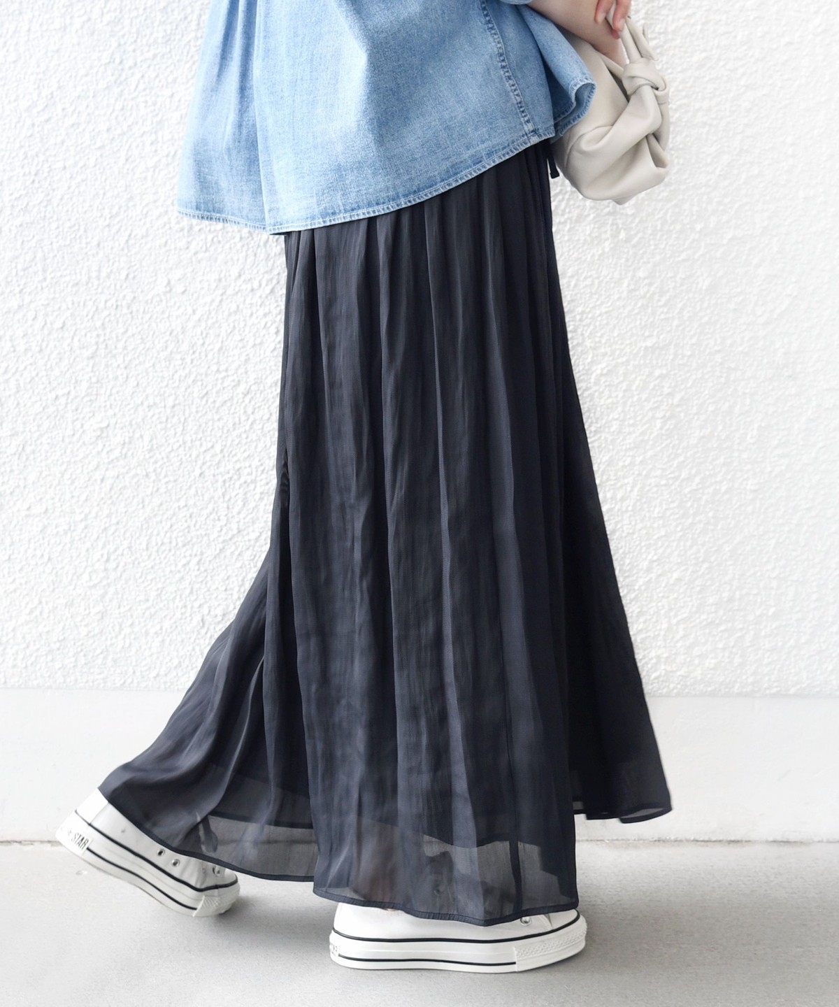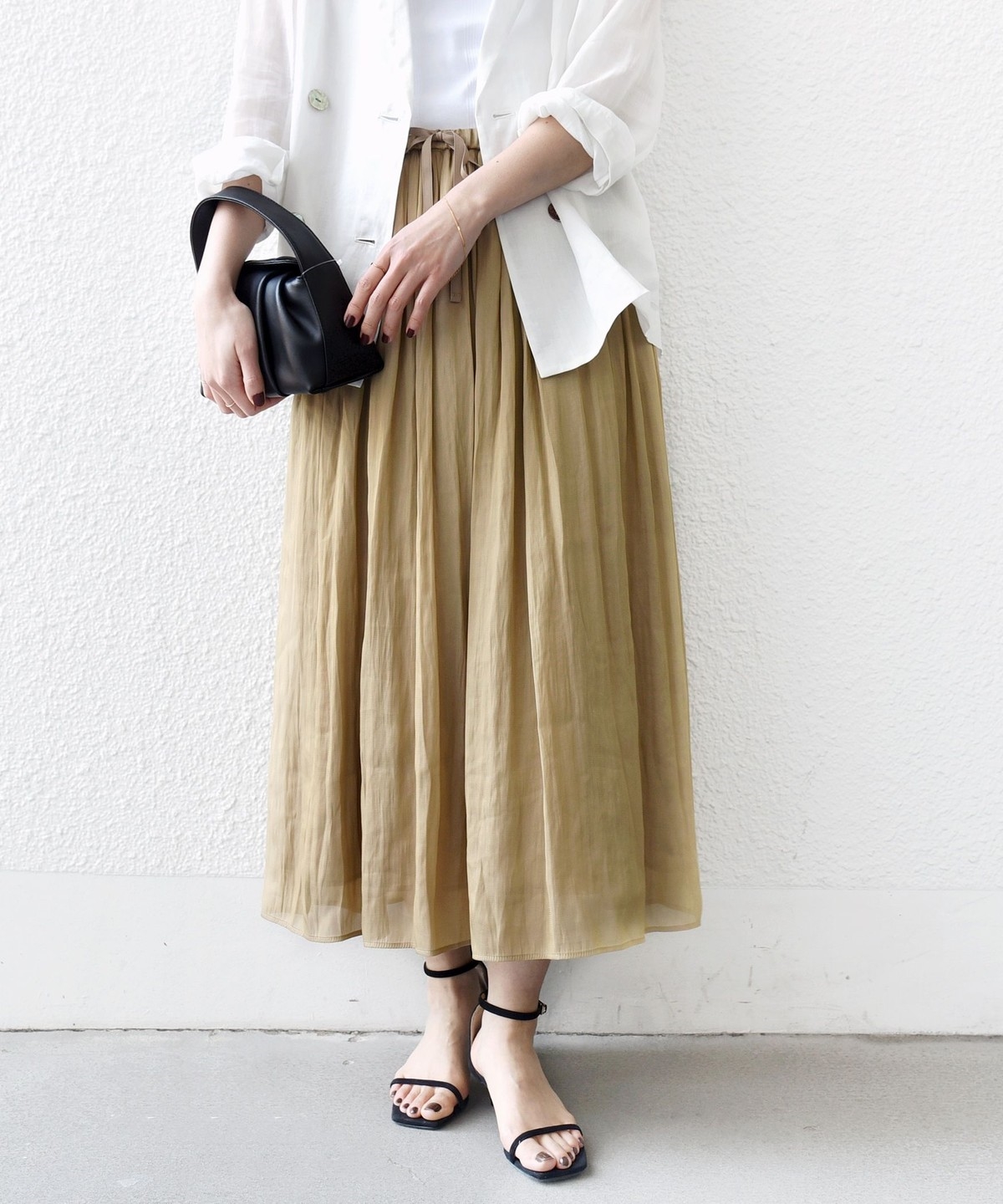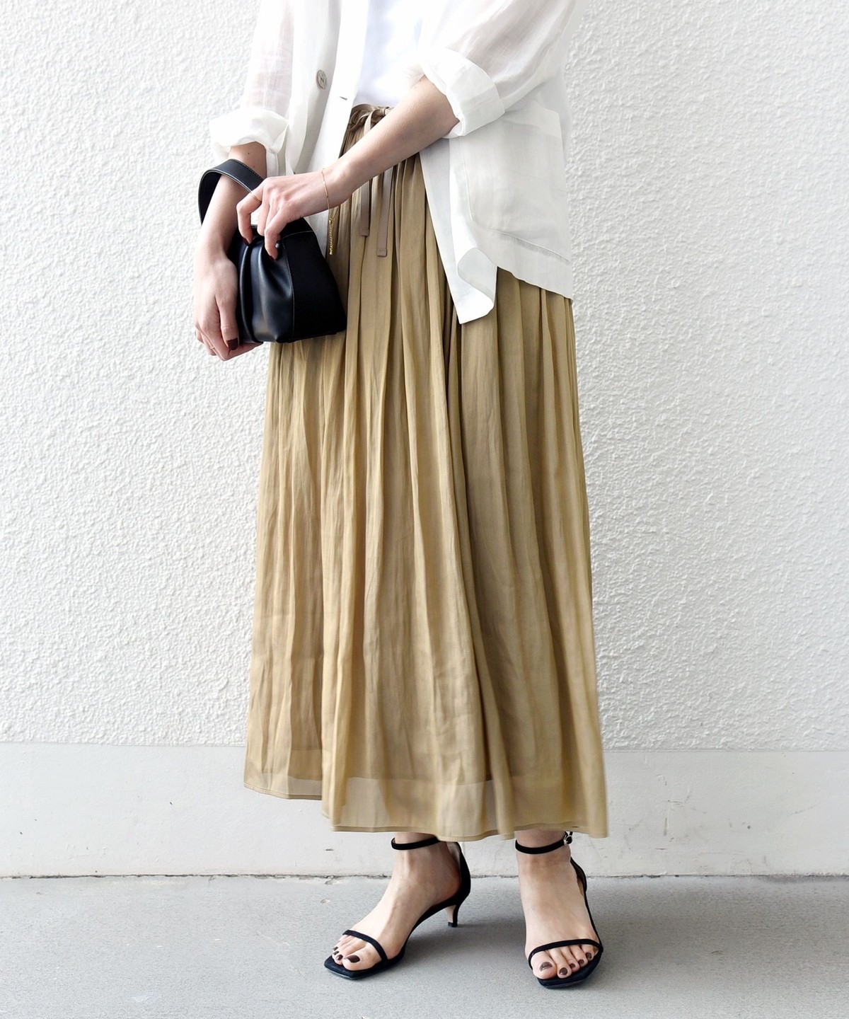 とろみブラウスやジャケットと合わせれば、きれいめなオンスタイルにも対応。