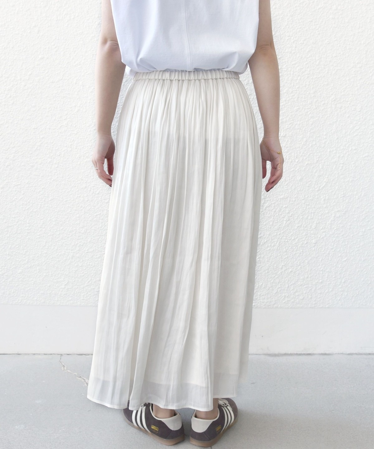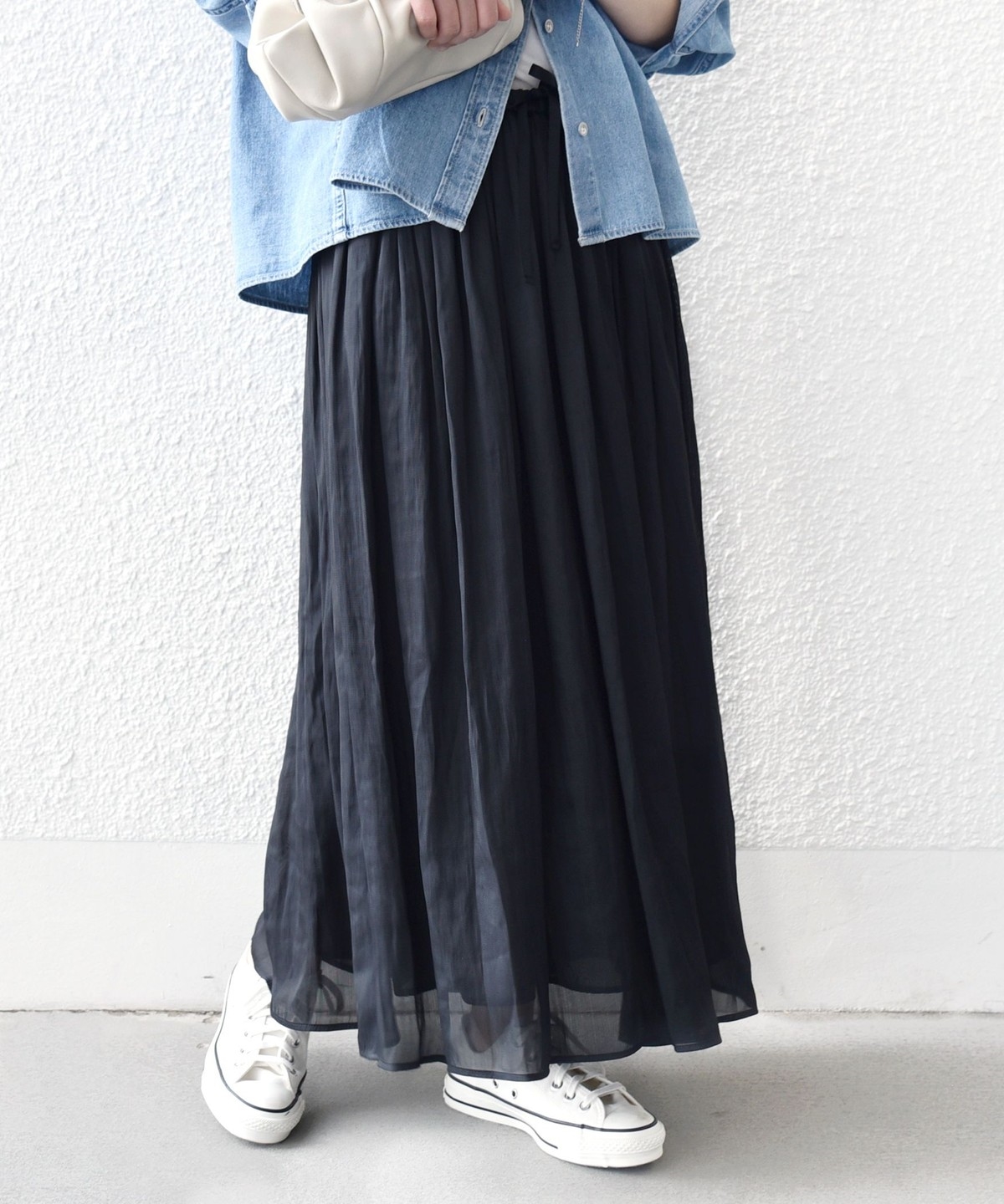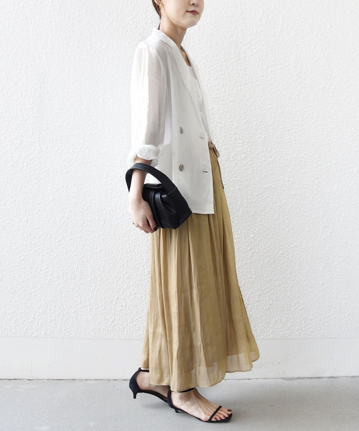 とろみブラウスやジャケットと合わせれば、きれいめなオンスタイルにも対応。
