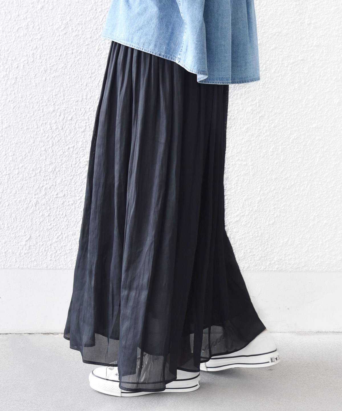 〈手洗い可能〉シアー メッシュ ギャザー スカート