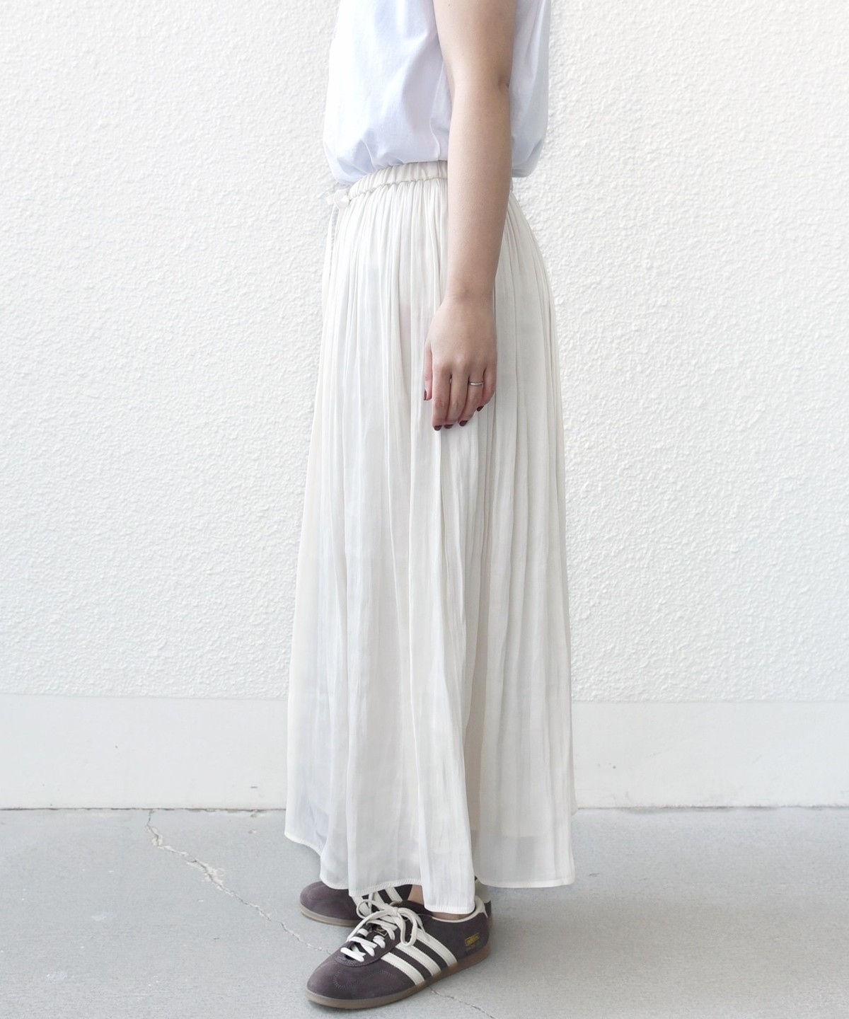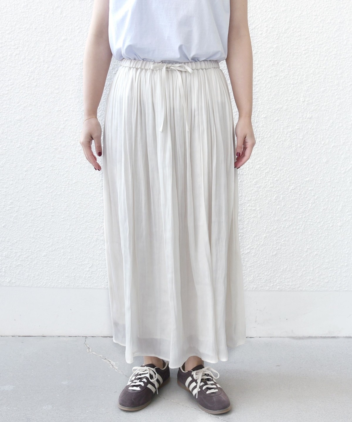 たっぷり入ったギャザーが軽やかで上品見えするスカート