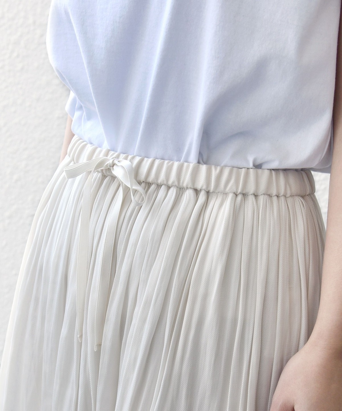 ウエストはゴム仕様にリボンを通したストレスフリーなデザイン。